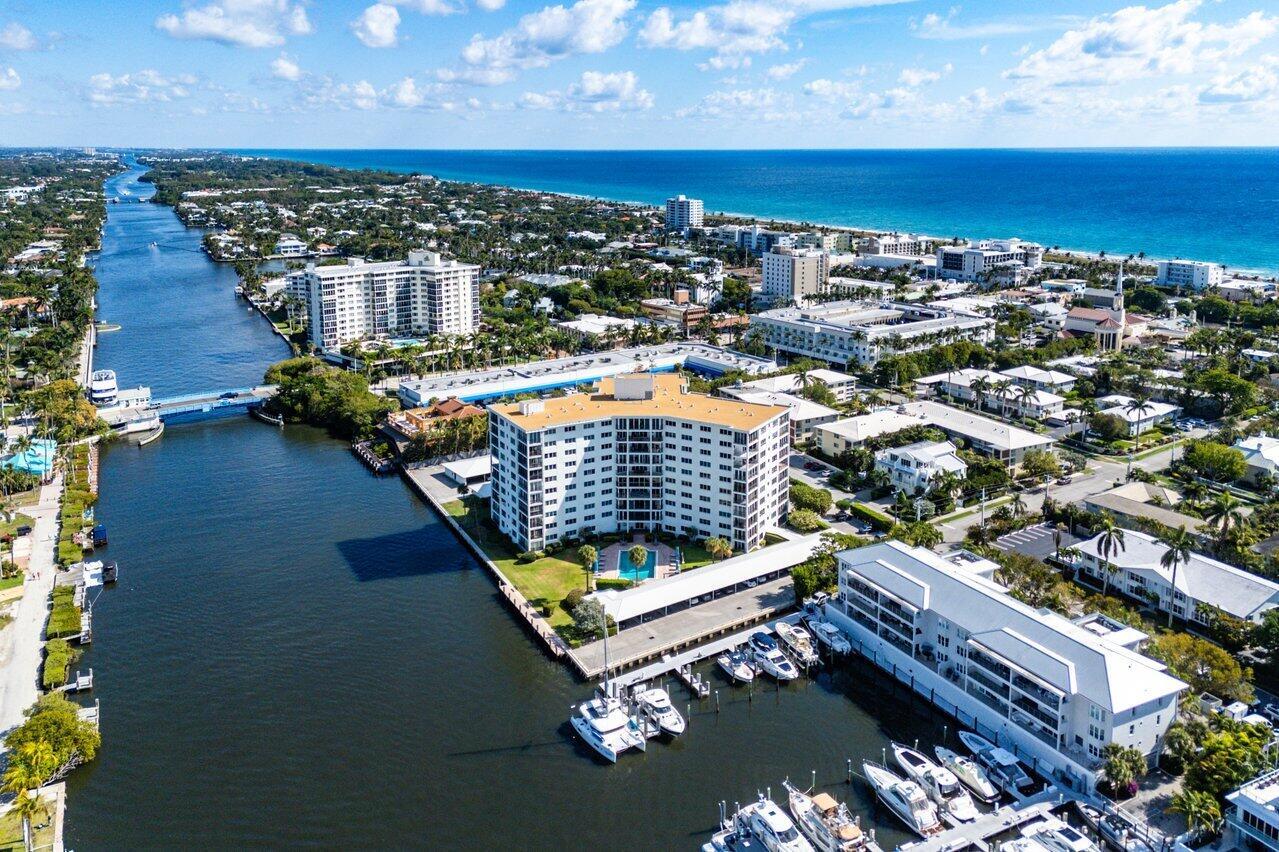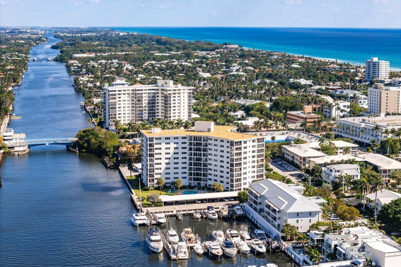 A MUST SEE: Bar Harbour is ideally situated just 1 block from Atlantic Ave and 2 blocks from the shores of the Atlantic Ocean. This exceptional 2-bedroom, 2-bathroom condo is in pristine, MOVE-IN condition, offering breathtaking views of the Intracoastal Waterway and the Atlantic Ave bridge. The unit features a sophisticated, transitional design with an open-concept kitchen, snack bar, and formal dining area, all with captivating water views. Bar Harbour offers an array of amenities, including fitness center, library/reading room, a rentable guest suite, a beautifully renovated social room, and a lobby. The sparkling pool overlooks the Intracoastal Waterway, providing a serene retreat. Additionally, an on-site manager and 24/7 front desk service ensure convenience and peace of mind. MORE
