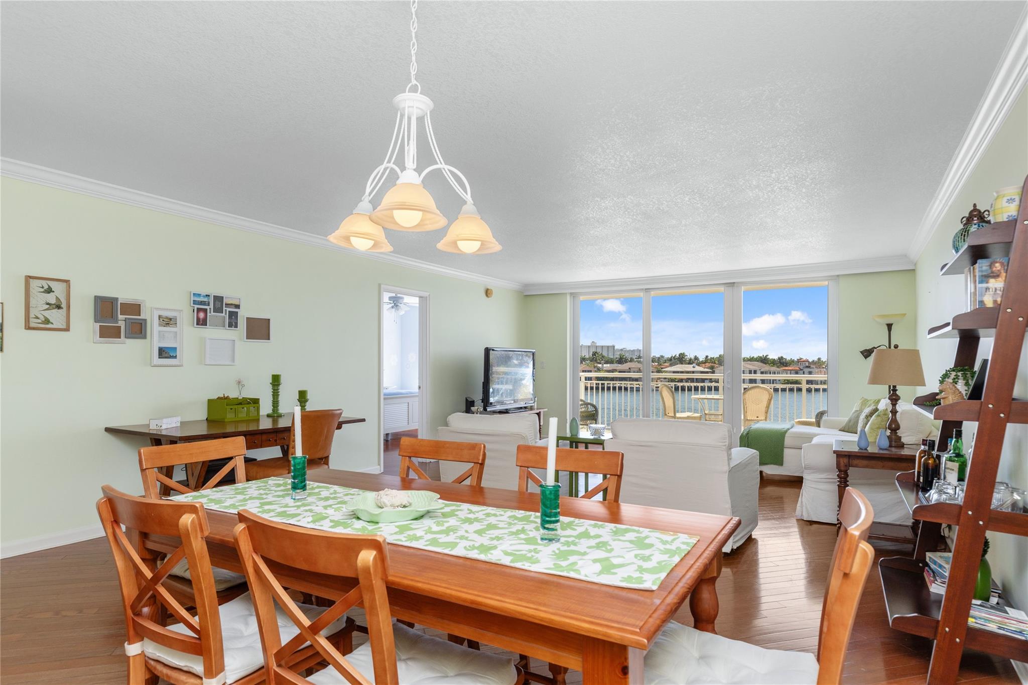 Direct intracoastal condo offering unmatched views and location! Enjoy breathtaking water and skyline views from this exceptional 2-bed, 2 bath condo, just steps from the beach! Watch yachts glide by from your private terrace and enjoy a spacious light-filled interior with wood floors, floor-to-ceiling sliders, an open kitchen with a breakfast bar, and a luxurious primary suite featuring a stunning water view, walk-in large closet, double sinks and a large shower. Washer and dryer in the unit. Bayshore towers offers resort-style living with a heated saline pool, fitness center, clubhouse, saunas, BBQ area, covered parking and dock access. Perfect as a full-time residence, vacation getaway or investment. World-class dinning, shopping and entertainment just minutes away!