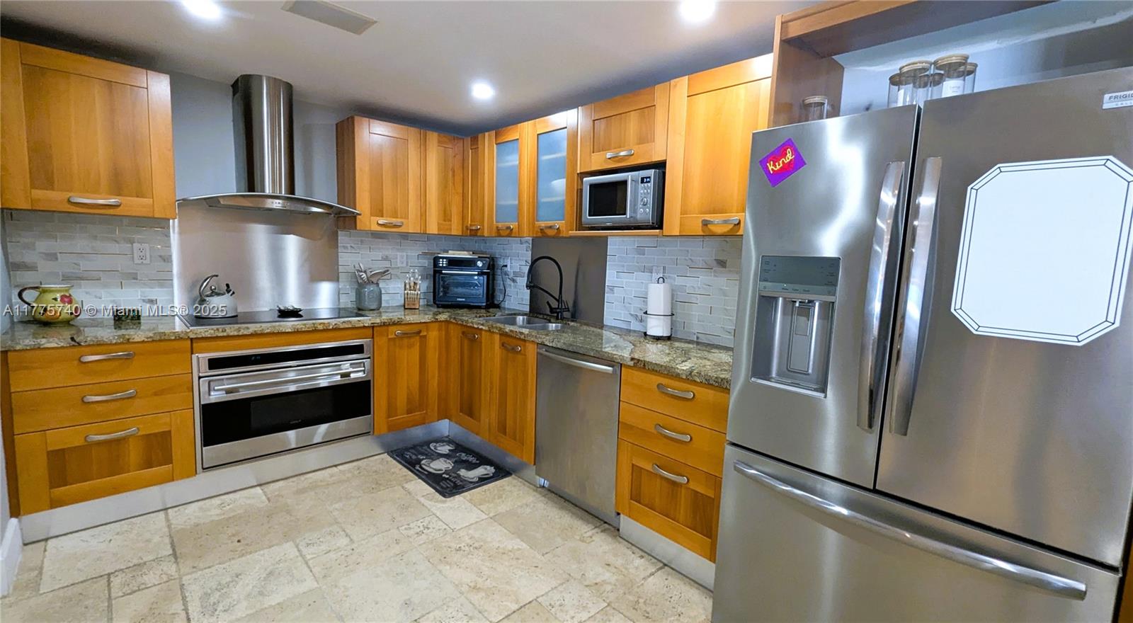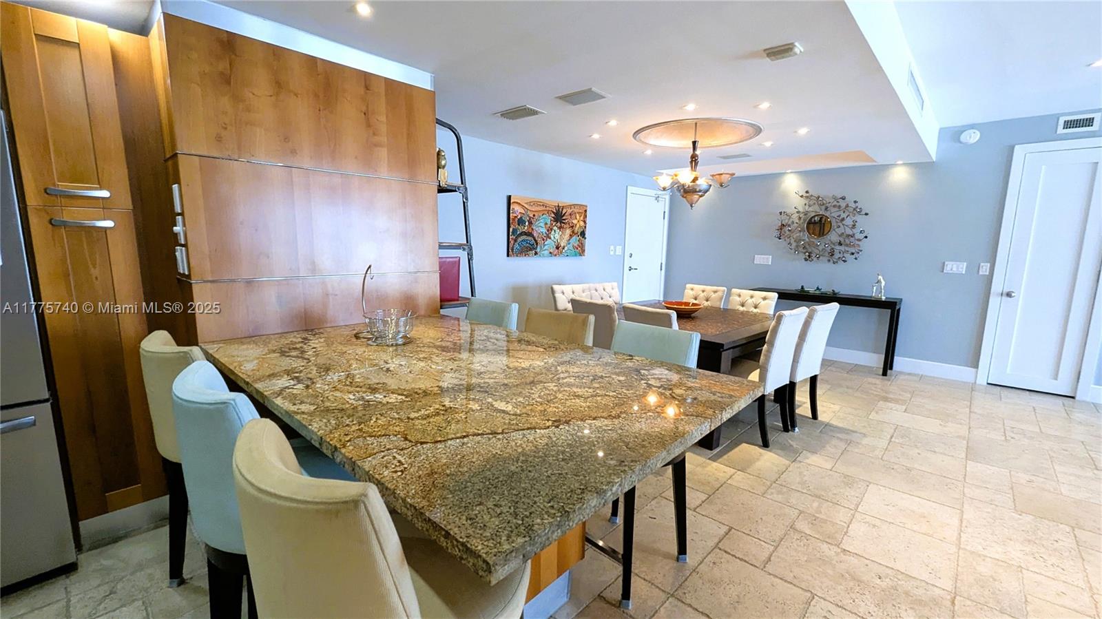 The Real Thing!! A true, rooftop penthouse with an amazing, huge rooftop terrace w/direct access thru sliding impact glass doors from the spacious open living area & all 3 bedrooms! It’s like a backyard in the sky with an amazing direct ocean view!! Fully remodeled with coral stone flooring, recessed lighting, gorgeous chandelier & hi-end light fixtures. Spectacular kitchen with a built-in granite table that seats 6, custom wood cabinetry, granite counters, stainless steel appliances, stone & stainless backsplash, wolf cooktop & oven, & a commercial style vented exhaust. Also featured is a spacious master bedroom suite with a fully marbled & tiled absolutely lavish master bath with large walk-in shower with steam, jacuzzi & two separate vanities and more. Furniture negotiable.