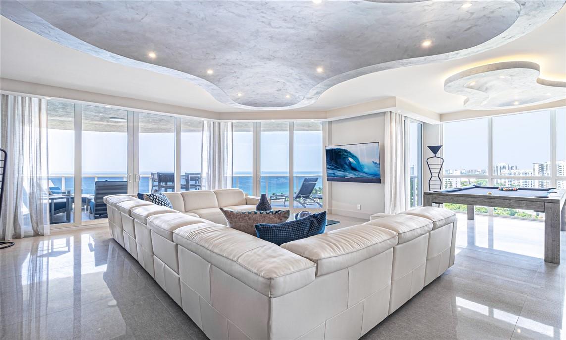 Modern Oceanfront Dream Home. Fully renovated one of kind masterpiece. This unit has 3 separate bedroom suites with large open living space. This Ascot Model was re-architected to take advantage of the wide Southeast coastline views. High Impact Windows, Large Open Kitchen, water filtration system, smart system to control sound, lights, blinds, and thermostats. Frameless solid doors, custom bar area with refrigeration drawers, finished large closets, and much more. L'Hermitage is over 10 acres of beachfront resort-like property with tennis courts, full valet, concierge, spas, massage rooms, steam, sauna, fitness center, restaurant at pool deck, attended beach, dog walk, pool room, child play room, card room, catering hall, much more. Reserve and structural studies complete.