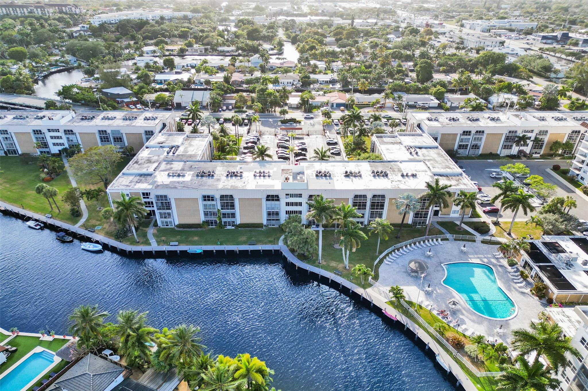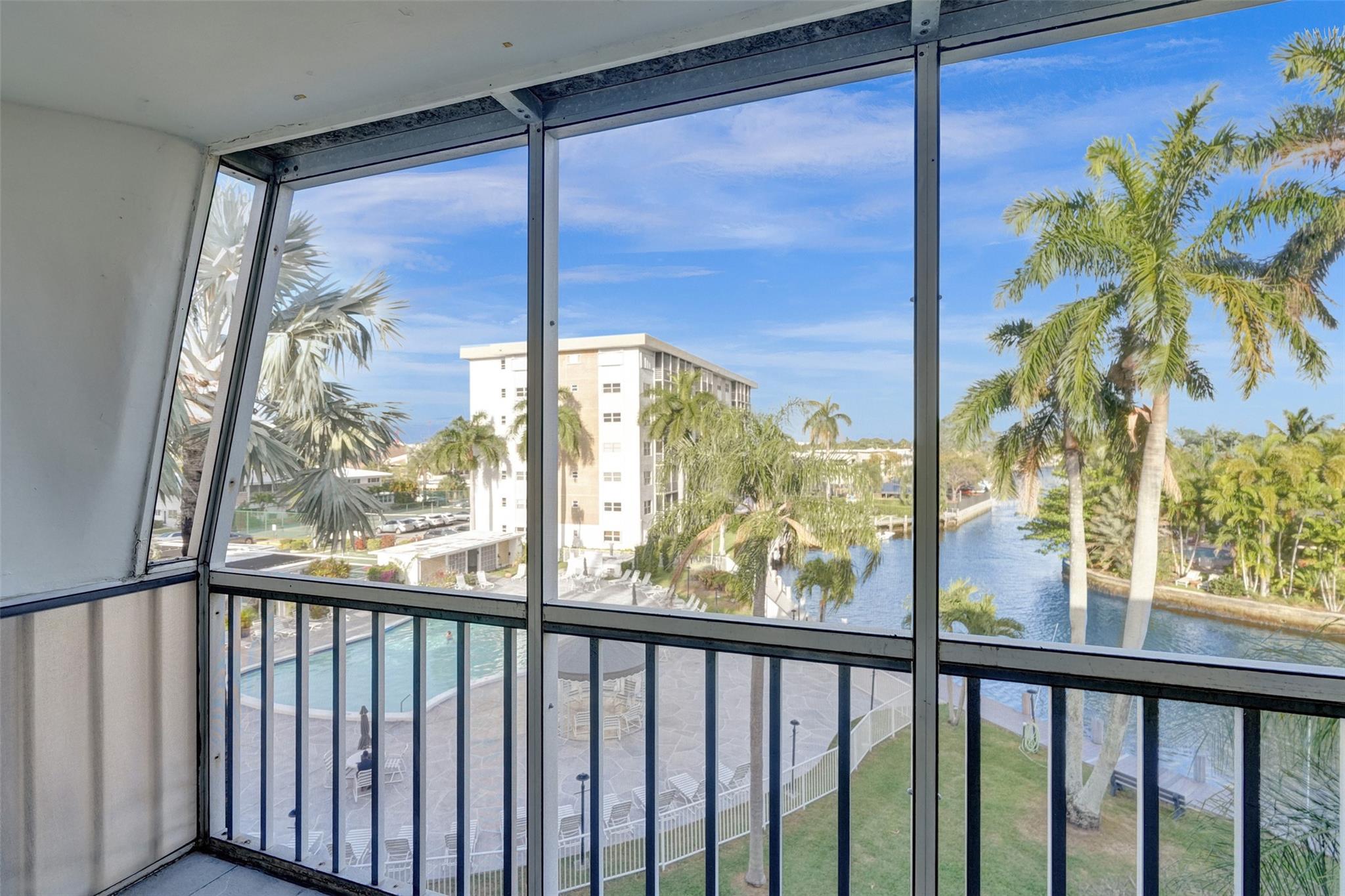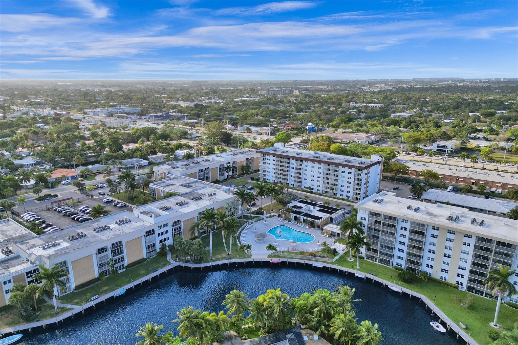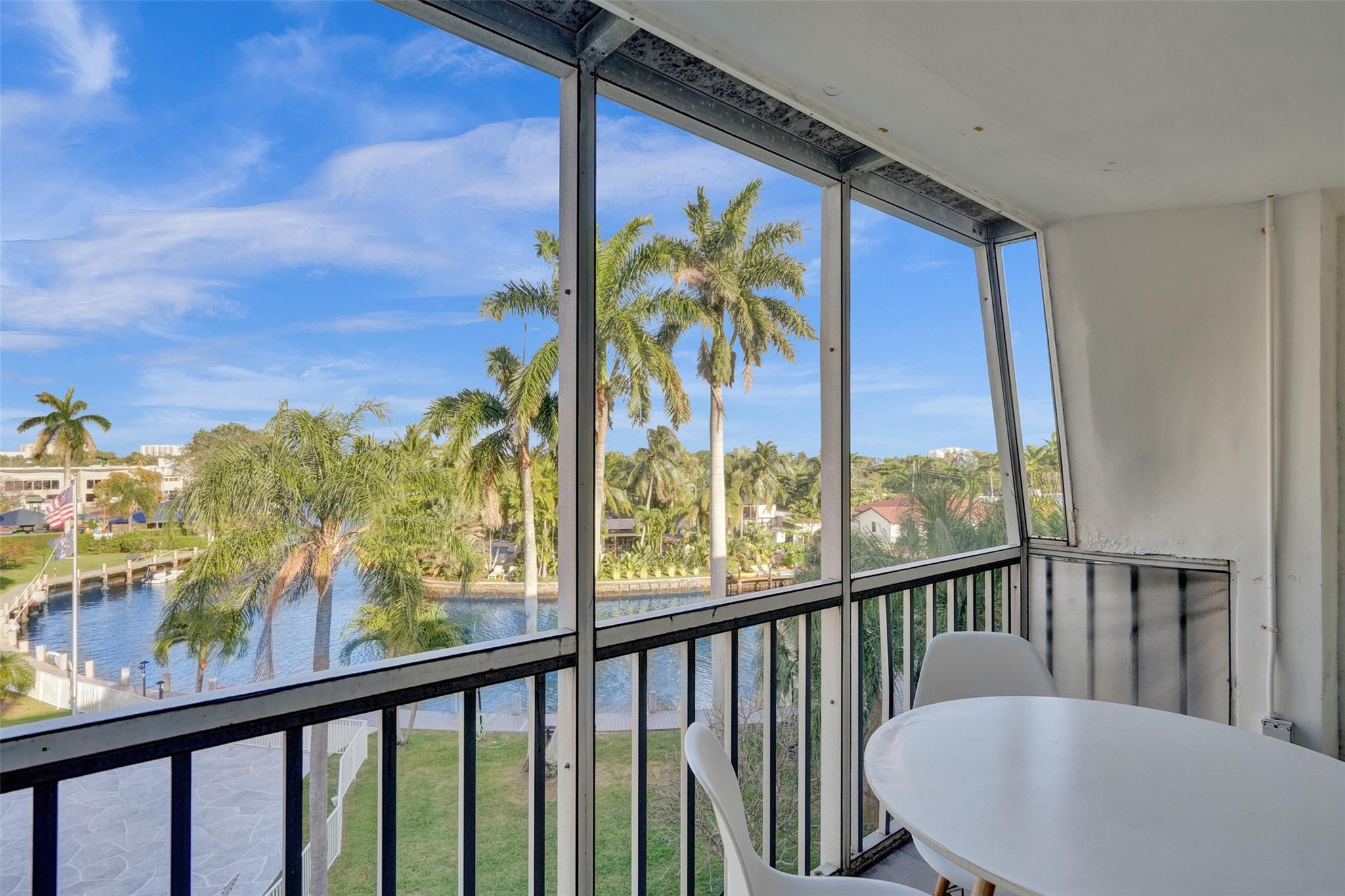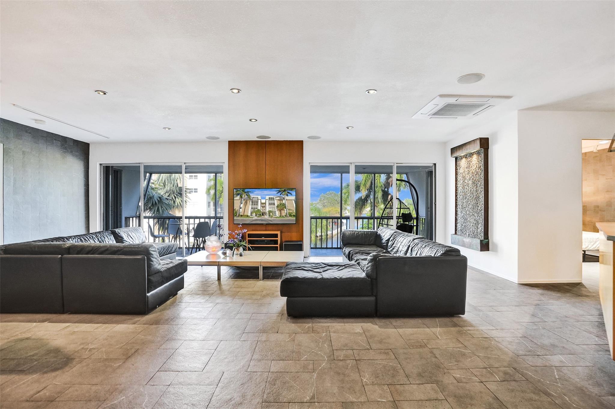 Experience loft-like living in one of the building’s rare 1,200 SF residences. A hidden gem, this unit is unlike any other in the complex. Originally a 3-bedroom, this reimagined 2-bedroom layout expands the great room, capturing panoramic views of the Middle River. The gourmet kitchen, double balcony, and oversized 5x7 “party shower” create a home for comfort & entertaining. Italian porcelain tile floors & accent walls bring a modern aesthetic, complemented by a 7.2 theater-quality surround sound system. Amenities include a Johnny Weissmuller–designed pool, tennis courts & free boat dockage. 2 parking spaces, 3 storage units, pet-friendly. Building passed 50-year recertification and SIRS. Roof resurfaced Nov. 2025. Maintenance $1158/mo & $148/mo for Cable TV & Internet.