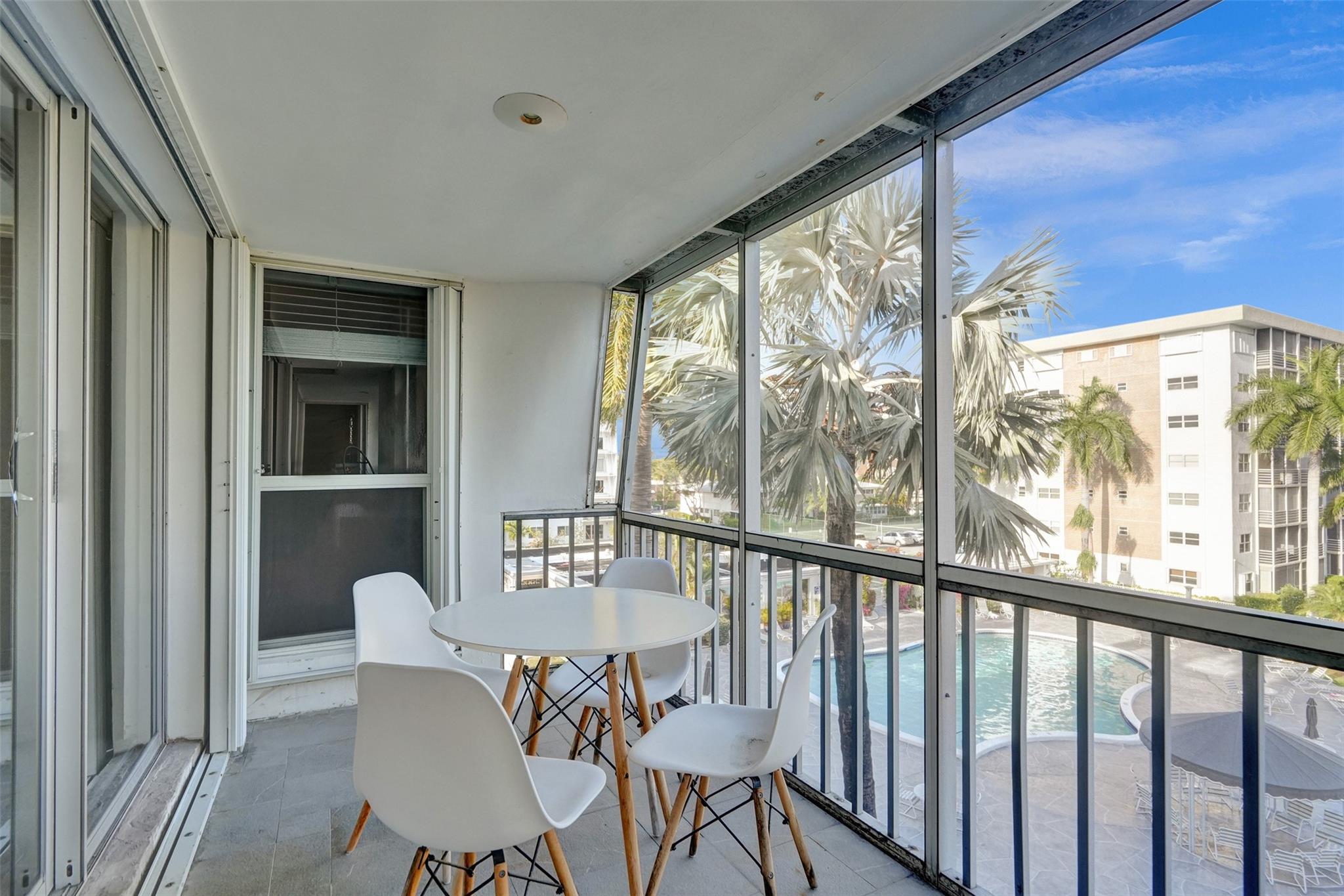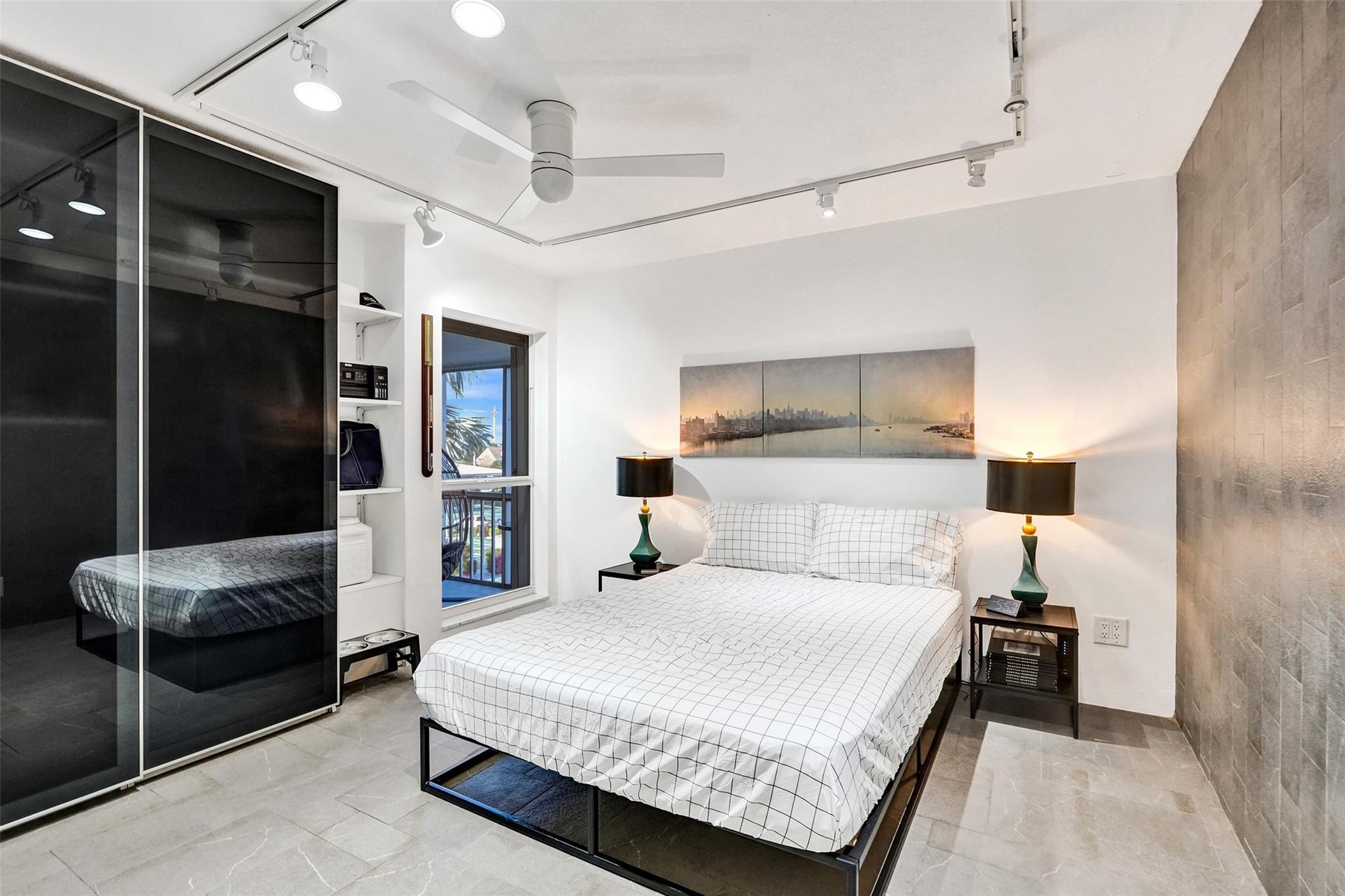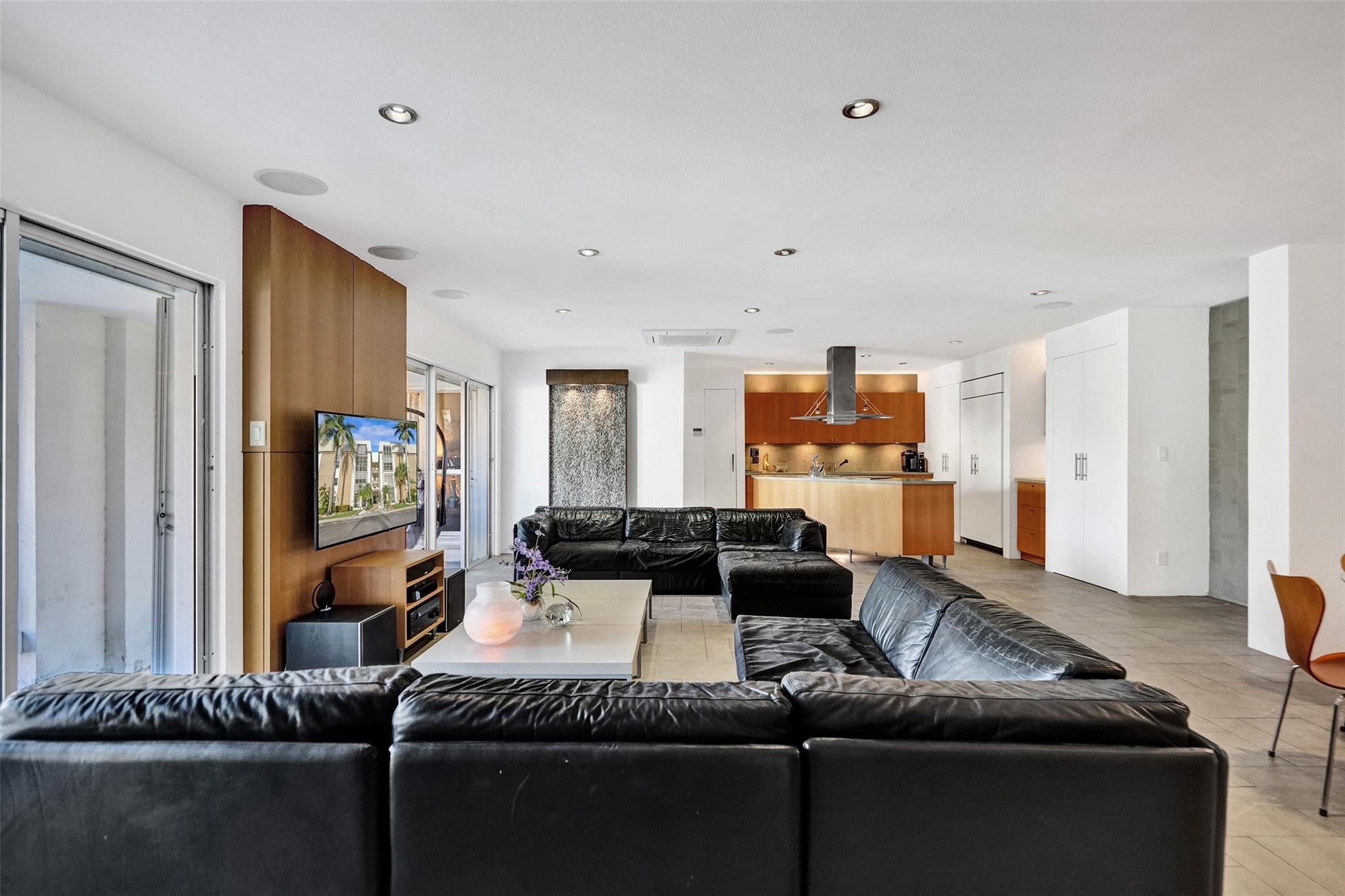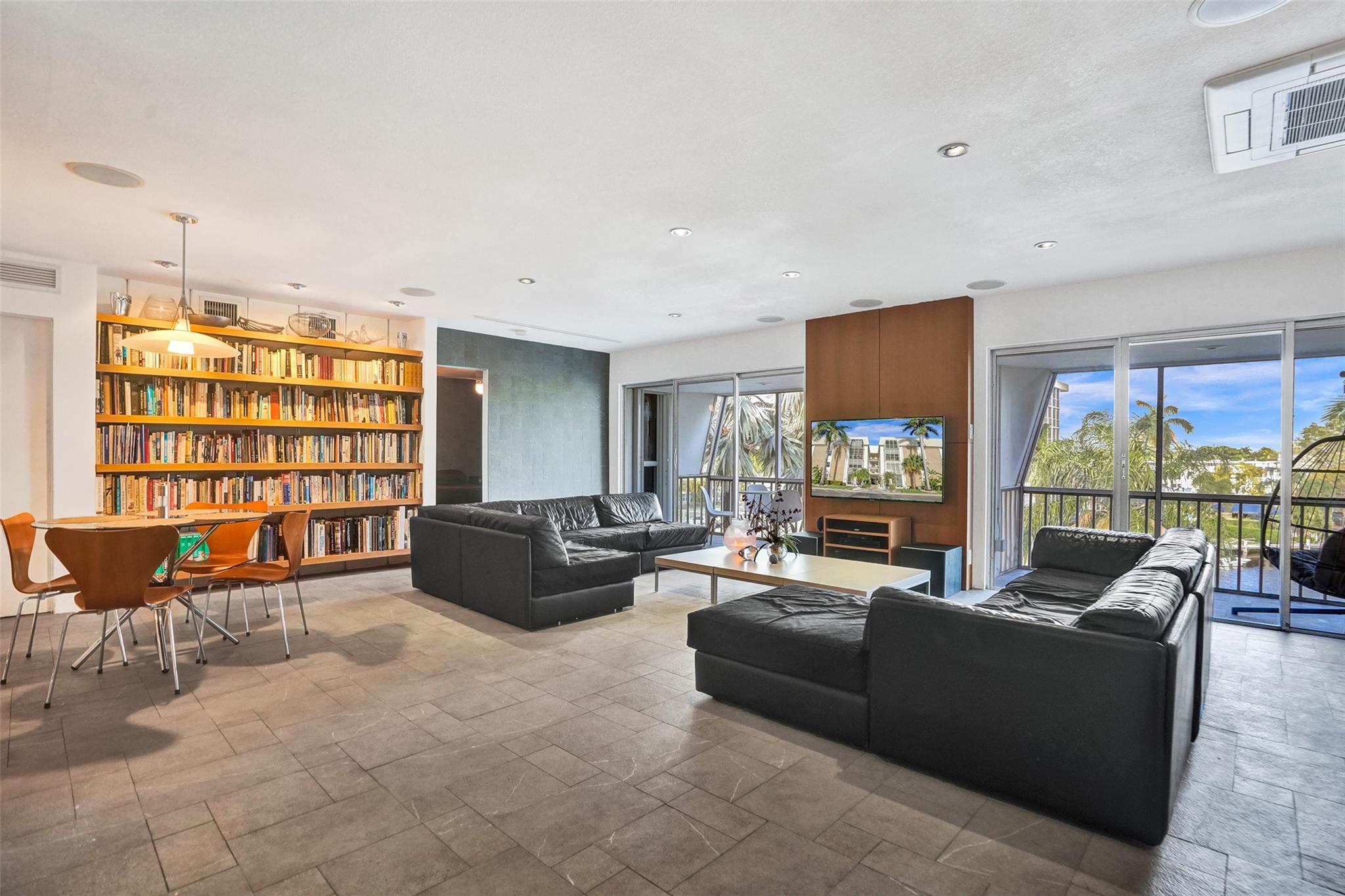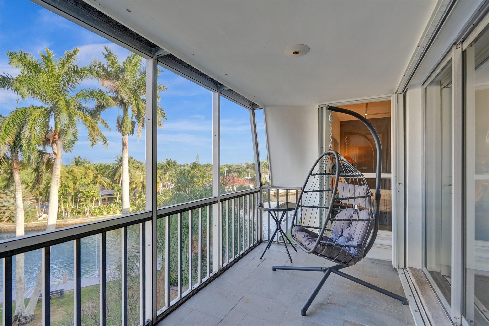 Experience loft-like living in one of the building’s rare 1,200 SF residences. A hidden gem, this unit is unlike any other in the complex. Originally a 3-bedroom, this reimagined 2-bedroom layout expands the great room, capturing panoramic views of the Middle River. The gourmet kitchen, double balcony, and oversized 5x7 “party shower” create a home for comfort & entertaining. Italian porcelain tile floors & accent walls bring a modern aesthetic, complemented by a 7.2 theater-quality surround sound system. Amenities include a Johnny Weissmuller–designed pool, tennis courts & free boat dockage. 2 parking spaces, 3 storage units, pet-friendly. Building passed 50-year recertification and SIRS. Roof resurfaced Nov. 2025. Maintenance $1158/mo & $148/mo for Cable TV & Internet.