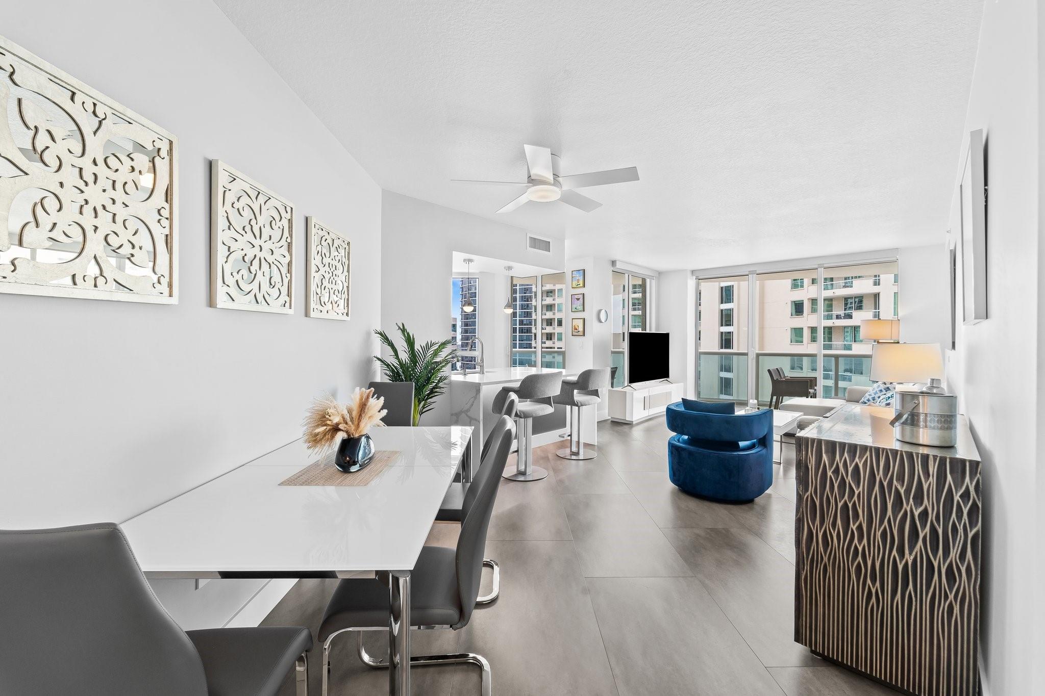PRICE REDUCED TO SELL! IMPECCABLE 3/2 CUSTOM REMODEL OCEAN,RIVER & CITY VIEWS. DESIGNER FINISHES INCLUDE: LARGE EAT IN KITCHEN WATERFALL QUARTZ COUNTERTOPS, CUSTOM CABINETS/STAINLESS APPLIANCES, FULL TILE BACKSPLASH, NEW LUXURY VYNYL RECTANGLE WIDE PLANK FLOORING THROUGHOUT, ELECTRIC WINDOW TREATMENTS, CUSTOM LIGHTING, FULLY RENOVATED BATHROOMS & DOUBLE SINKS, LIGHTED MIRRORS, CUSTOM CLOSET IN PRIMARY BATH EXTRA STORAGE, FRAMELESS SHOWER DOORS, BUILT IN CLOSETS, MULTIPLE GLASS BALCONIES OFF KITCHEN, LIVING & PRIMARY BEDROOM. FULL SERVICE 5* LIFESTYLE INCLUDE CONCIERGE,TROPICAL POOL DECK/HOT TUB, CLUBROOM, BUSINESS CENTER, THEATER MOVIE SCHEDULE, PET FRIENDLY, 2 STORY GYM,24 HR VALET/SECURITY. ALL WALKING DISTANCE TO ALL RESTAURANTS,SHOPS, ART EVENTS,PUBLIX MARKET ON FAMOUS LAS OLAS BLVD