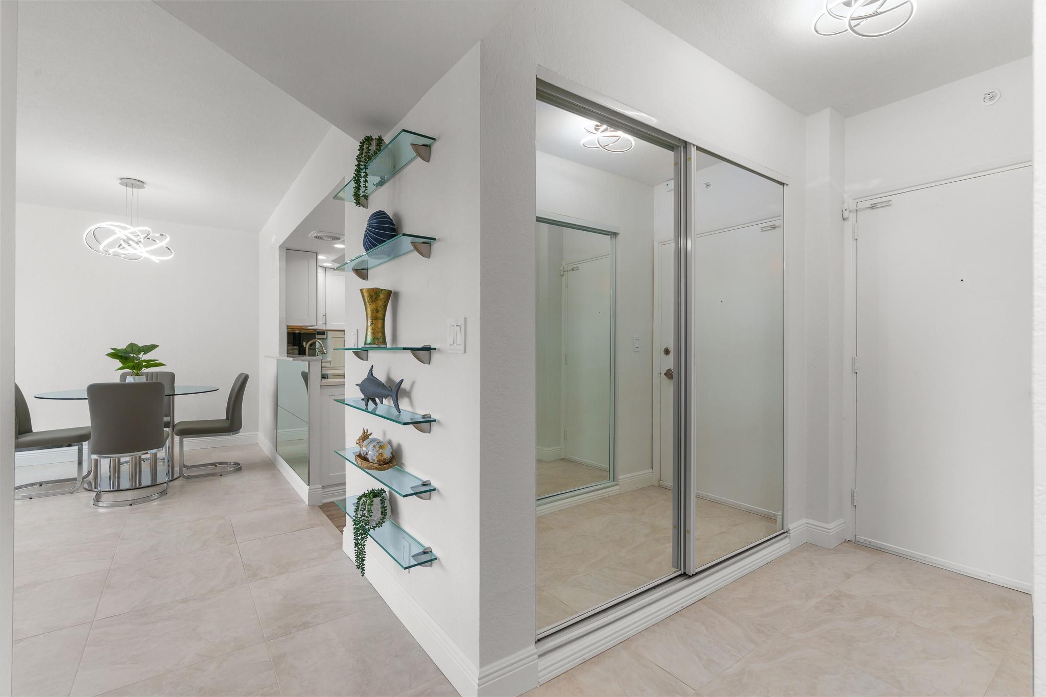 Just inspected with rave turn-key reviews...Experience coastal living for less, in this newly remodeled Ocean & City view co-op on the Intercoastal! Walkable to amazing stores & restaurants. This East facing unit features neutral ceramic tile flooring, knockdown walls|ceilings, brand new Samsung stainless steel appliances, dove tail wood cabinetry w/pullout drawers, LED's & light|fan combo in Kitchen, artistic lighting fixtures, 2023 AC & tankless HWH, custom TV and FP buildout creates a classic ambiance, complemented by chevron wallpaper designed to cohere w| custom drapery. Enjoy electronic and pull-down blinds, custom mirrors, and "sea glass" shelving for your personal decorative flair. The upgraded bathroom boasts Grohe body spray fixtures, new vanity. Ample closet space. Storage unit.