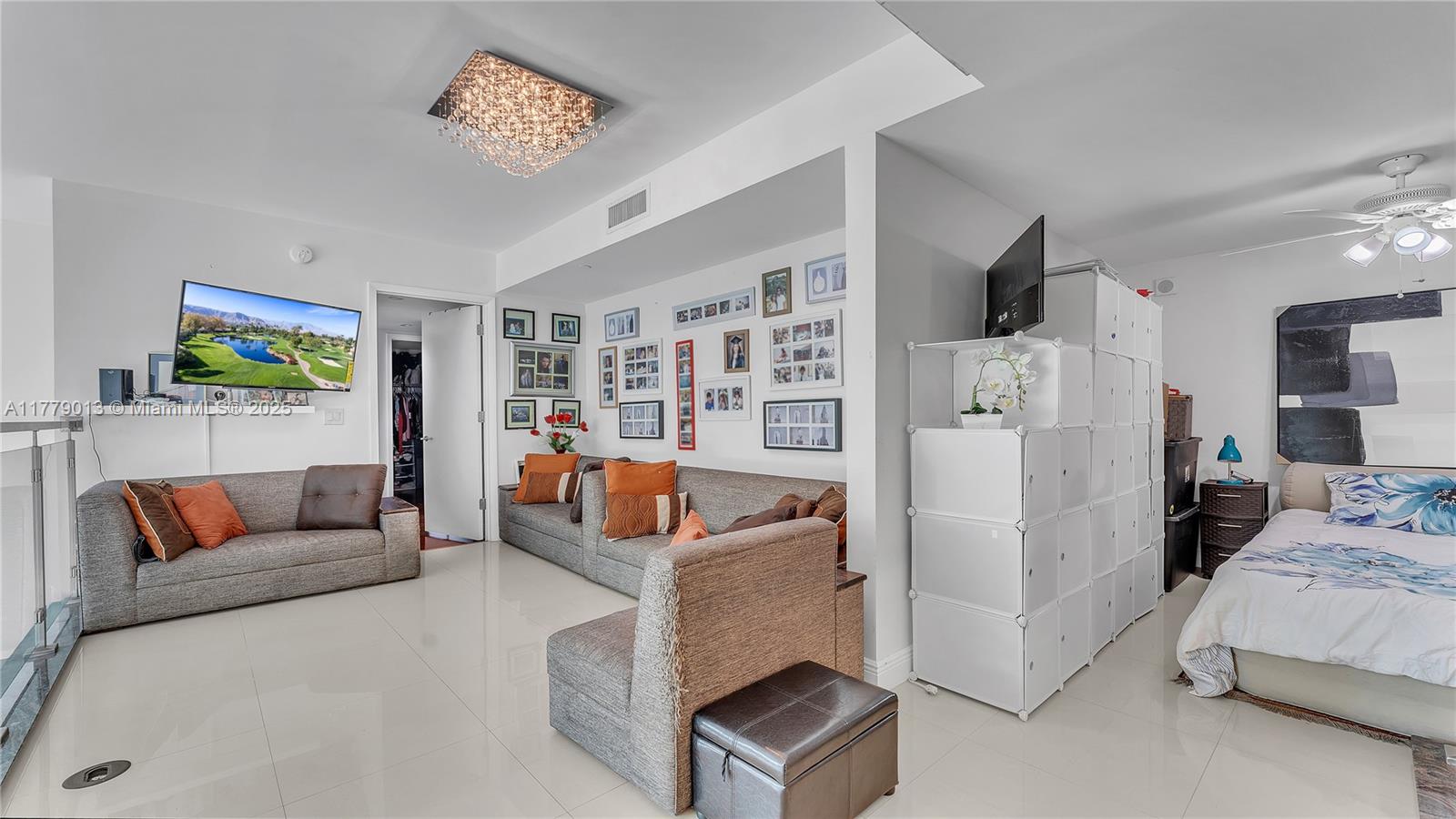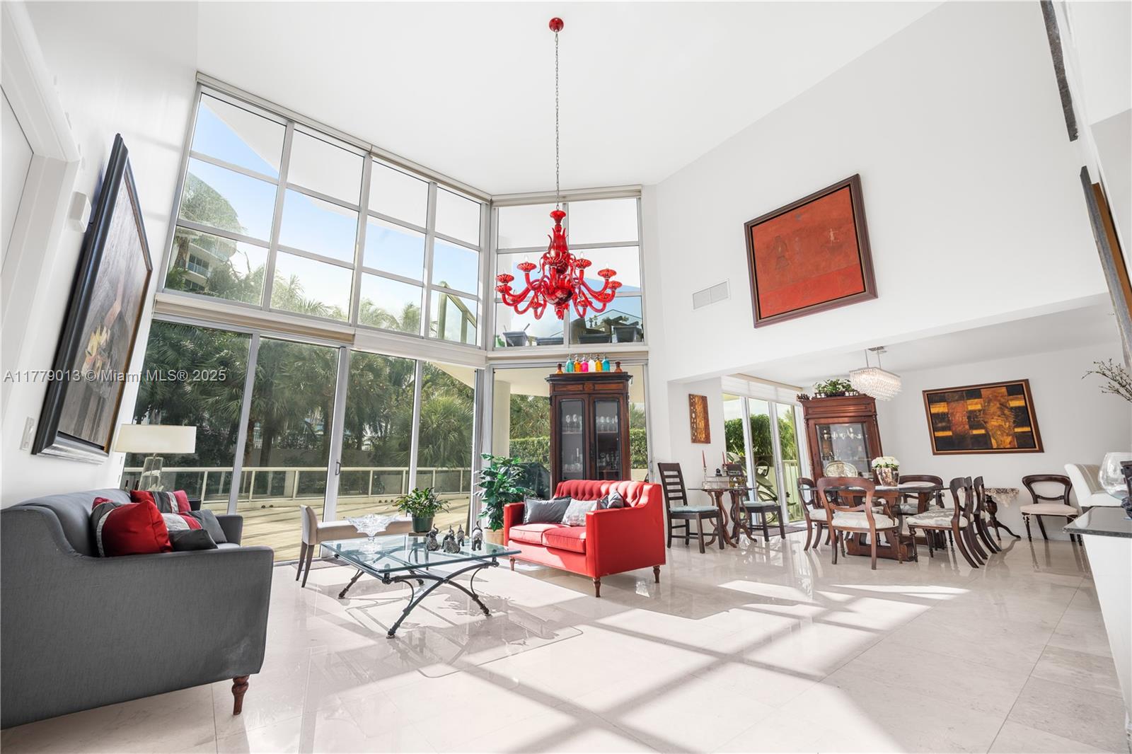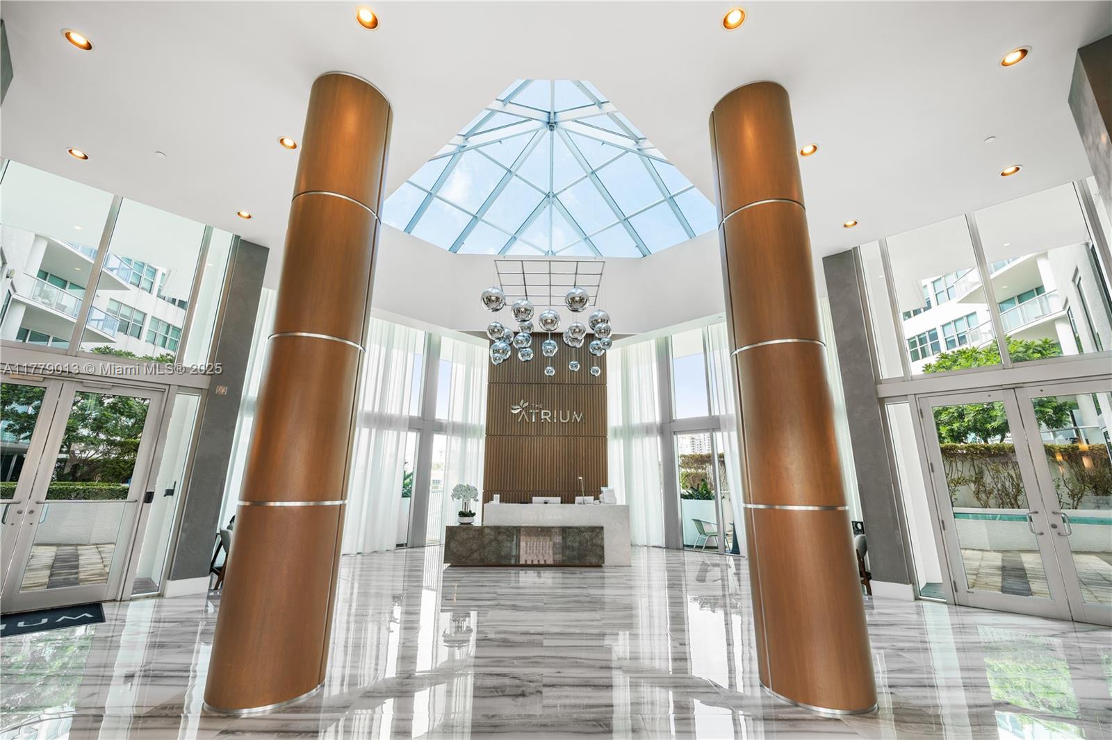 Welcome to The Atrium at Aventura, where luxury meets lifestyle. This is a once-in-a-lifetime opportunity to own a rarely available split-level apartment with over 2,800 sq ft under A/C. This unique two-story residence features soaring 24+ ft ceilings, marble floors, a gourmet kitchen with granite countertops and stainless steel appliances, and a massive 1,500+ sq ft private patio. Enjoy a secondary master suite on the first floor, plus a guest half bath and an oversized laundry room. Upstairs offers a guest suite with a private bathroom, an open den, and a spacious primary bedroom with one walk-in closet and 2 additional closets, a spa-like bath, and a private balcony with canal views. Impact windows throughout. Boat dock available for purchase directly with the association.
