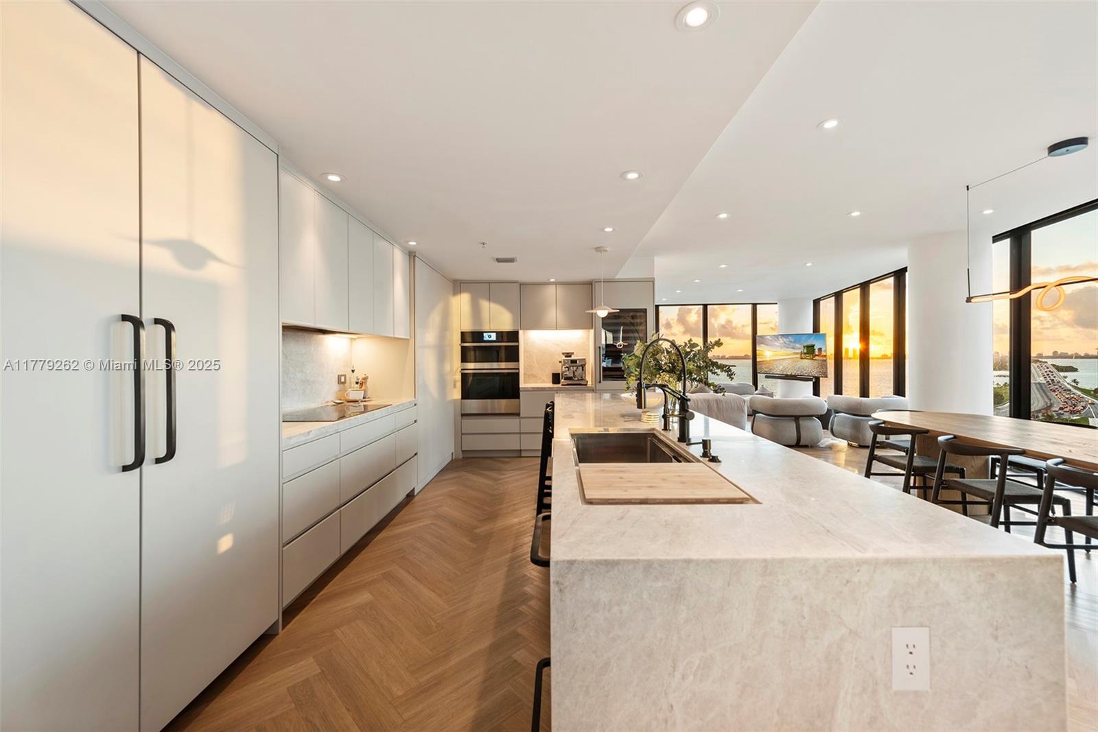 Unobstructed waterfront views, 9 foot windows, and renovated down to the studs, this home stands out amongst the competition. Custom smart features include voice-activated lighting, Nest security, and motorized blackout shades throughout. The chef's kitchen boasts high-end appliances including Sub-Zero, Fisher & Paykel, and a full surface freedom induction stove. The soundproof solid core doors match the reinforced soundproof flooring for privacy within the home. Set away from the rest of the home, the primary suite has its own sense of luxury, from the private bay front views to the large walk-in closet. The building’s amenities enhance the overall living experience; pools, hot tubs, a fitness center, and entertaining spaces. The unit includes storage units, and bike storage.