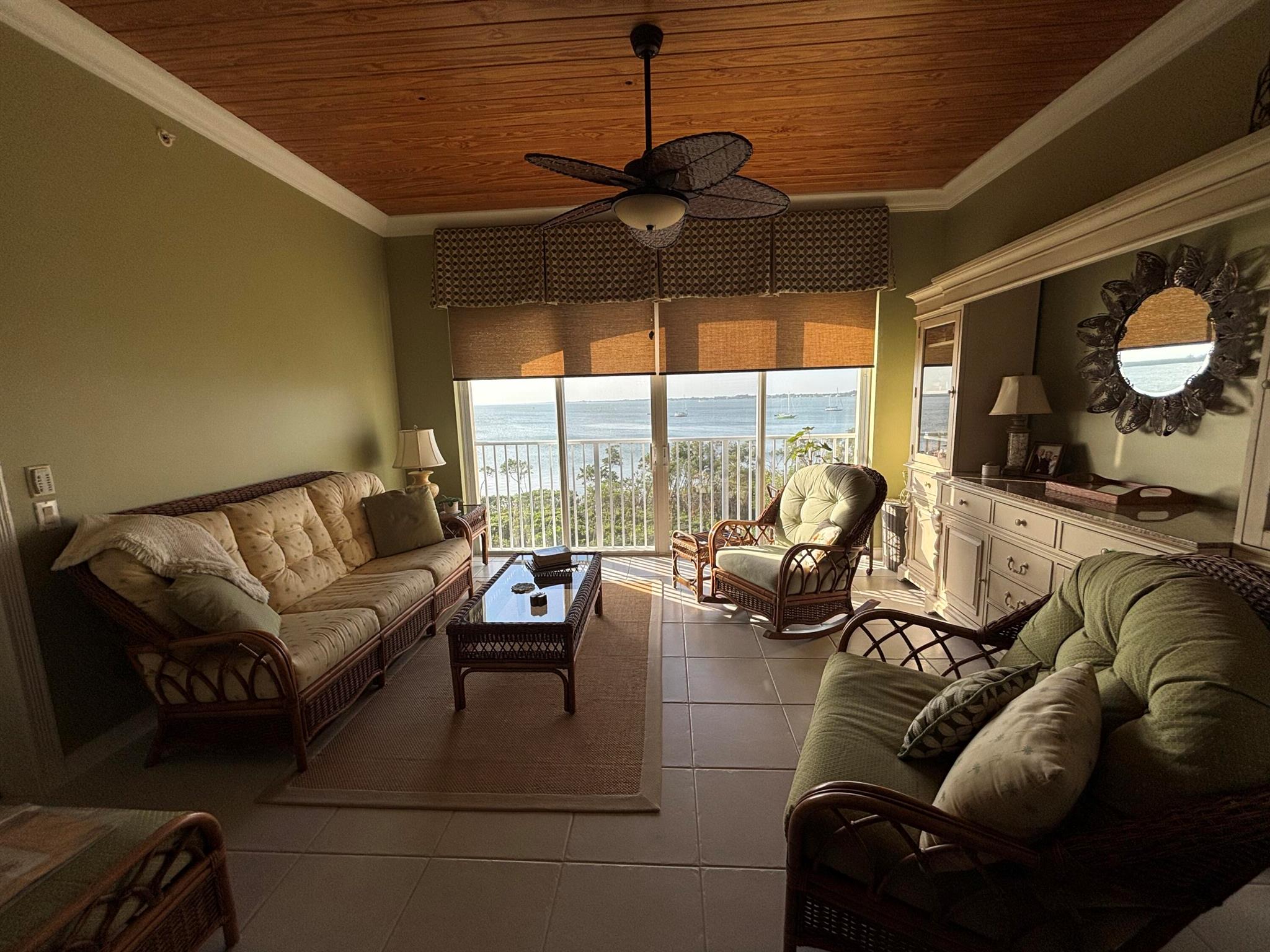 ***************JUST REDUCED**************This beautifully updated Penthouse condo is perfectly located close to all the community amenities: POOL, TENNIS, CLUBHOUSE, BOCCE COURT, EXERCISE/FITNESS ROOM.It is situated on the LONG southern view of the Intracoastal Waterway with a view to almost Jensen Beach.As you enter the foyer, you will see the quality of the upgrades: Double Crown Molding,Chair rail throughout, Soft sky painted ceilings,Tray ceiling in the Dining Room and Tongue and Grove ceiling in the Florida Room. Quality Flooring throughout the LR, Fam Rm, Foyer,Office, Kitchen & Bedrooms. Extra cabinets in Laundry room with granite countertop to fold clothes. Built in Cabinets & desks in Den/Office.It's a must see!!!*****Click on Upgrades under the Documents Tab******