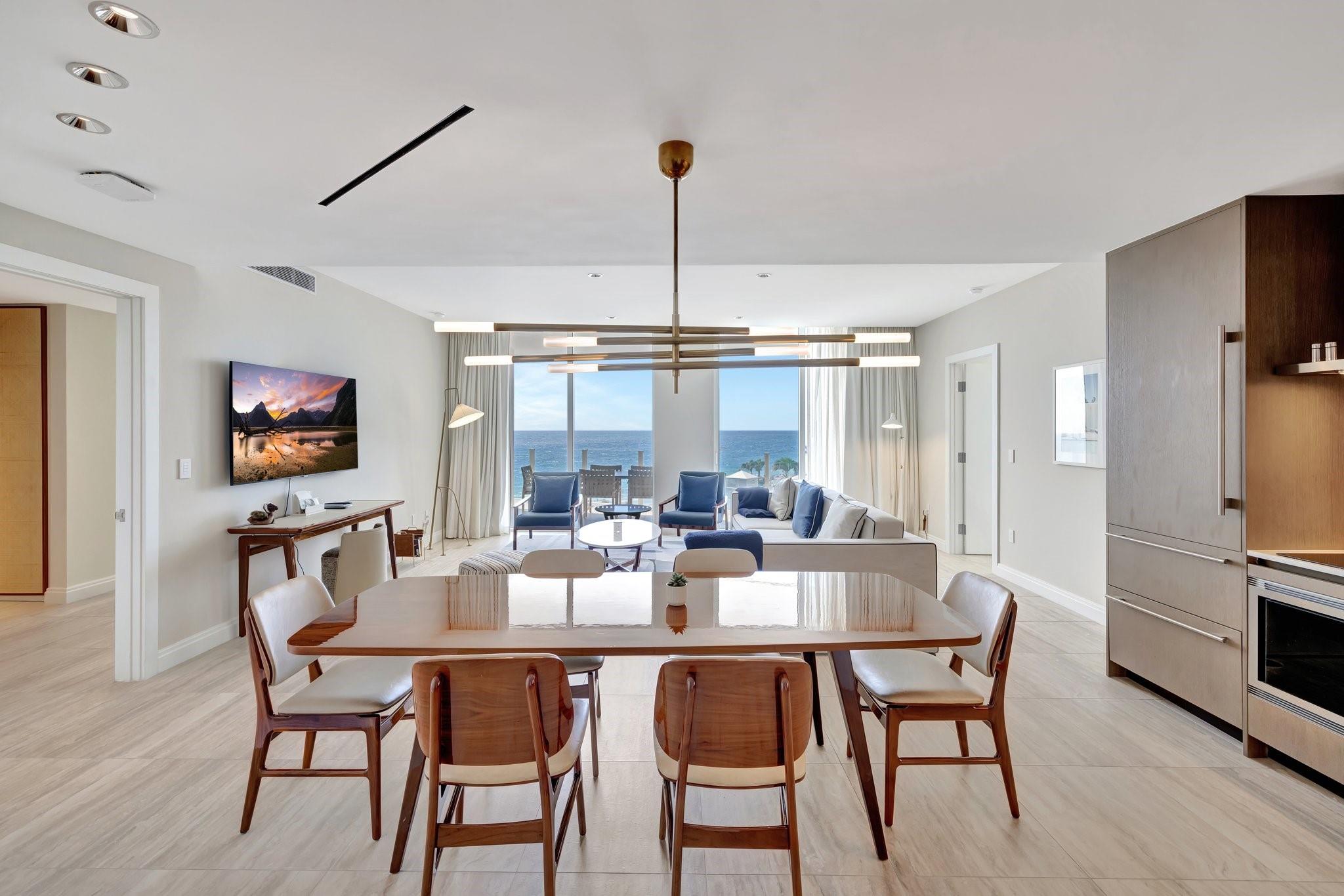 DIRECT OCEANFRONT 3 BEDROOM PLUS DEN FURNISHED and Designed by Tara Bernard of London. South East exposure located over the serenity pool for relaxation. 24 hour in-room dining available, housekeeping available and 3 restaurants on-site for your favorite culinary experience. In addition to the exemplary lifestyle offered within your residence the community offers several dining options. You can also enjoy pool side dining and drinks at either of our two private heated pools as well as private cabana butler service. This Five Star premier building also offers a Four Seasons full service spa and state of the art fitness facility with fitness concierge.