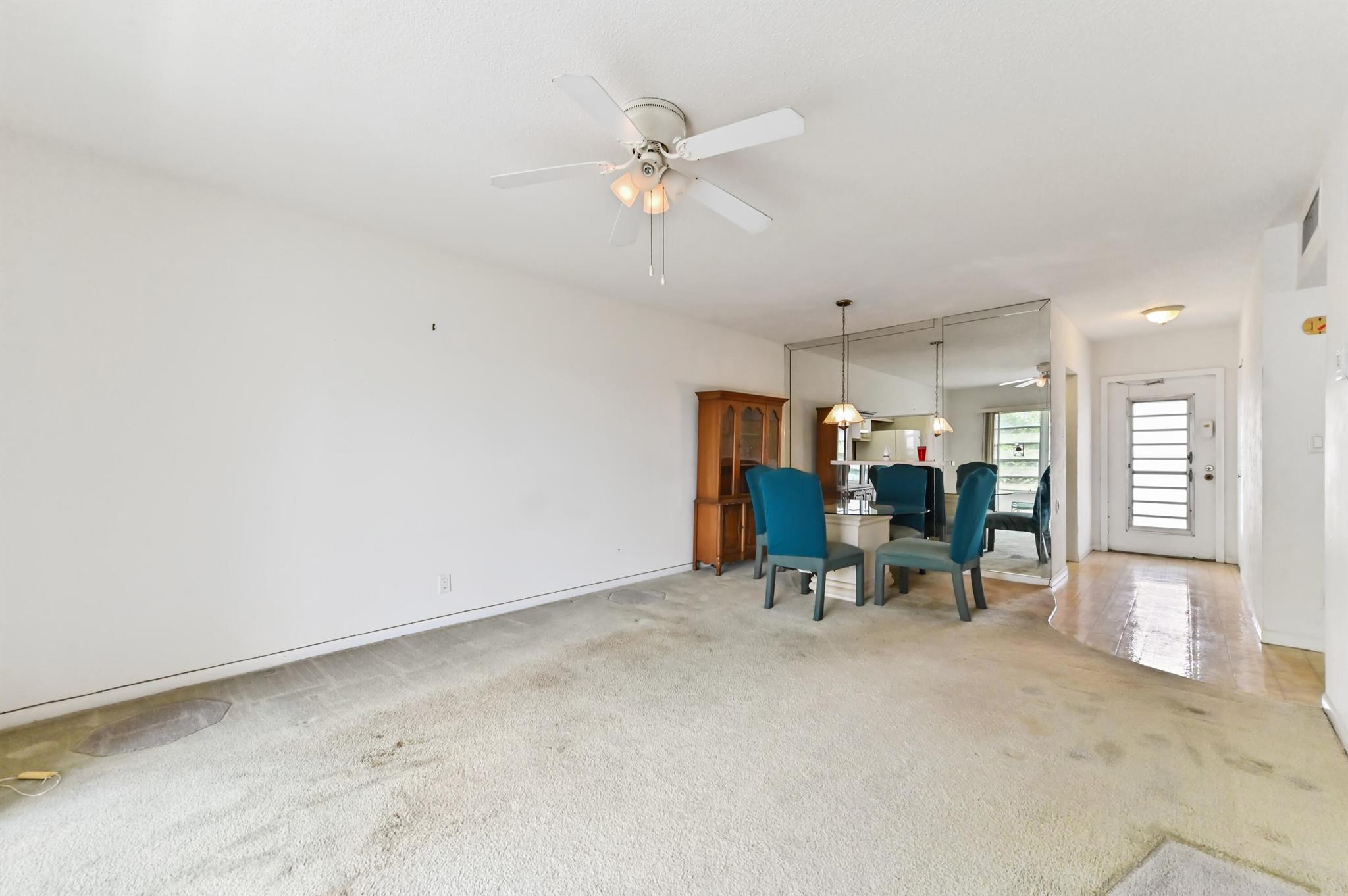 Welcome to this inviting 2-bedroom, 2-bathroom upper-level condo located in the desirable 55+ community of Lauderhill East. This cozy unit offers a functional galley-style kitchen, perfect for preparing your favorite meals, and a combined living and dining area that provides a cozy space for everyday living or entertaining. Plush carpeting flows throughout the living spaces, creating a soft and comfortable atmosphere.