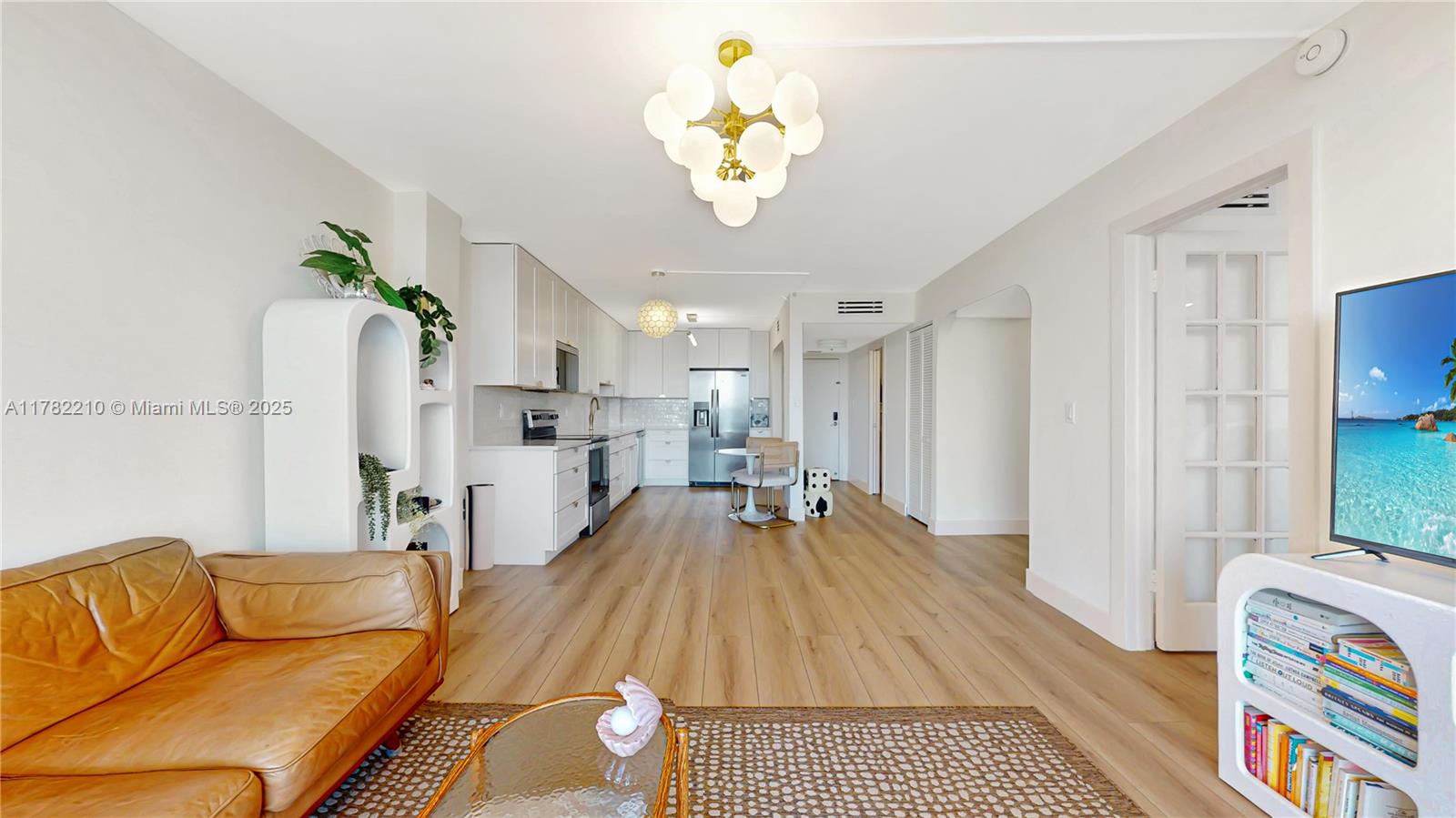 Motivated Seller! Perfect for First-Time Home Buyers: This fully renovated penthouse in the well-managed Stanton House Condo offers breathtaking bay & skyline views. Enjoy low down payment options thanks to fully funded reserves and completed 50-year recertification. This delightful unit features high-end finishes, a new kitchen, updated baths, luxury vinyl floors, new AC, a versatile office/den, & a half bath. Revel in stunning sunset views from the large balcony in a walkable neighborhood of quiet Normandy Isle, steps from the beach, parks, cafes, and the free North Beach Trolley. Amenities include a pool, gym, on-floor laundry, covered assigned parking, & bike storage; the 50-year recertification is fully paid. Embrace a peaceful and convenient beach lifestyle in this sky-high home.