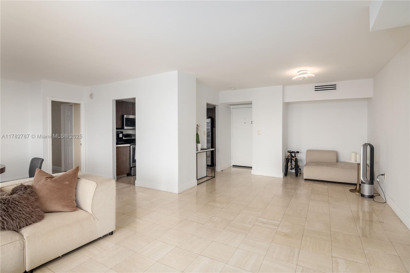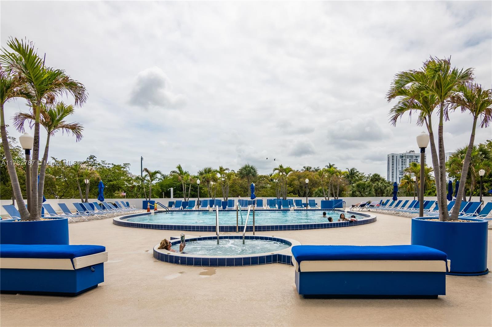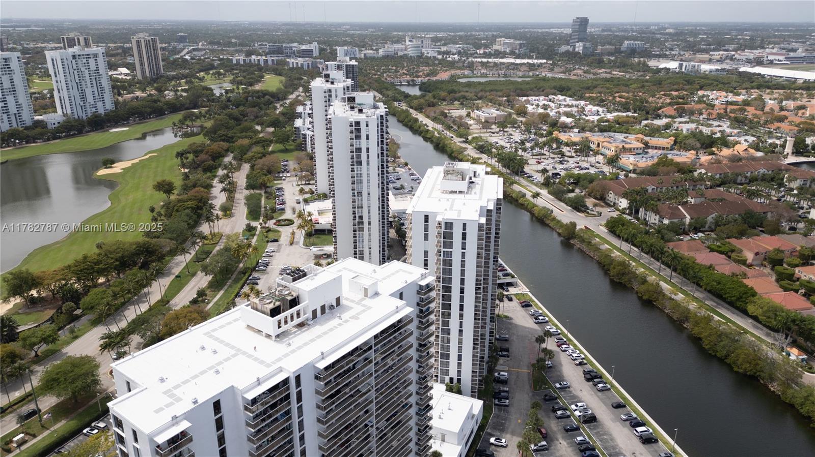 Soaring from the 19th floor, this 3-bed, 3-bath condo offers stunning golf and city views in a bright, open layout. With 1,465 sqft of tile-floored living space, the home features a well-equipped kitchen with an electric range, microwave, refrigerator, washer, and dryer in the unit. Enjoy morning coffee or sunset wine on the spacious open balcony. Central cooling and ceiling fans ensure year-round comfort, while a doorman provides added security. The waterfront building offers assigned and guest parking, blending convenience with elevated living. This high-rise retreat is perfect for those seeking comfort, style, and serene views in every direction.