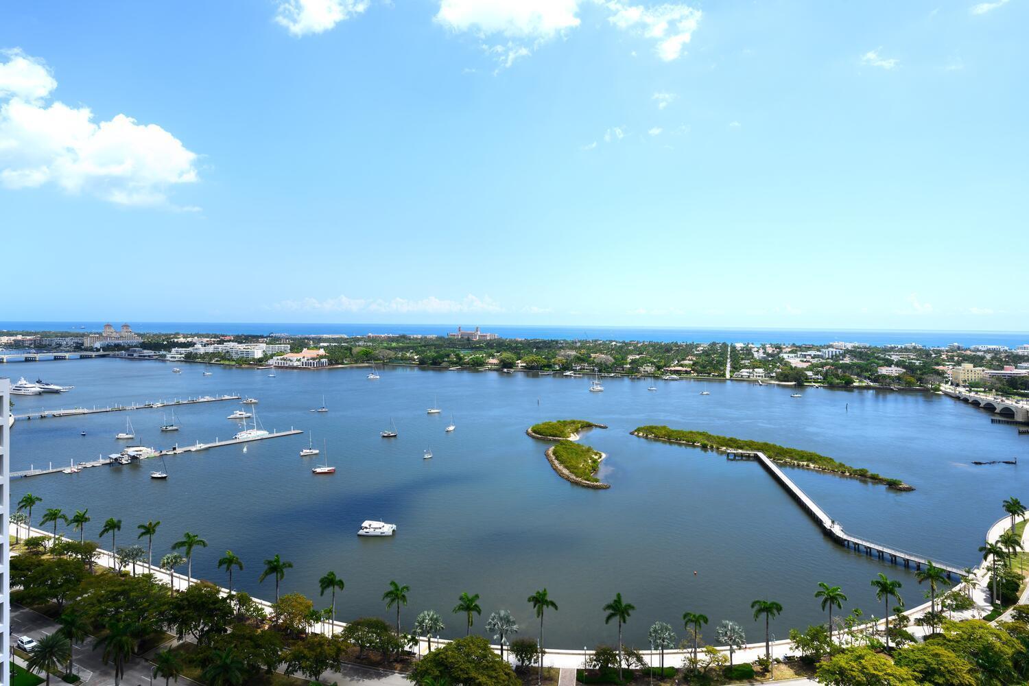 Exceptional opportunity to invest in the Plaza of the Palm Beaches. 2 beds/2 baths, over 1,900 sq.ft. under air. Stunning views of the ocean, Island of Palm Beach and Intracoastal Waterway. East and West exposures. Plenty of balcony space for outdoor dining. The unit also comes with a 200 sq.ft. cabana. Full service, luxury building with 24-hour security, valet parking, concierge, two swimming pools, fitness room, tennis and pickle ball court and conference room. Pet friendly. Easy distance to all that the area has to offer: shops, restaurants, CityPlace, Kravis Center and Norton Museum of Art, Ocean/Beaches and Palm Beach nightlife. Easy to show.