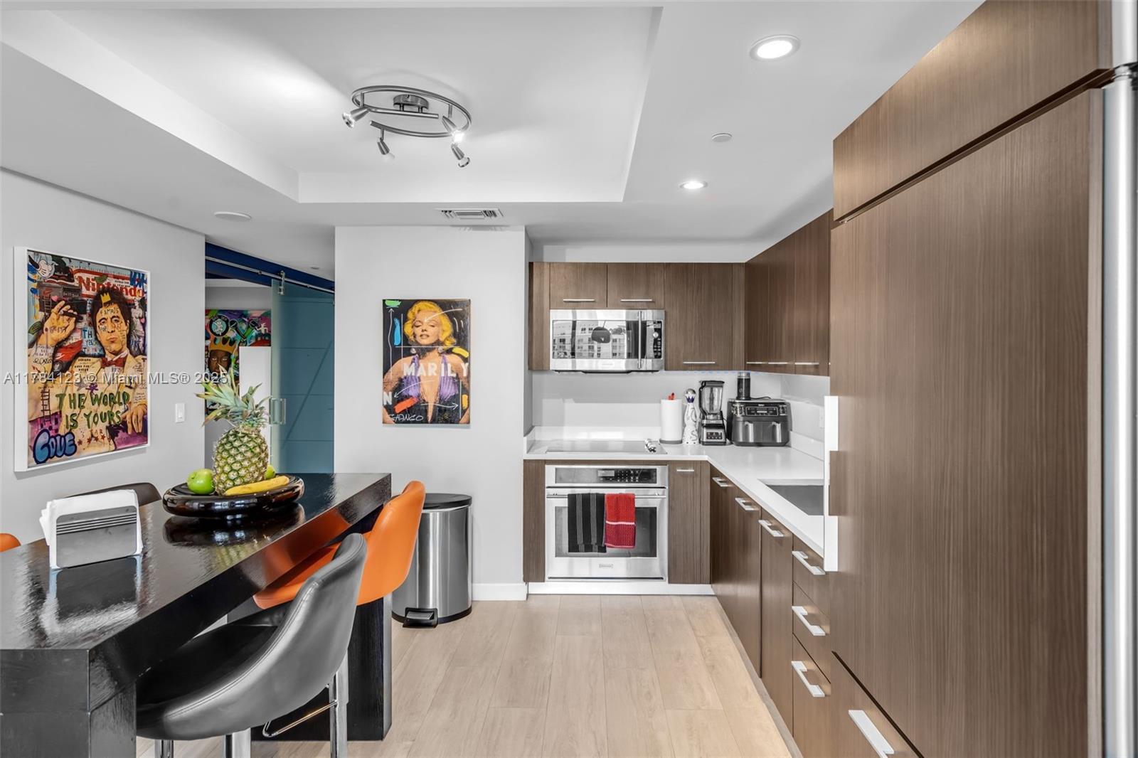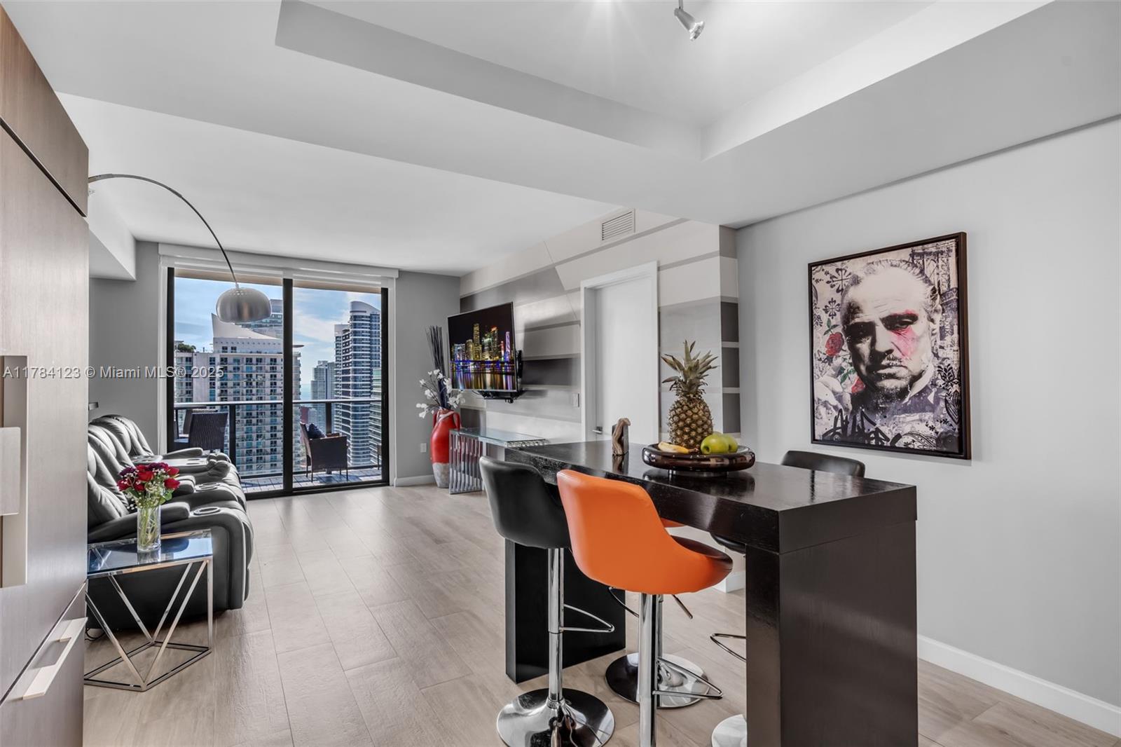 Experience the epitome of luxury living in the heart of vibrant Miami! This extraordinary high-floor unit at Brickell Heights East offers one bedroom + den and two bathrooms and comes fully furnished with high-end designer furniture, combining elegance and comfort. Relish in breathtaking bay and city views from your private balcony—perfect for taking in Miami’s iconic skyline and stunning sunsets. The open-concept kitchen is a chef’s dream, with top-of-the-line appliances and sleek, modern finishes. The spacious layout creates a seamless flow from the living area to the dining space, making it ideal for relaxing and entertaining. This unit also includes one assigned parking space and valet service for added convenience—utilities such as water, basic cable, and internet.