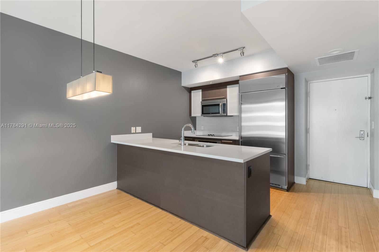Experience luxury living with breathtaking bay views. Hardwood flooring leads you through the space, highlighting high-end fixtures and features like the TV wall with a built-in mini bar, and a highly desired open concept floor plan. Step out onto the turfed balcony and enjoy panoramic views, or retreat to the master suite complete with a walk-in closet and large regrouted shower. Don't miss this opportunity to call this elegant condo your new home.