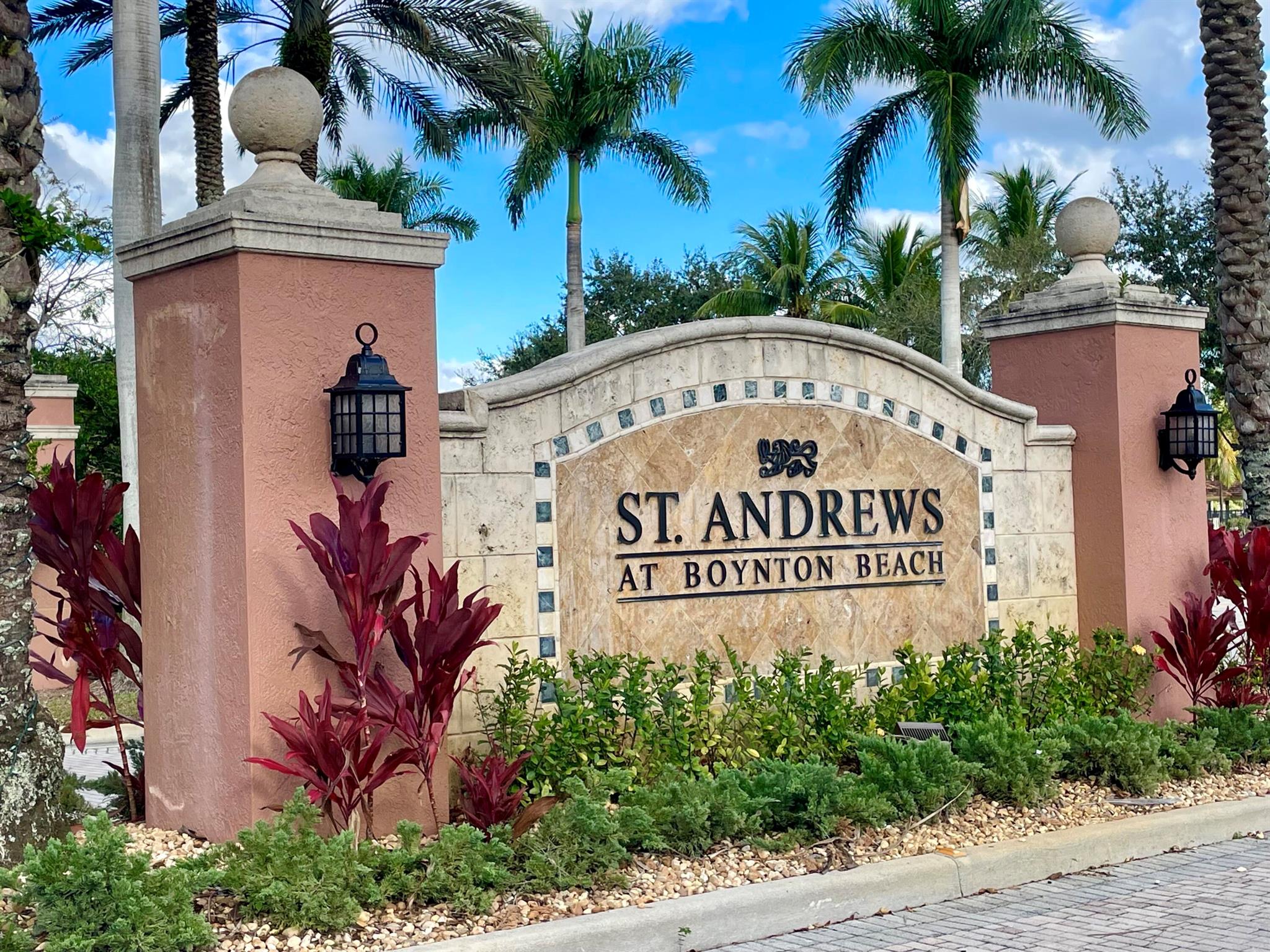 Beautiful bright and spacious 3/2 corner condo on 2nd floor with covered balcony in desirable gated St. Andrews At Boynton Beach. Vaulted ceiling, open split floor plan, new washer and dryer, tiles throughout. Updated kitchen with granite countertops, wood cabinets, stainless steel appliances. Master bedroom with walk in closet. Resort style community with heated pool, jacuzzi, fitness room, clubhouse. A-rated schools! Great for an investor, just rented, $2450 per month.