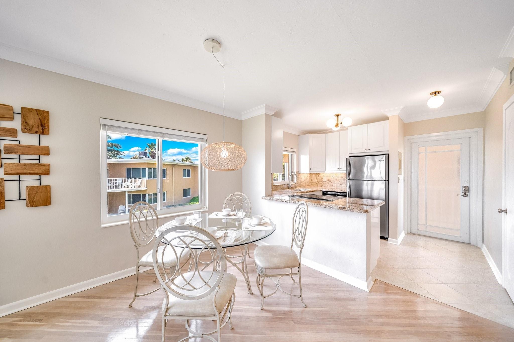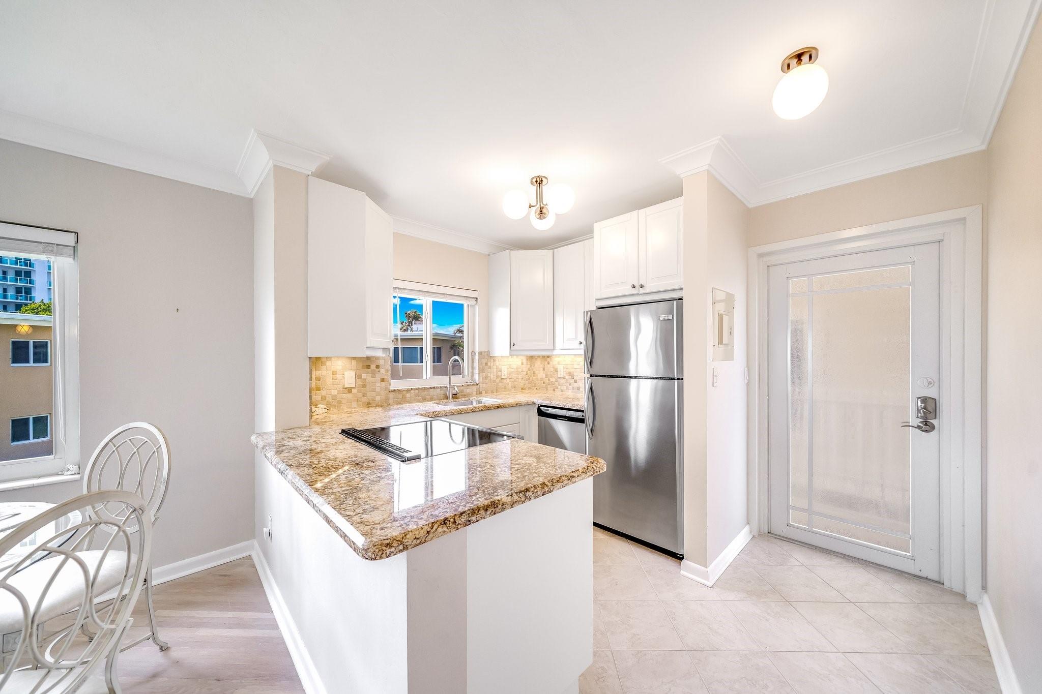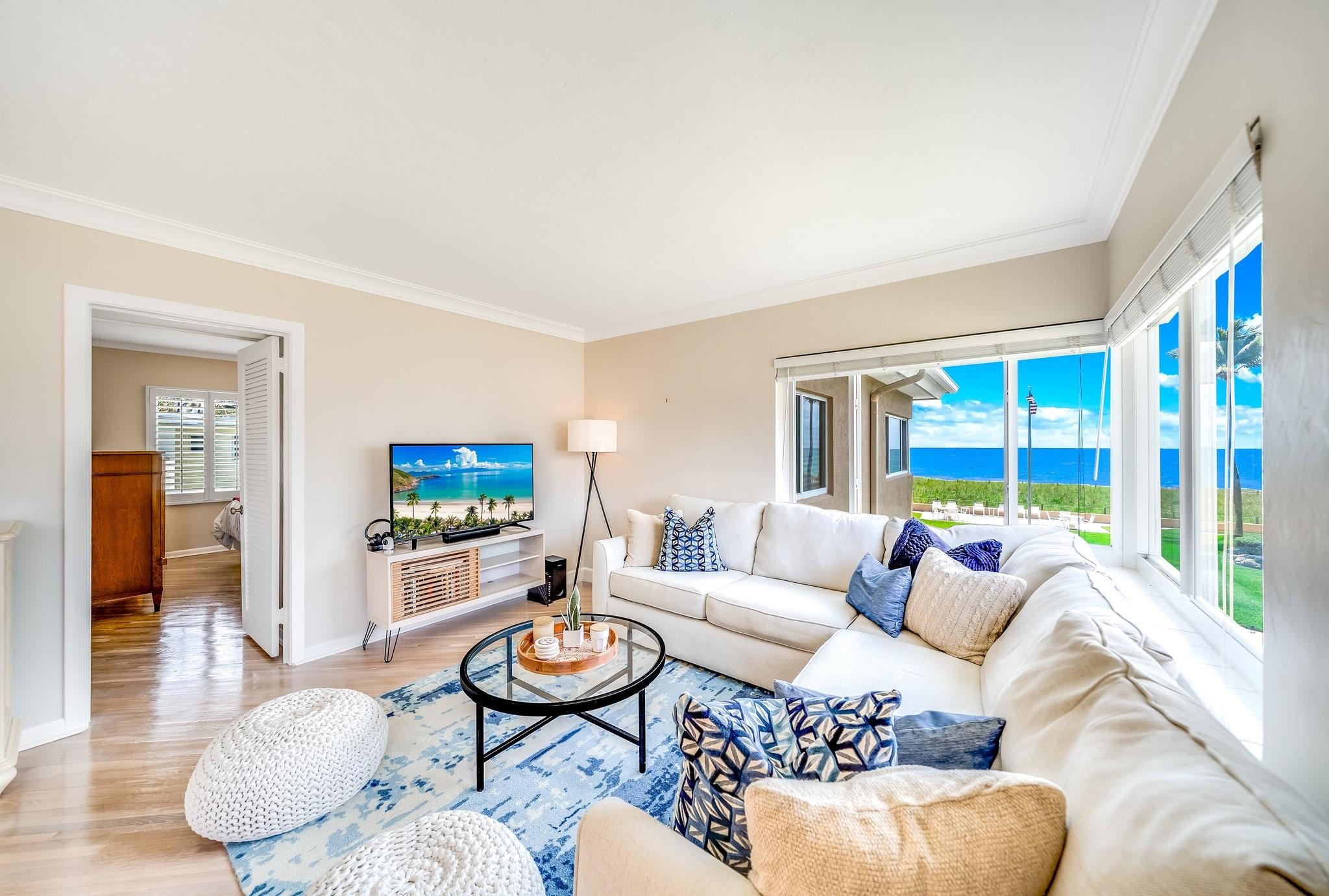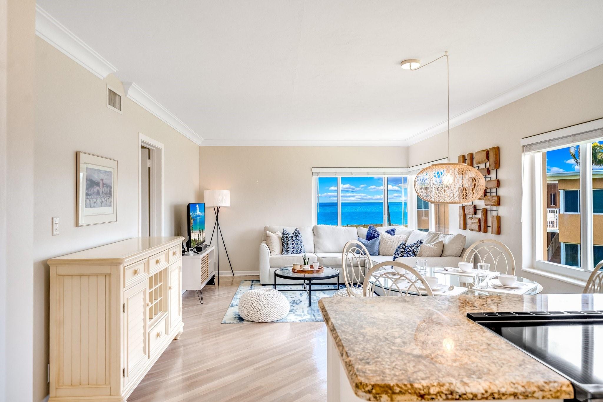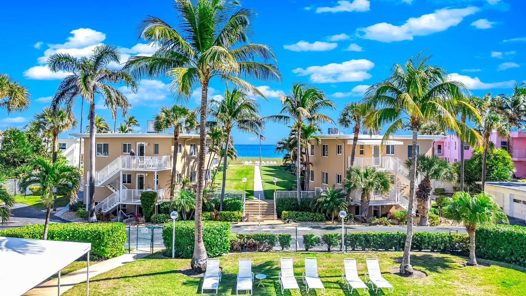 This serene oceanfront 2/2 corner unit has windows on all 4 sides which lets in incredible natural light. Both bedrooms have bathroom entry from bedroom. Substantially renovated open kitchen with views of the ocean, tankless water heater, 2023 Roof. Enjoy the ocean breeze on your patio, steps to the beach. Amenities include: community kitchen, grill, heated pool, on-site laundry facility, secure individual storage unit and 1 assigned parking space. Association fee covers water and monthly pest control. Association allows washer/dryer inside the unit. $1M renovation - New roof, concrete restoration and exterior building renovations have been completed, special assessment for it has already been paid! Showings by appointment only. Private property - Showings by appointment only