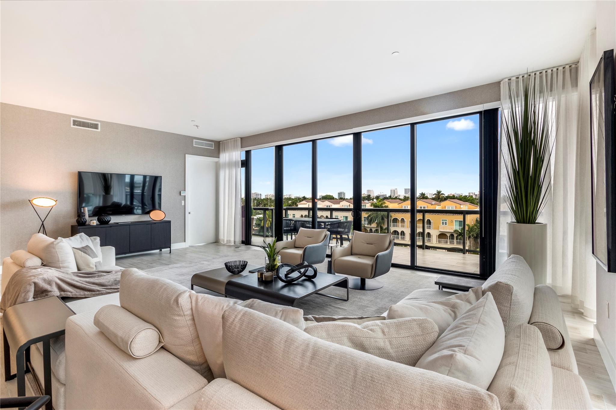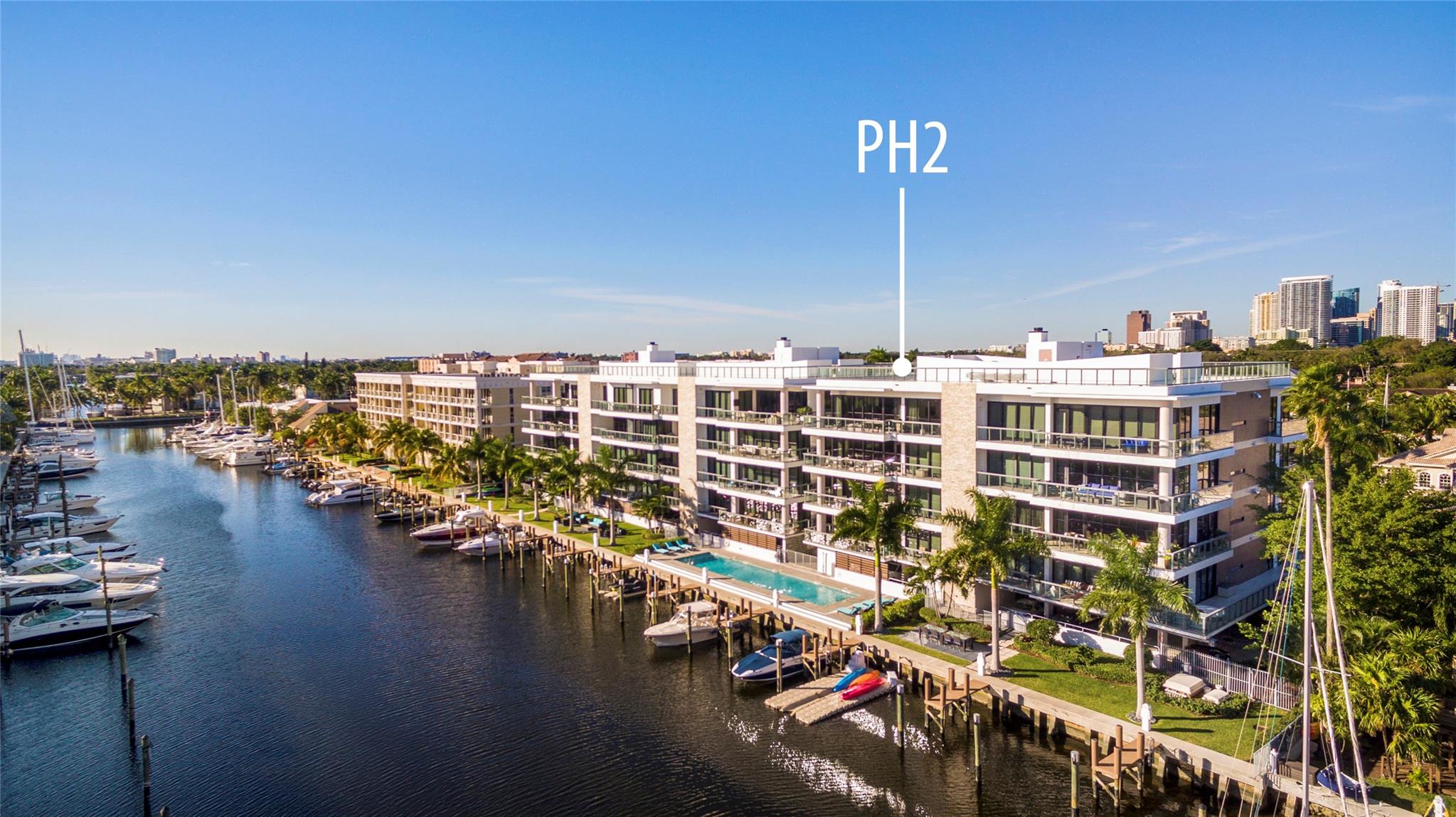 WATERFRONT PENTHOUSE WITH DOCKAGE | This contemporary design was inspired & decorated by award wining luxury interior design firm, Interiors By Steven G. | Fully Furnished & turn key, 3BR|3.1BA|2 assigned EV garage parking spaces. The bright open flr plan boasts 10' ceilings, floor to ceiling walls of glass & multiple sliding doorways leading to waterside balconies. The culinary kitchen will inspire the avid chef w/a lrg. center island ideal for entertaining, gas cooktop, wine fridge, & walk-in pantry. Waterside primary suite with 3 custom walk-in closets & lavish bathrm. Guest bedrms are en-suite w/custom walk-in closets. Dockage for a boat up to 50' in length. Common area waterside pool & patio area. Common area fitness center. Mins. to restaurants, shopping & the beach. Sq ft from BCPA
