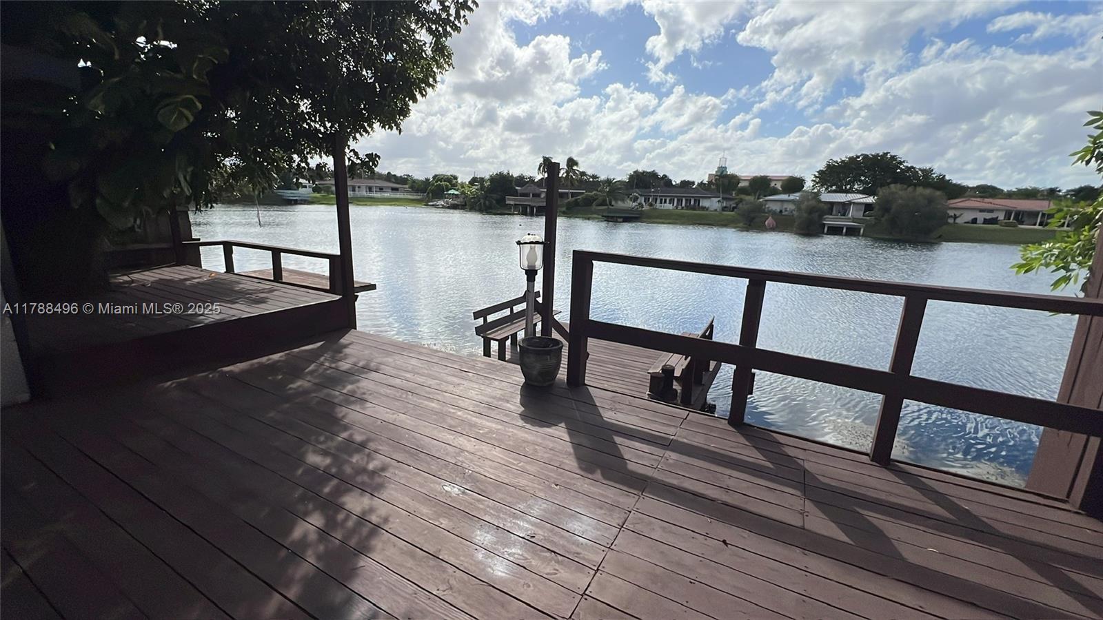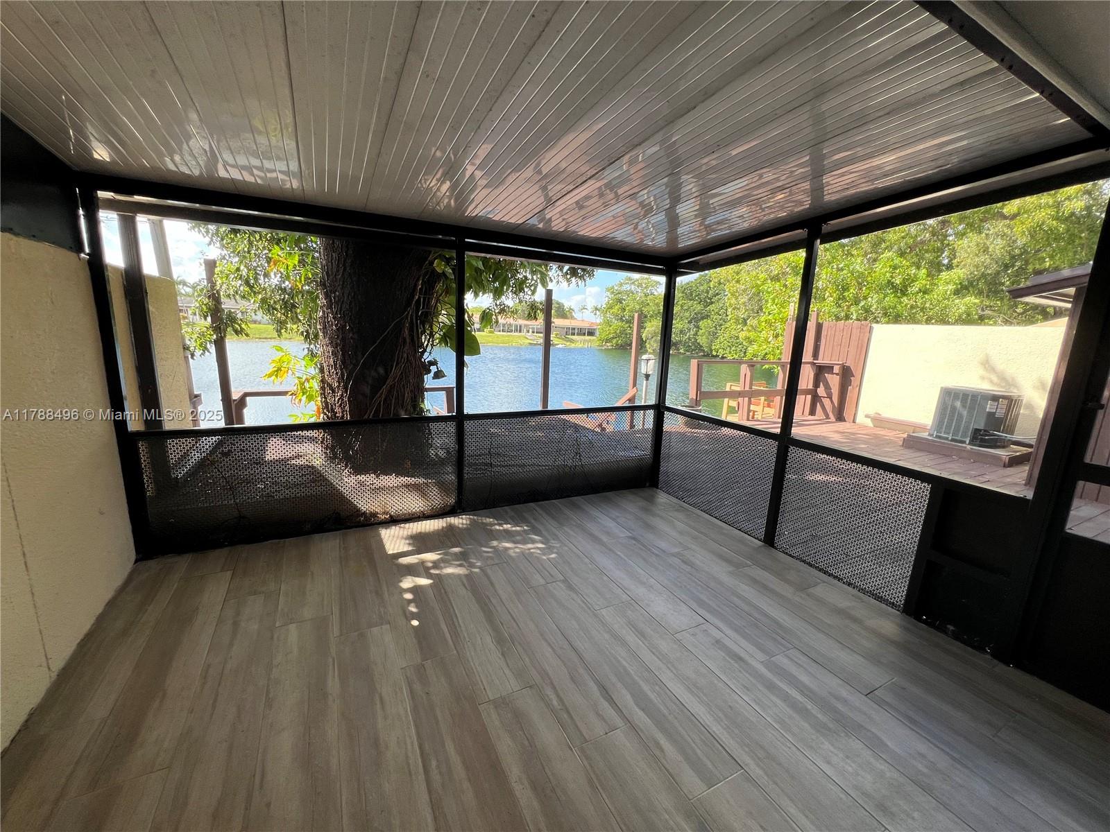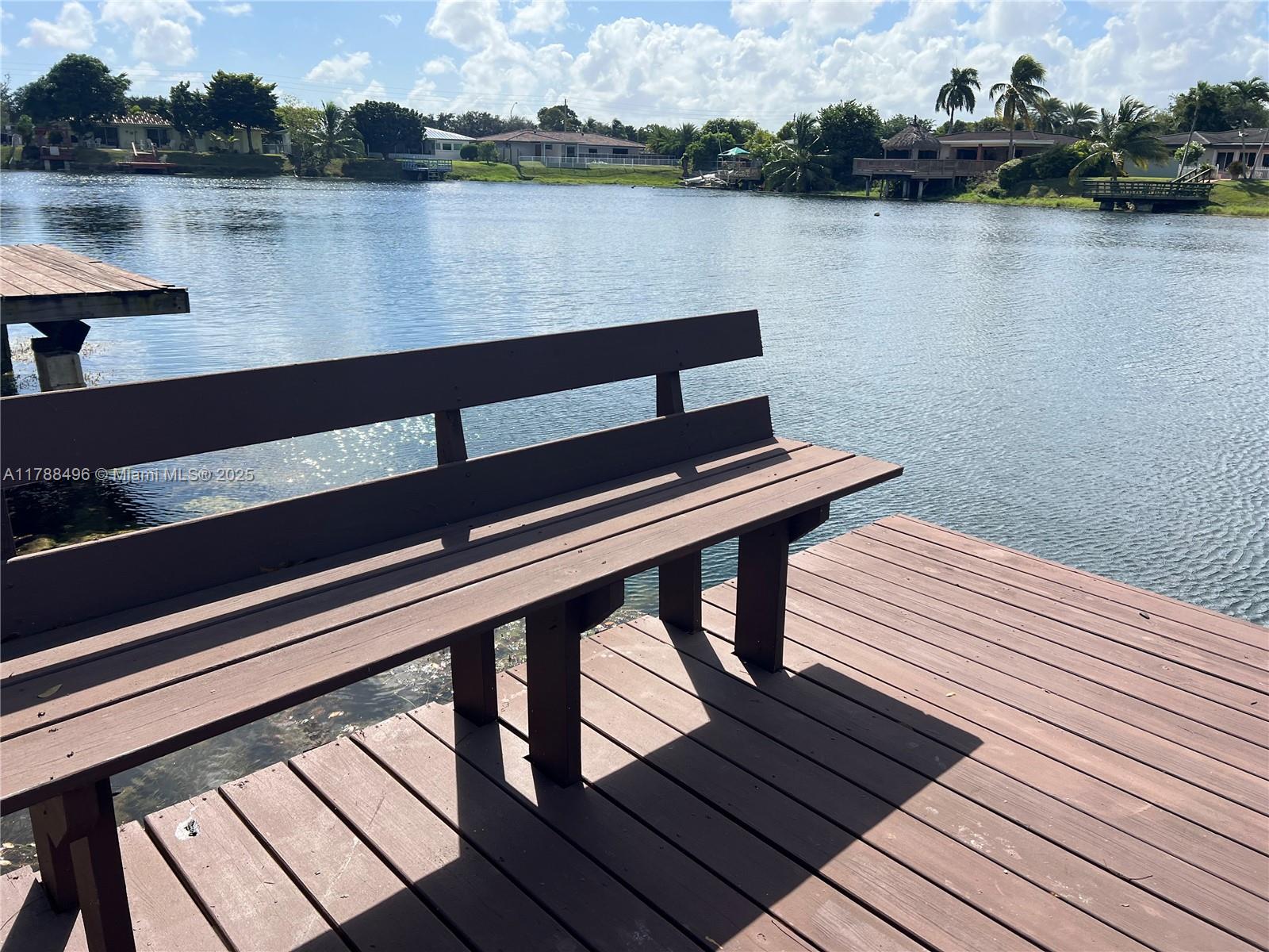 Stunning 3-bedroom, 2-bath lakefront townhouse offering a perfect blend of comfort and style! Enjoy breathtaking water views from your private dock, expansive wood deck, and screened patio. Interior features include an open-concept kitchen, sleek tile flooring, and large windows inviting in natural light. Spacious layout feels like a single-family home. Two assigned parking spaces conveniently located at your doorstep. Nestled in a peaceful community just minutes from parks, shopping, and Kendale Lakes Golf Course. Low HOA fee of only $90/month covers maintenance.