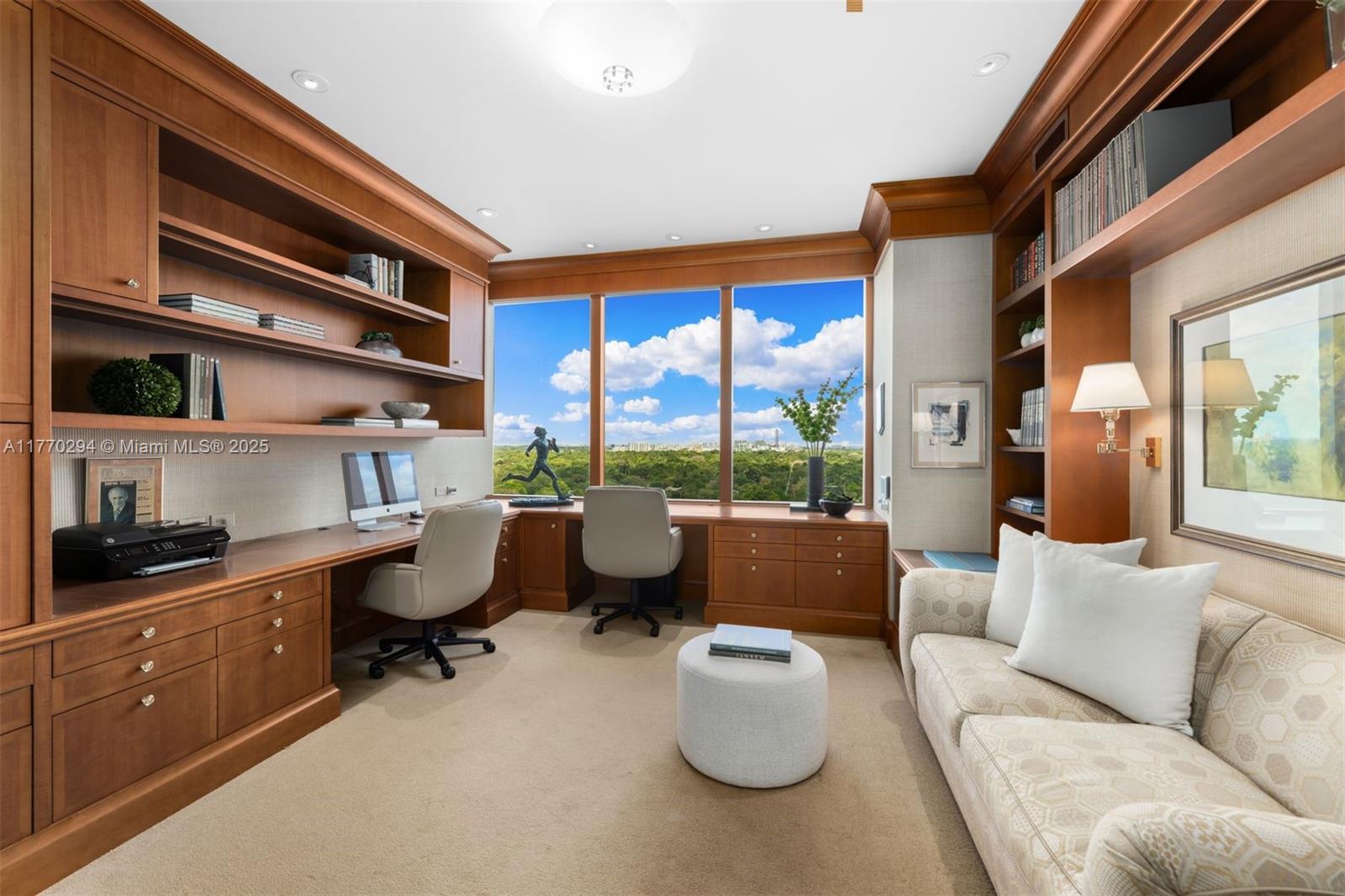 Discover refined elegance in Unit 16K of the Gables Club, a 5,230 SF masterpiece designed by Holmes Newman. Enjoy panoramic views of Biscayne Bay from two open balconies in this 3-bedroom, 4.5-bath residence, with an office, an additional room that can be turned into a fourth bedroom, a recreation room, a private elevator, grand foyer with custom dome ceiling, and expansive living areas adorned with herringbone wood floors. The gourmet kitchen boasts a center island, Sub-Zero and Miele appliances and a butler’s pantry, and the primary suite has dual marble bathrooms and walk-in closets. Gables Club amenities include 24-hour concierge, heated pools, spa, fitness center, tennis courts, marina, and a private restaurant. Includes two assigned parking spaces and private storage.