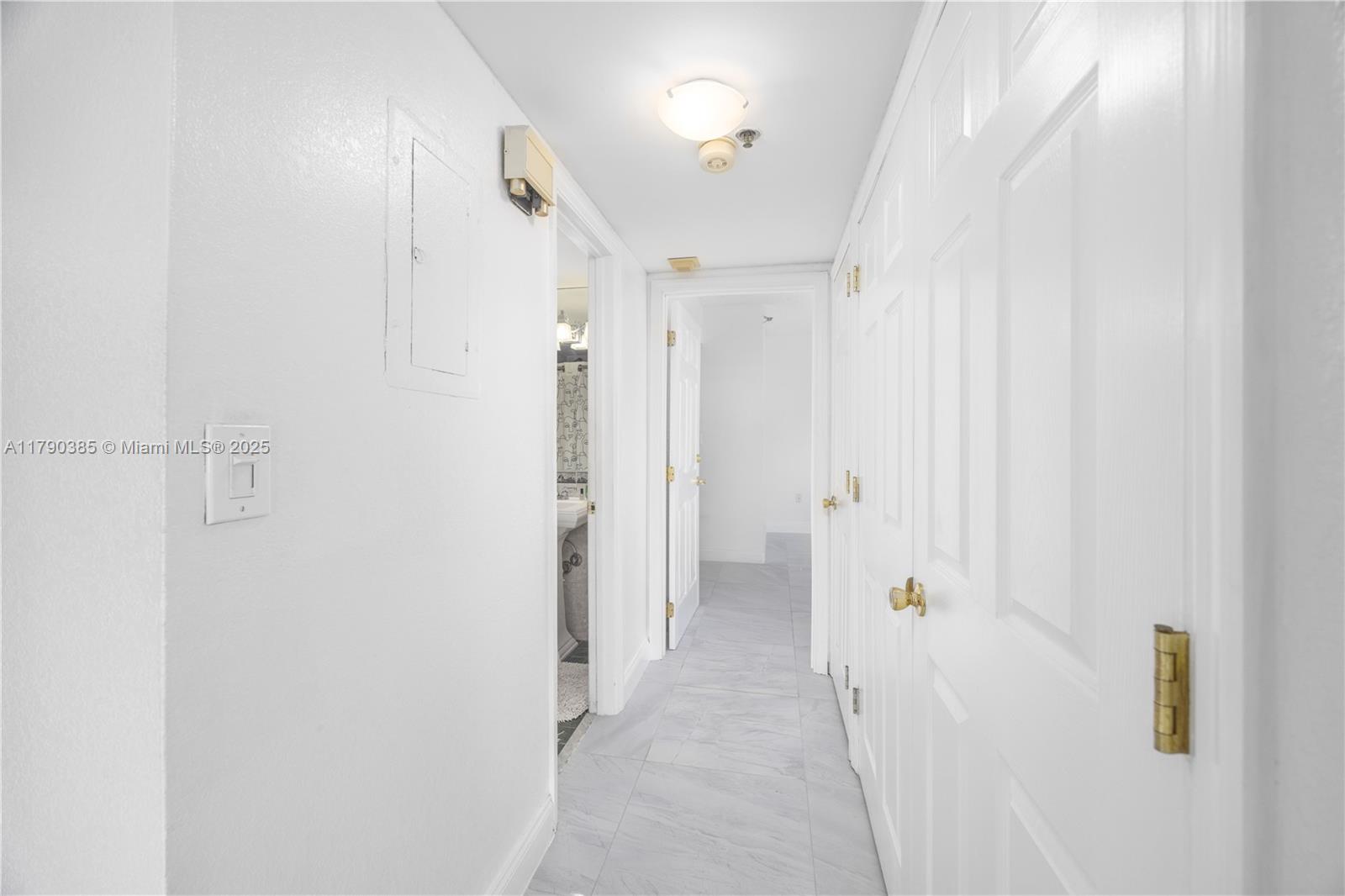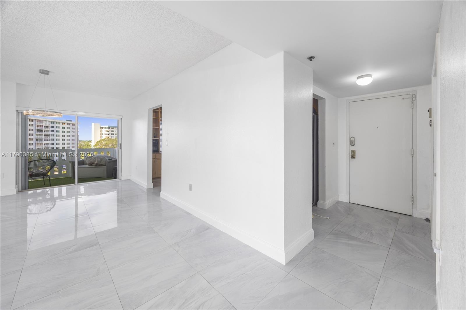 This spacious 2-bedroom, 2-bathroom corner unit on the 6th floor offers 1,344 sq ft of beautifully updated living space with tile flooring throughout. Enjoy abundant natural light, built-in features, serene garden views, and the added security of high-impact windows. The modern kitchen is outfitted with stainless steel appliances, including a dishwasher, microwave, and refrigerator. Assigned parking and guest spaces are included. The building boasts a new roof and completed 40-year certification for added peace of mind. A perfect home blending comfort, style, and convenience!