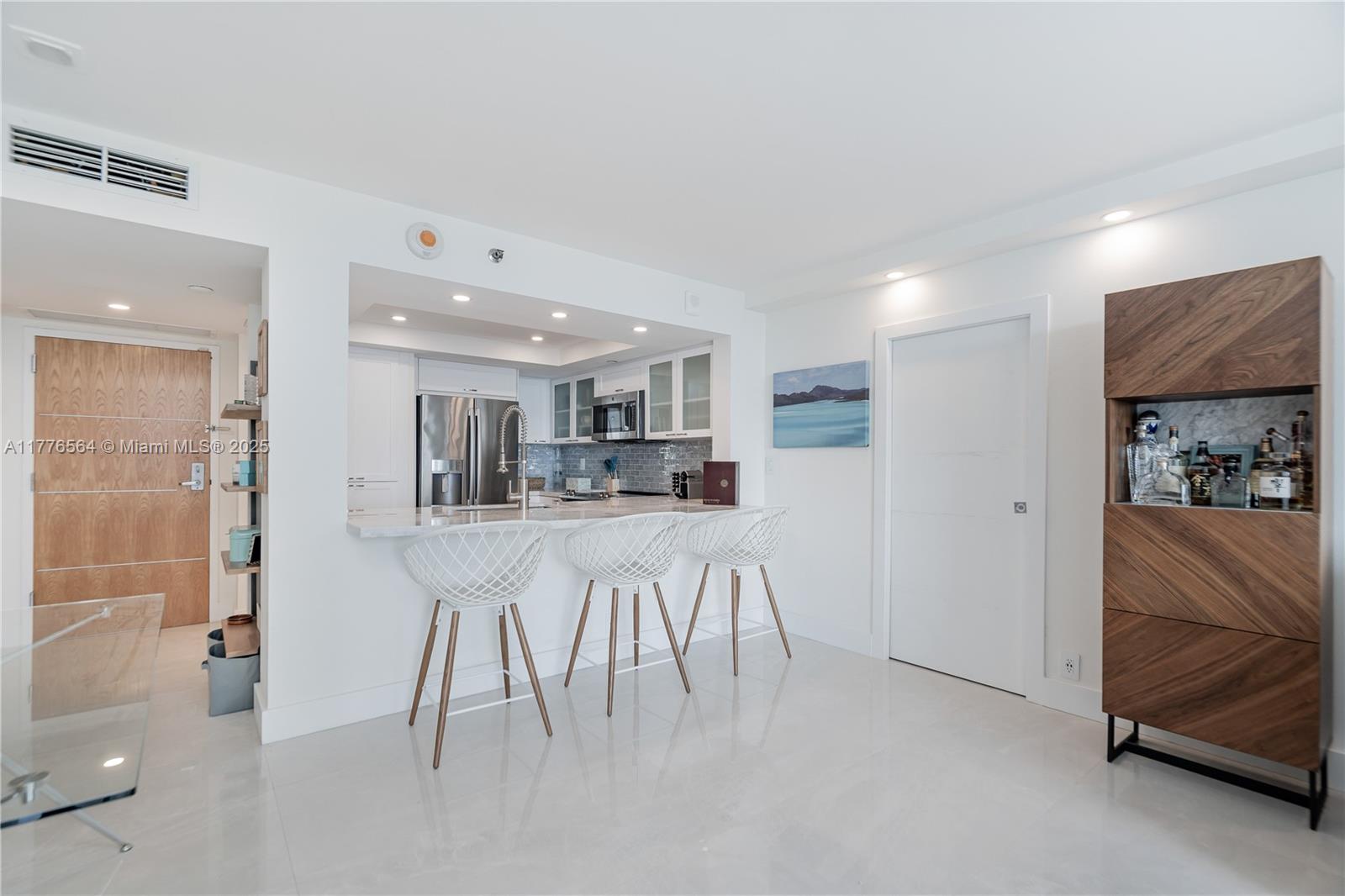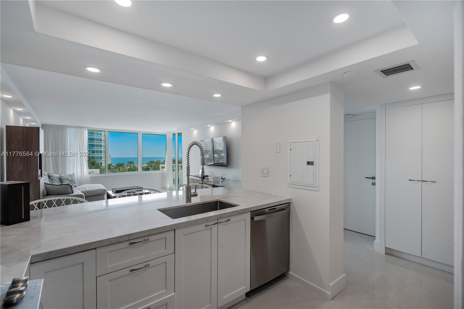 Beautiful and renovated 2beds/2bath with amazing views of the ocean and city. Located in South of Fifth neighborhood, 1,169/sqft under a/c area + open balcony. All new impact windows/doors. Features include light 24x42 Porcelain tiles, renovated kitchen with quartz counters, new S.Steel appliances, washer & dryer inside kitchen cabinets, designer doors, new bathrooms, split floor plan, ample custom-made closets throughout + pantry , large balcony with access from living and bedroom. Unit comes with 1 parking space. Full-service building with security, valet and resort style amenities including fitness center, business center, 2 pools. Walkability to the best restaurants, shops, entertainment, parks, pier, boardwalk and marina...Broker/Agents (go-to broker's remarks).