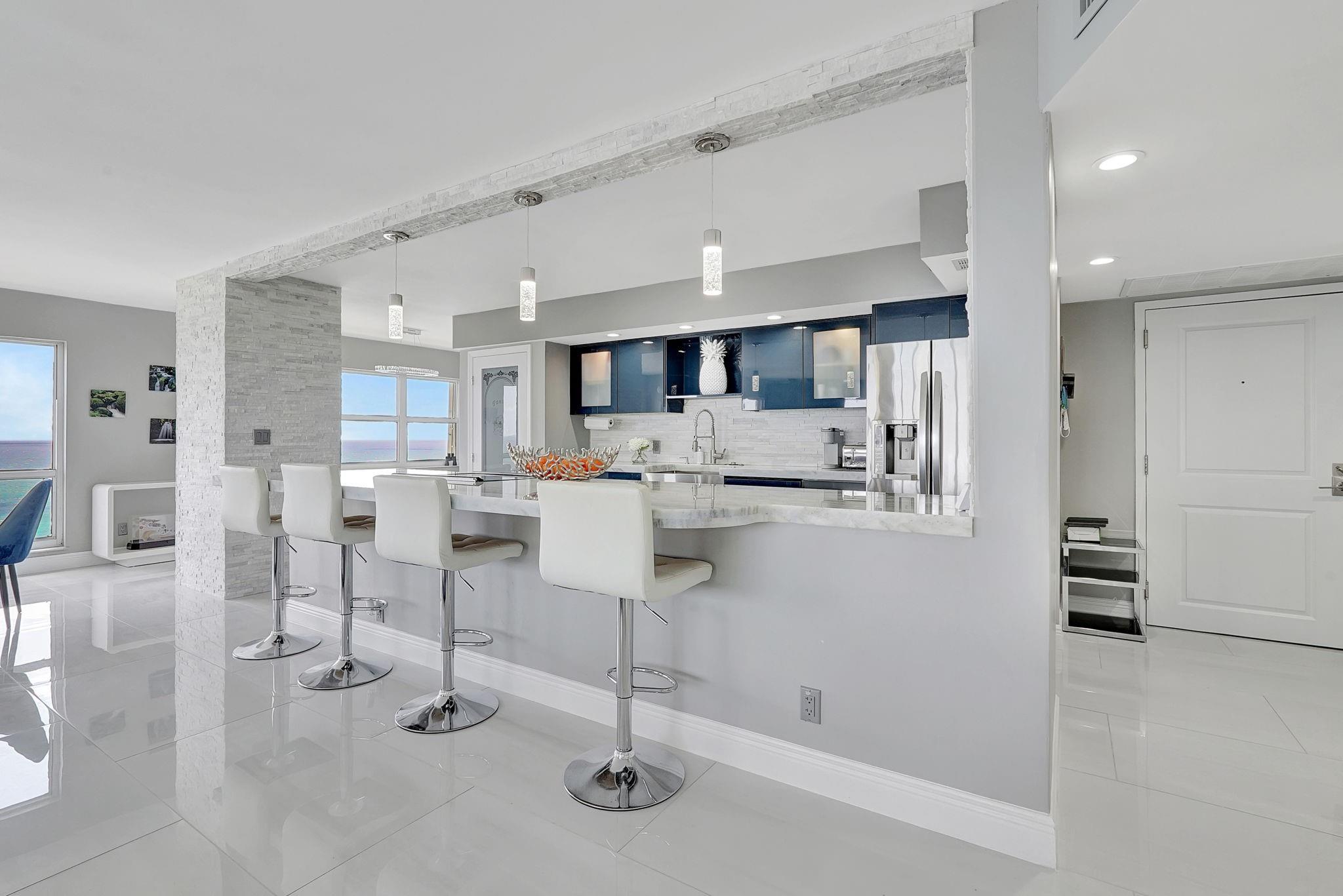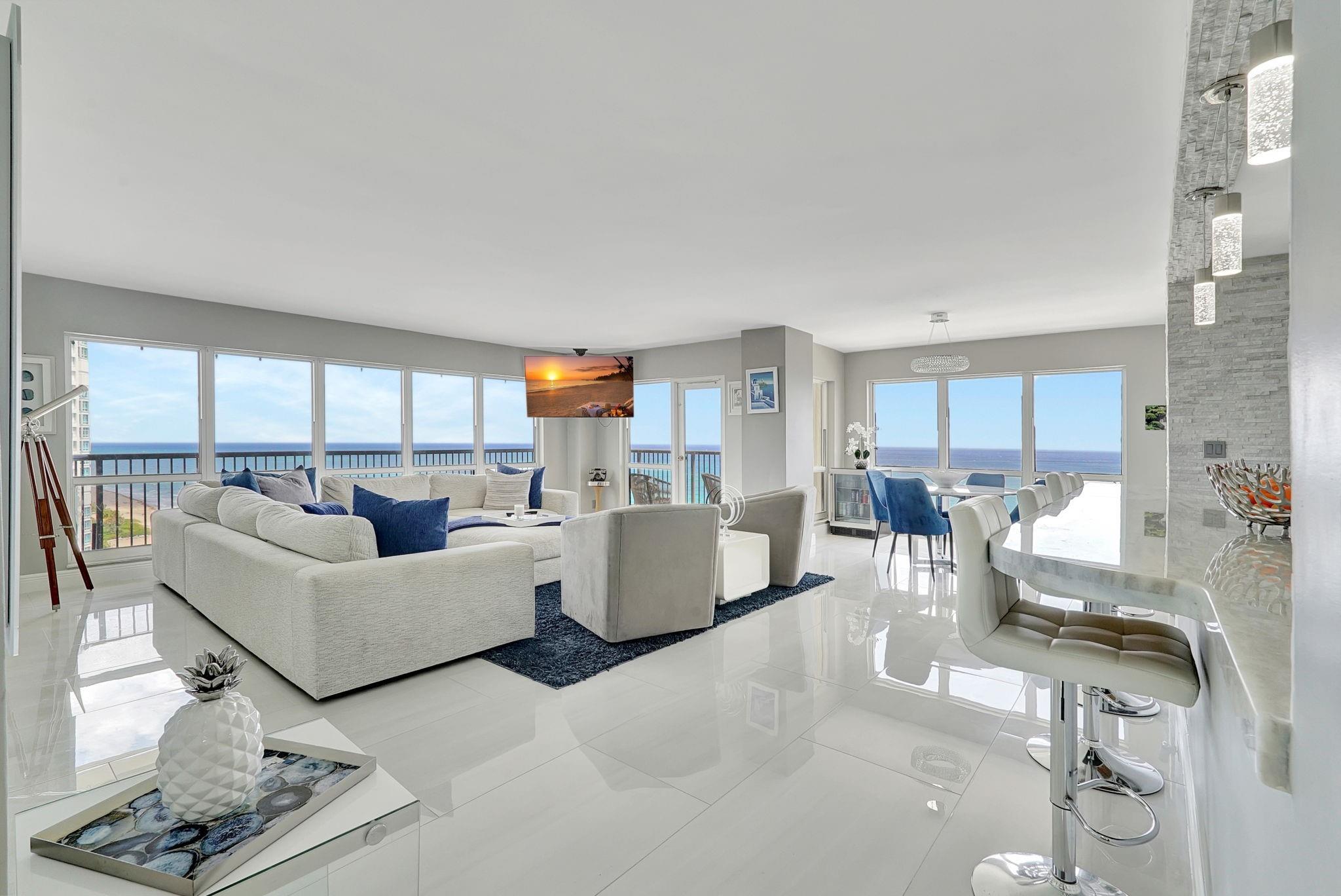 Welcome to this spectacular 3bedroom, 2.5 bath luxury penthouse perched directly on the beachfront—where sweeping ocean views & elegant modern updates define everyday living. This residence boasts an open-concept layout flooded w/natural light & a seamless flow between indoor/outdoor spaces. The fully renovated Diemme Cucine Italian kitchen w/quartz countertops, Italian style bathroom cabinetry & ocean views from every bedroom offer upscale comfort w/timeless style. Unobstructed views of the coastline from your private balcony—perfect for morning coffee or sunset cocktails. W/ over $130k in special assessments already paid, enjoy worry-free ownership in one of the area’s most desirable buildings. Full-time residence or high-end investment this turnkey coastal gem delivers on all fronts