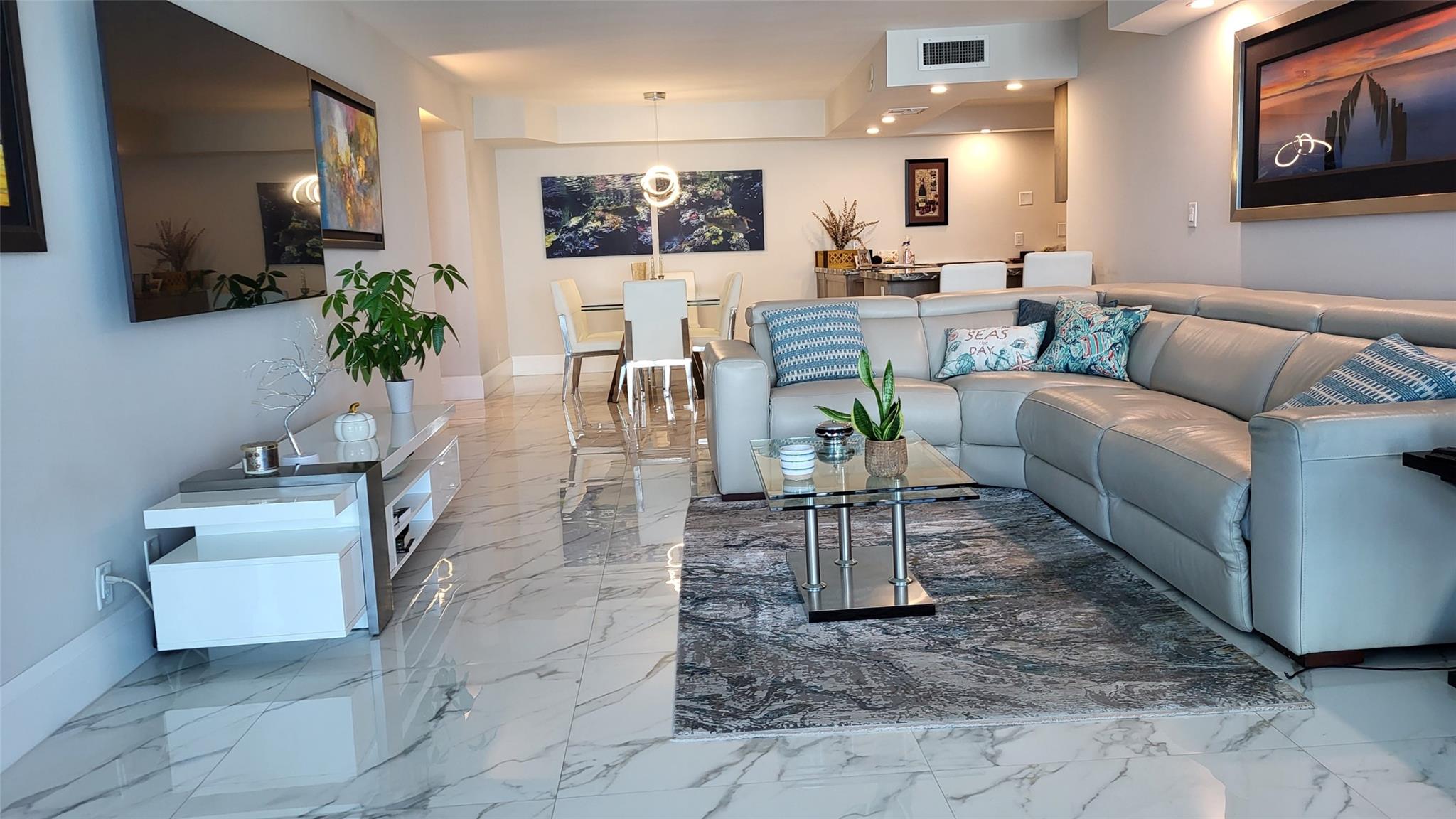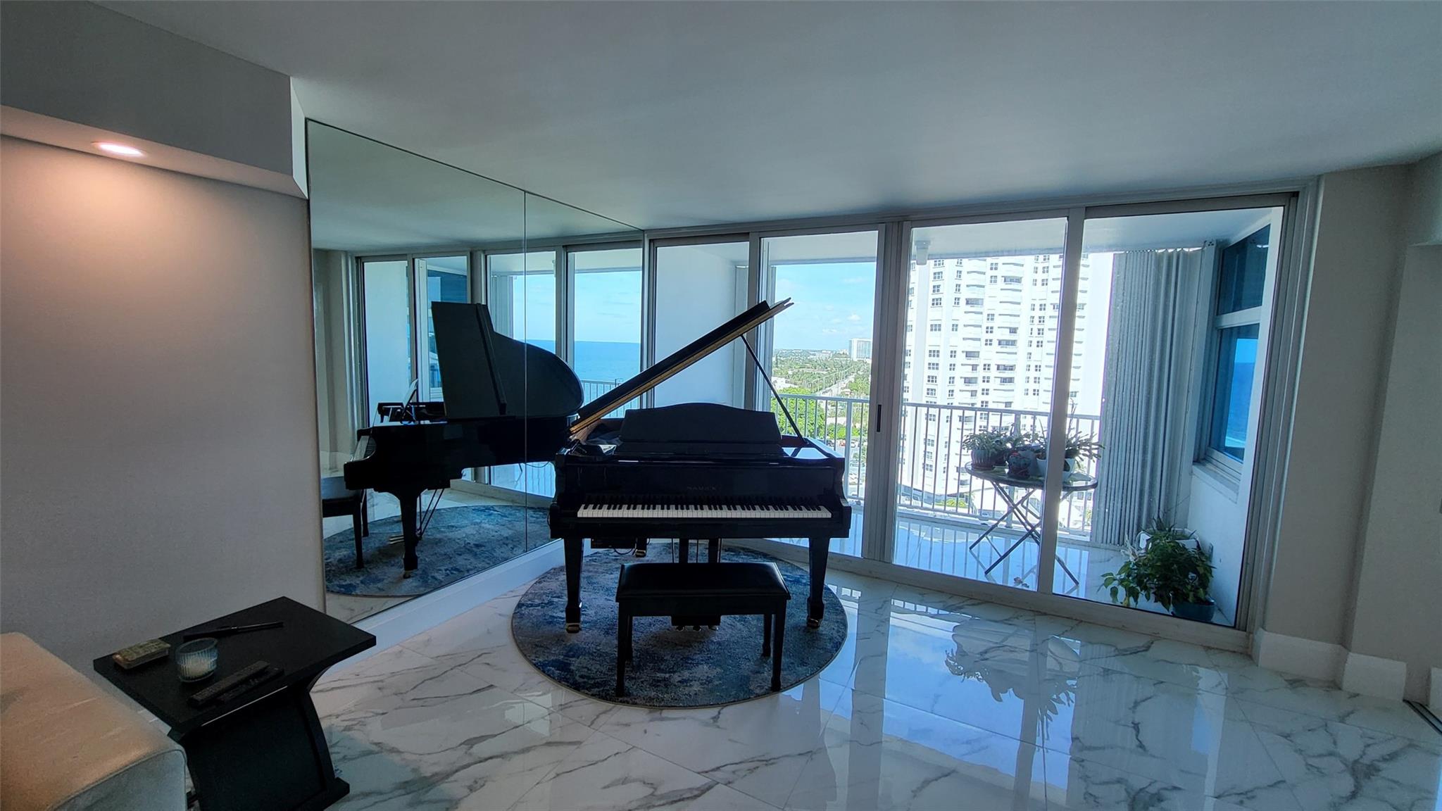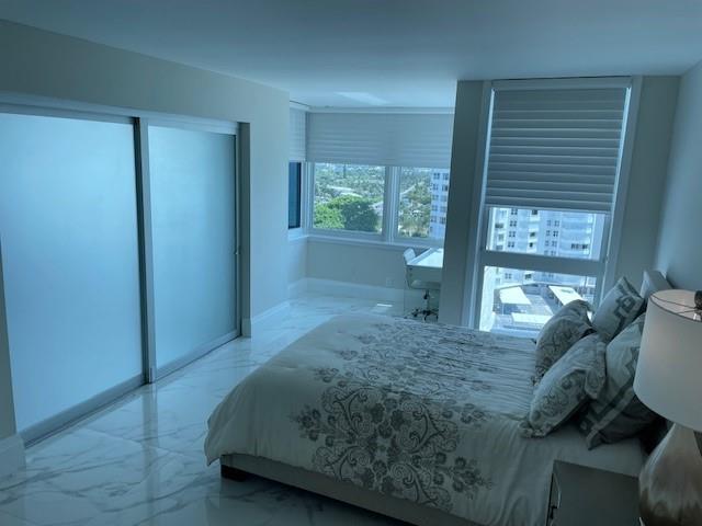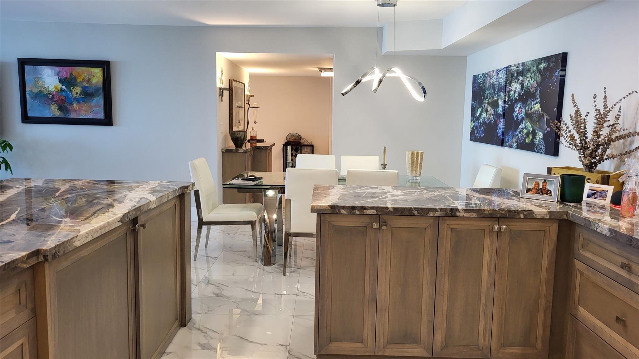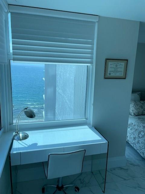 Elegance exudes from opening the front door of this remodeled & furnished 2/2 you have been looking to call your home! The foyer greets with custom, high end marble floors, custom cabinetry & gorgeous finishes which carry throughout the entire unit. The owner spared no expense, creating an exquisite unit with outstanding views. A few more steps in opens up into an expansive living dining area leading to a parlor grand piano & balcony. A chef's kitchen appointed with GE Profile appliances including a double oven & generous elegant top of the line stone counter tops. Both bathrooms are also fitting the most discriminating taste. Enjoy beautiful ocean view from the entire main bedroom and its large walk-in closet with built-ins as well. The guest bedroom has a cool bonus desk/reading alcove.