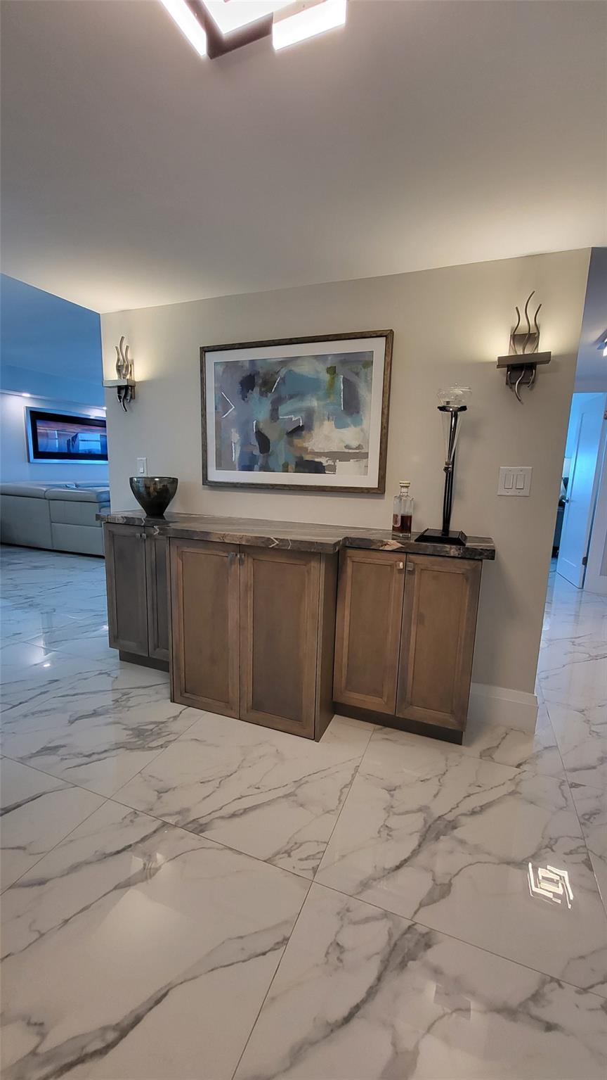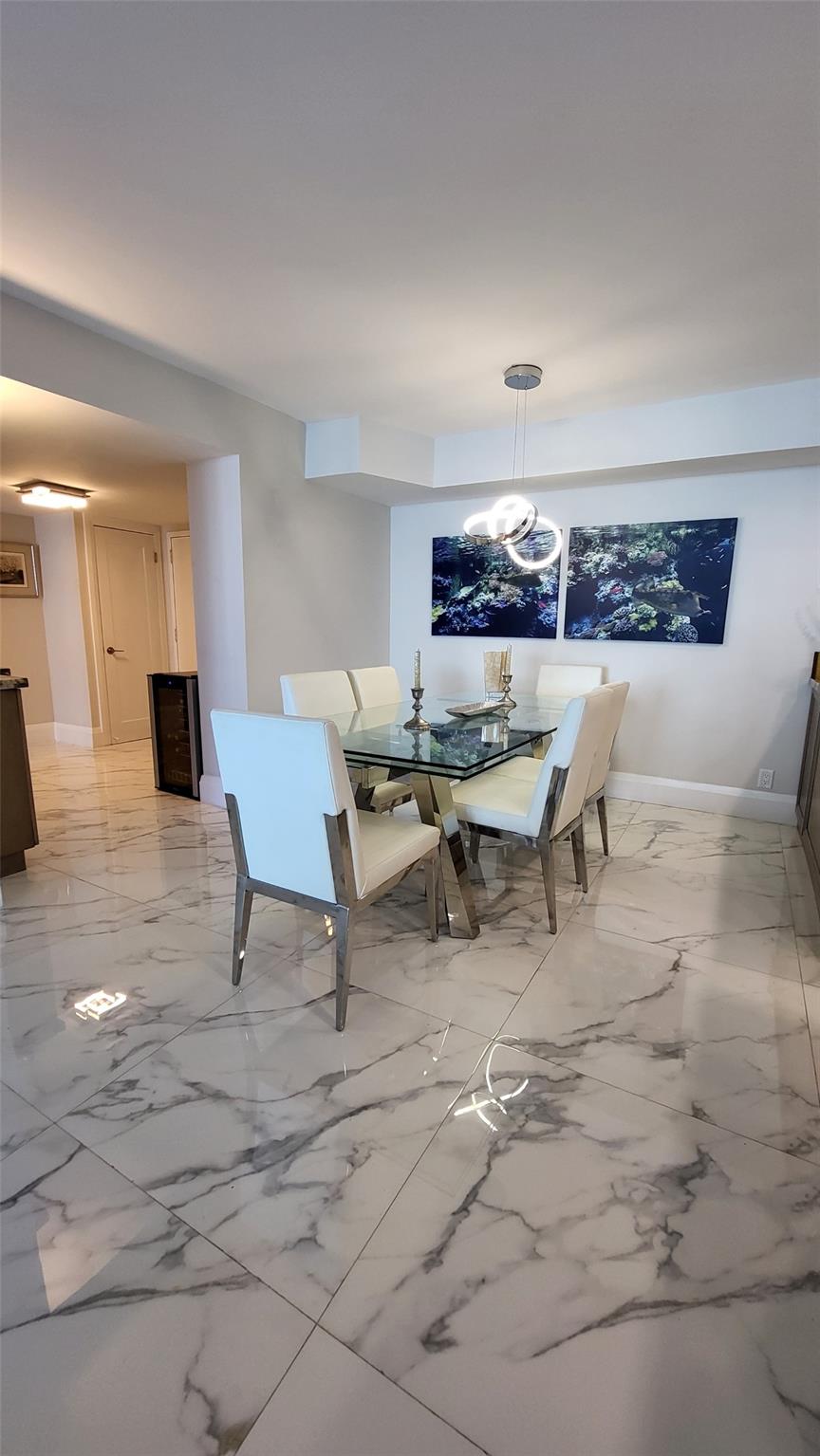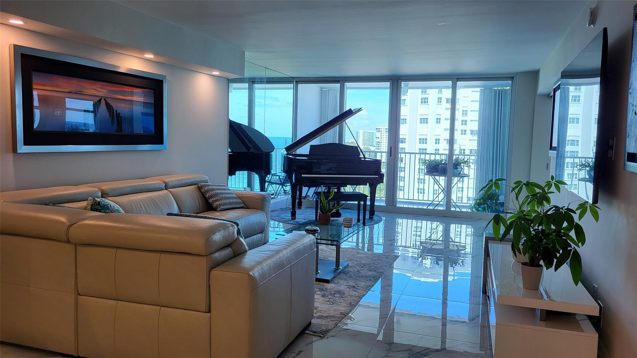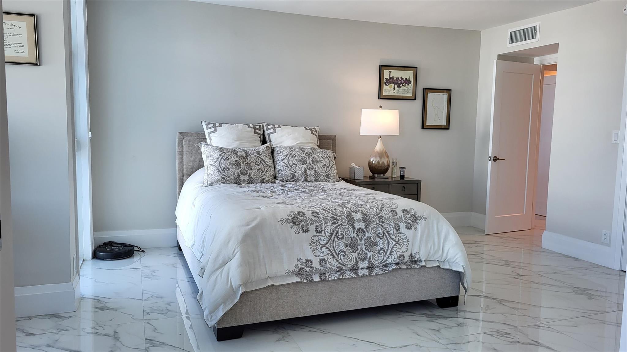 Elegance exudes from opening the front door of this remodeled & furnished 2/2 you have been looking to call your home! The foyer greets with custom, high end marble floors, custom cabinetry & gorgeous finishes which carry throughout the entire unit. The owner spared no expense, creating an exquisite unit with outstanding views. A few more steps in opens up into an expansive living dining area leading to a parlor grand piano & balcony. A chef's kitchen appointed with GE Profile appliances including a double oven & generous elegant top of the line stone counter tops. Both bathrooms are also fitting the most discriminating taste. Enjoy beautiful ocean view from the entire main bedroom and its large walk-in closet with built-ins as well. The guest bedroom has a cool bonus desk/reading alcove.