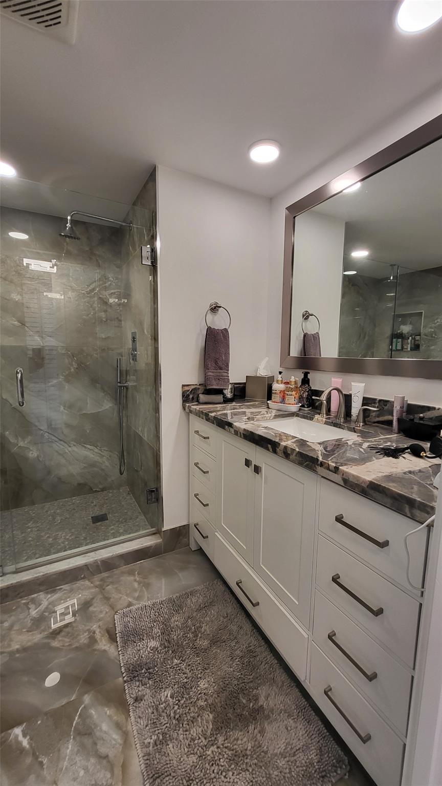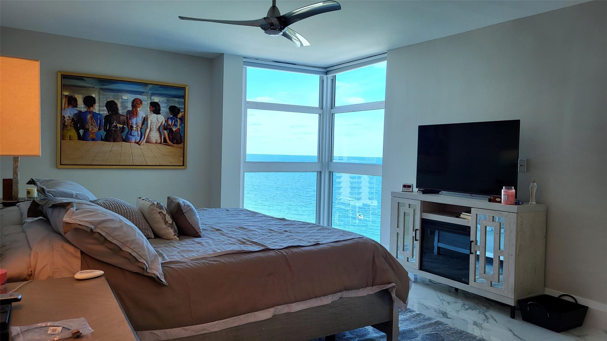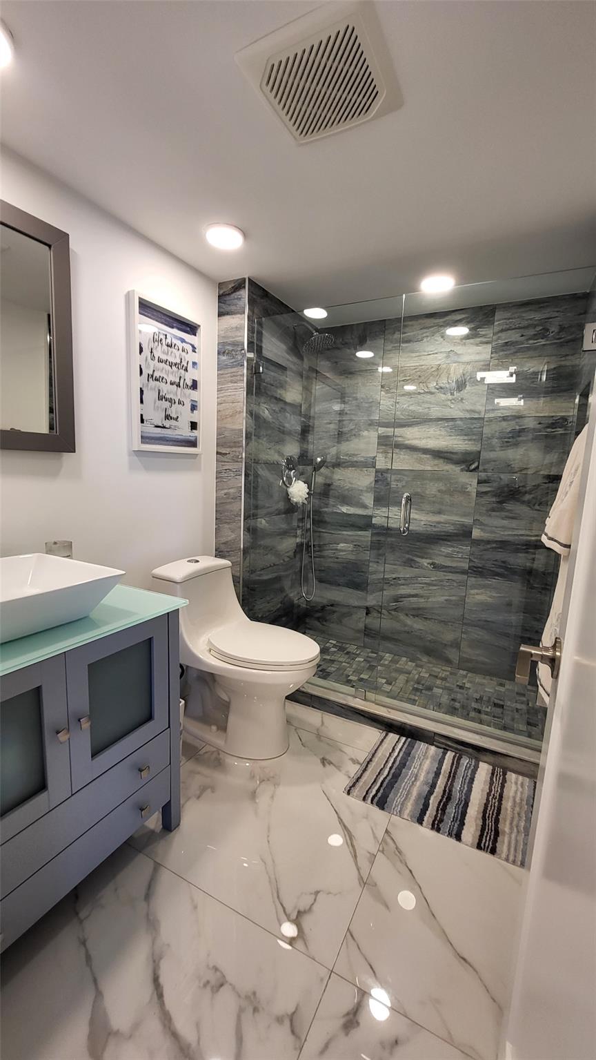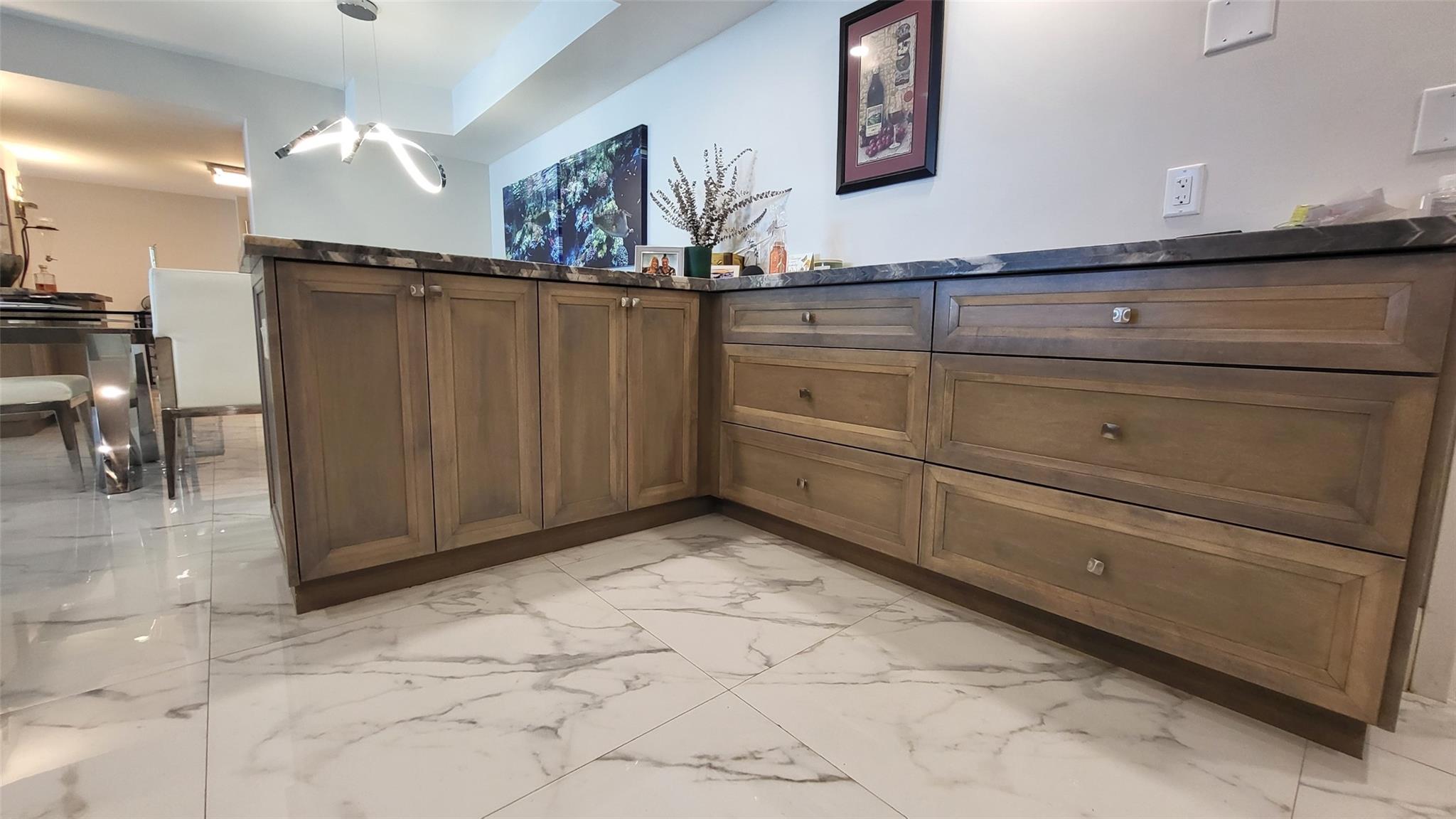 Elegance exudes from opening the front door of this remodeled & furnished 2/2 you have been looking to call your home! The foyer greets with custom, high end marble floors, custom cabinetry & gorgeous finishes which carry throughout the entire unit. The owner spared no expense, creating an exquisite unit with outstanding views. A few more steps in opens up into an expansive living dining area leading to a parlor grand piano & balcony. A chef's kitchen appointed with GE Profile appliances including a double oven & generous elegant top of the line stone counter tops. Both bathrooms are also fitting the most discriminating taste. Enjoy beautiful ocean view from the entire main bedroom and its large walk-in closet with built-ins as well. The guest bedroom has a cool bonus desk/reading alcove.