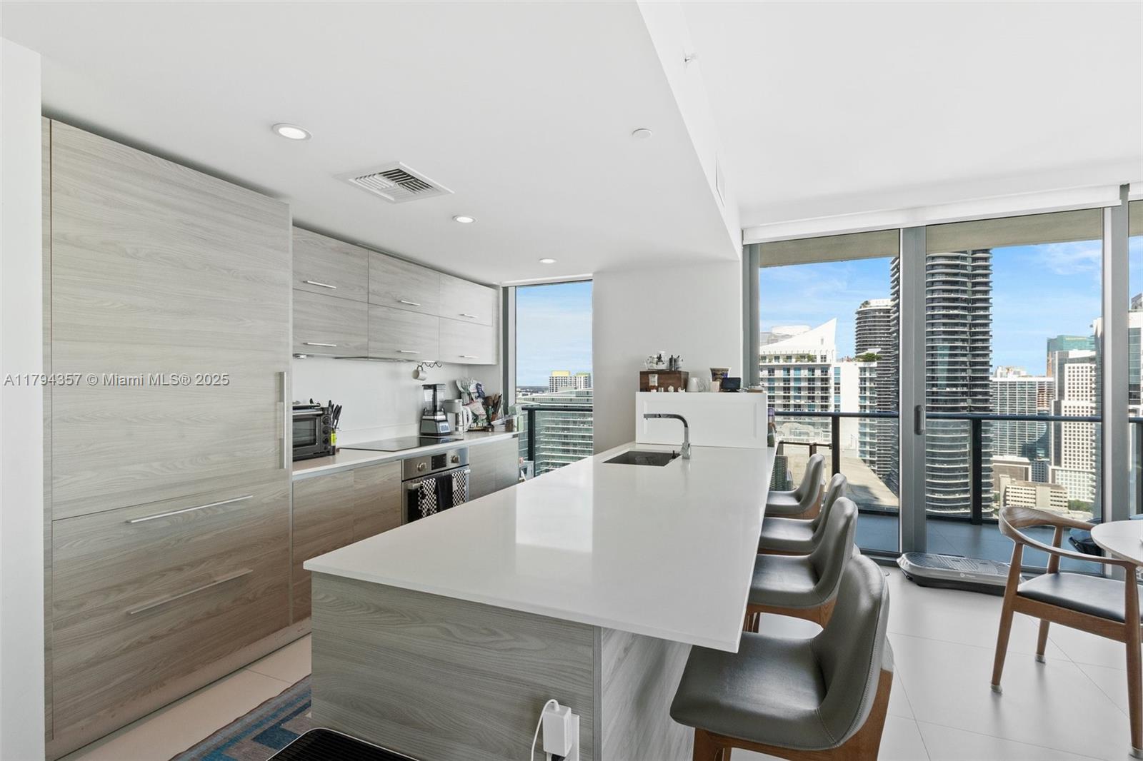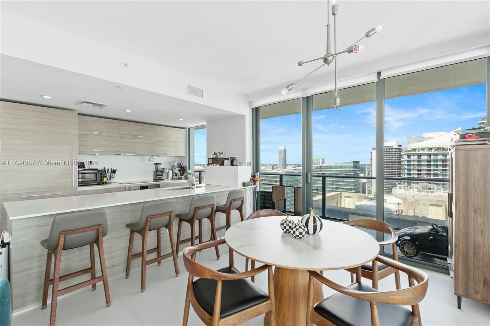 This bright and spacious 2/2 + Den corner unit boasts 1,279 square feet of elegantly designed living space, featuring a versatile den perfect for a home office or guest room. Enjoy panoramic skyline and ocean views from abundant windows which fill the space with natural light. The unit features high-end finishes, a contemporary kitchen with top-of-the line appliances and modern bathrooms. The spacious layout is perfect for entertaining, with a seamless flow between the living, dining, and kitchen areas. Situated in the vibrant Brickell neighborhood just steps away from world-class dining, shopping, and nightlife. Building amenities include: lap pool, rooftop pool, state-of-the-art gym, business center, clubroom & more. Unit comes with 1 assigned parking spot: #650; 2 pets allowed per unit