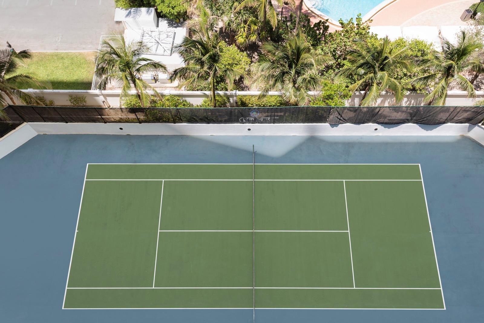 WOW! TAKE YOUR PRIVATE ELEVATOR TO THE 9TH FLOOR, WHERE WELCOMING OCEAN VIEWS LET THE VIBES OF THE ATLANTIC OCEAN SURROUND YOU! THIS IMPECCABLY CLEAN CONDO HAS AN OPEN FLOOR PLAN. BOASTING MARBLE FLOORS W/ FLOOR TO CEILING IMPACT GLASS WINDOWS AND DOORS. THE KITCHEN HAS SNAIDERO CABINETRY .THE DEN (3rd bed) OFF THE DINING ROOM, HAS CONTEMPORARY GLASS BARN DOORS WITH AN ARCHITECTURAL CURVE IN THE CEILING ABOVE. ENJOY THE PHOTOS WITH THE COUCH OPENED & CLOSED. BRAZILIAN HARDWOOD FLOORS ARE IN THE PRIMARY AND 2ND BEDROOM. BED 2 HAS ENSUITE BATHROOM. AMENITIES INCLUDE 2 STORY EXERCISE ROOM, TENNIS COURT, CLUB ROOM -WHERE YOU CAN ENJOY COFFEE EVERY MORNING. THE INFINITY POOL OVERLOOKING THE OCEAN IS TRULY THE PRIZE IN THIS BUILDING, CHAIR & TOWEL SERVICE PROVIDED.