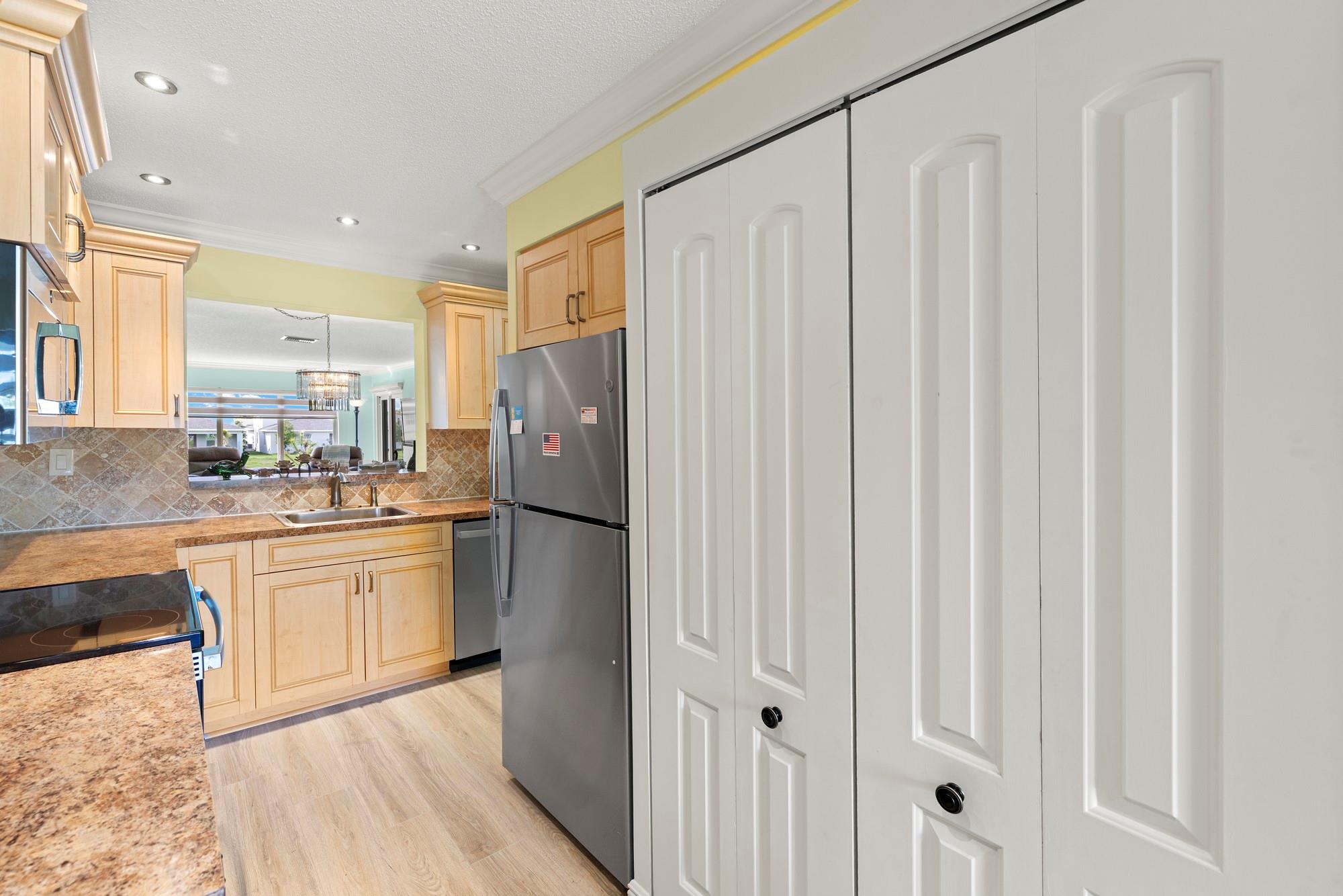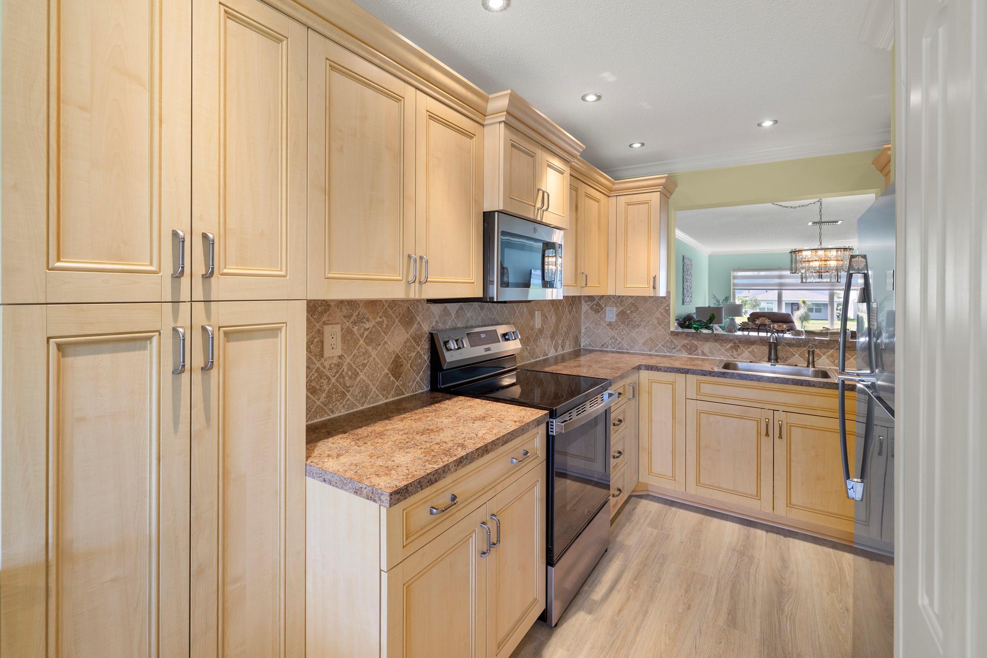 Beautifully Remodeled and Move In Ready 2nd floor unit in Palm Greens II. This unit has it all including: Impact Windows and sliding doors (2023), New kitchen & appliances (2024), new flooring (2025), master bathroom remodel, electronic roller shades (2024), A/C unit (2022), fresh paint. Inside you'll discover some nice features such as an open and spacious floor plan with large room sizes, walk in closet in the master bedroom, both bedrooms have balconies, larger handicap friendly door openings, and the whole layout lends itself to entertaining allowing calming lake views from the second you walk in, and in unit washer and dryer make for added convenience. Palm Greens is an active 55+ community, with 2 pools, clubhouse, tennis, shuffleboard, etc. **Seller will owner finance w/$100k down