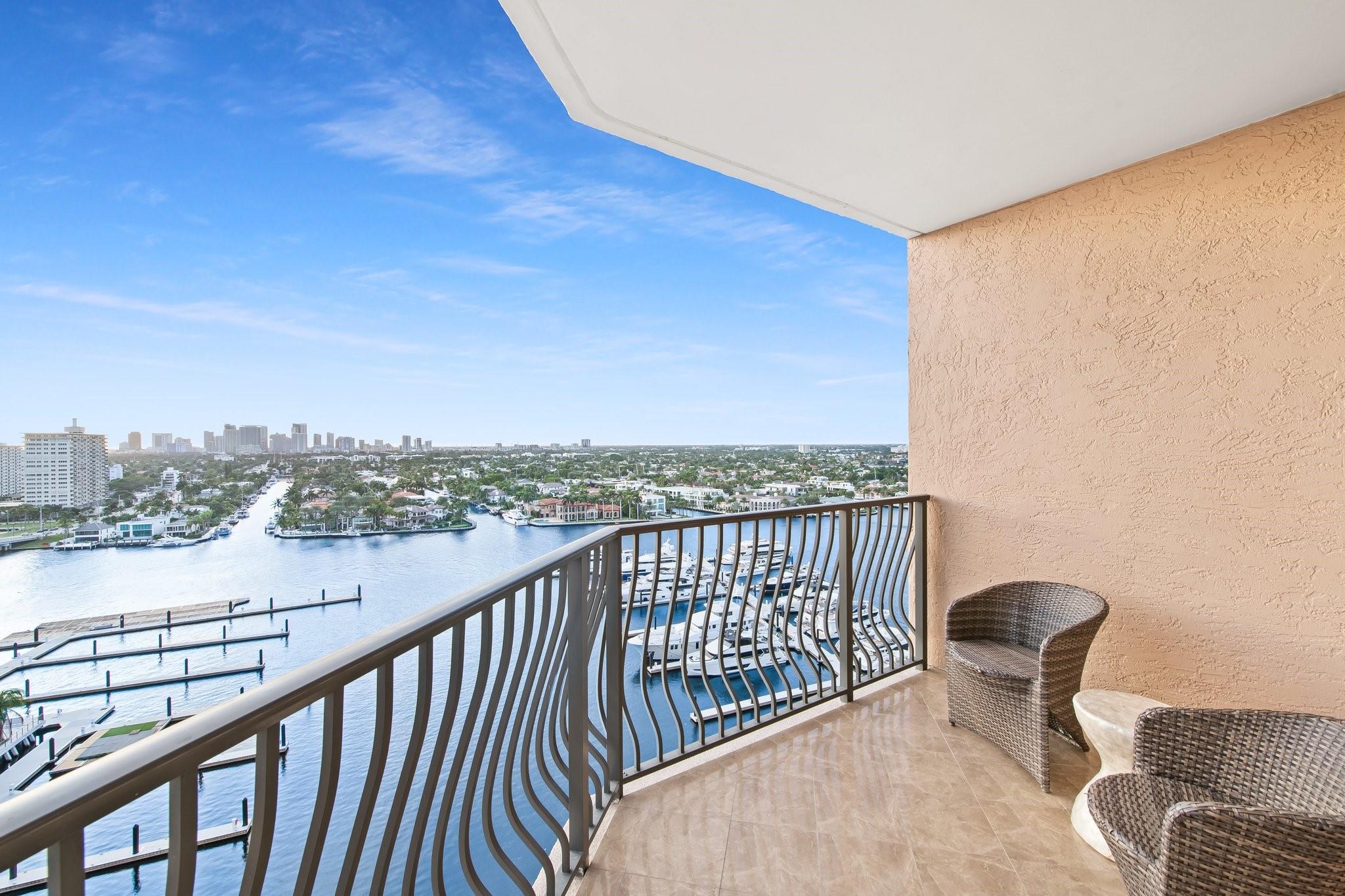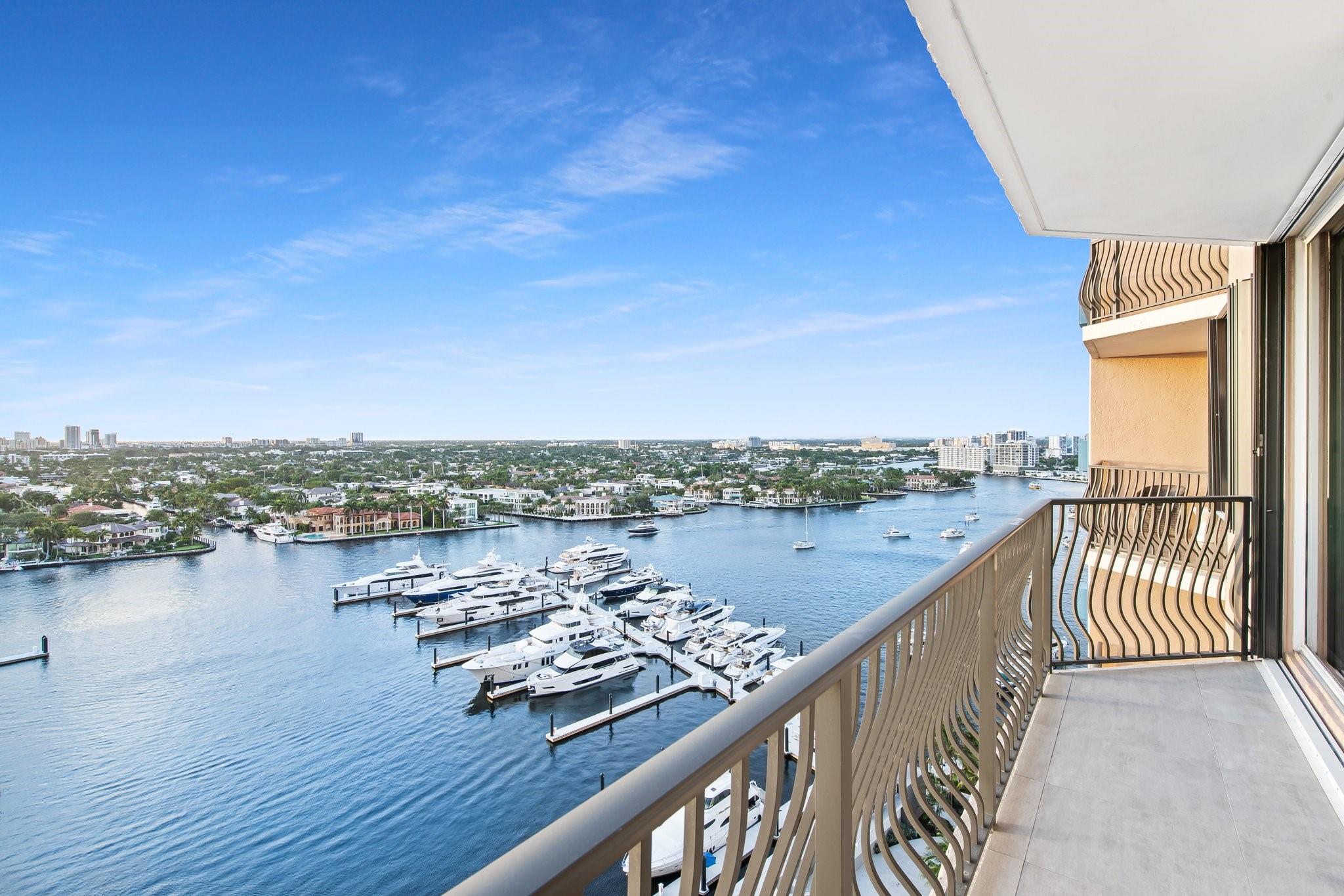 Incrrdible opportunity to own this rarely available SW corner true 3 BR, 2.5 BA residence with breathtaking views of the Intracoastal, ocean, and city and overlooking the new Las Olas Marina-the home to Mega Yachts. The newly renovated kitchen features premium Miele appliances, and the new primary bathroom ensures modern comfort. Floor-to-ceiling sliding glass doors connect indoor and outdoor spaces, creating an open, airy ambiance. Incredible oversized 715 SF wraparound terrace is great for sunset watching, relaxing and entertaining. A direct elevator access from the garage into a private foyer, provides both privacy & ease of access. The pet-friendly building offers amenities like a doorman, gym, heated pool, valet parking, and more, with additional parking space available for purchase.