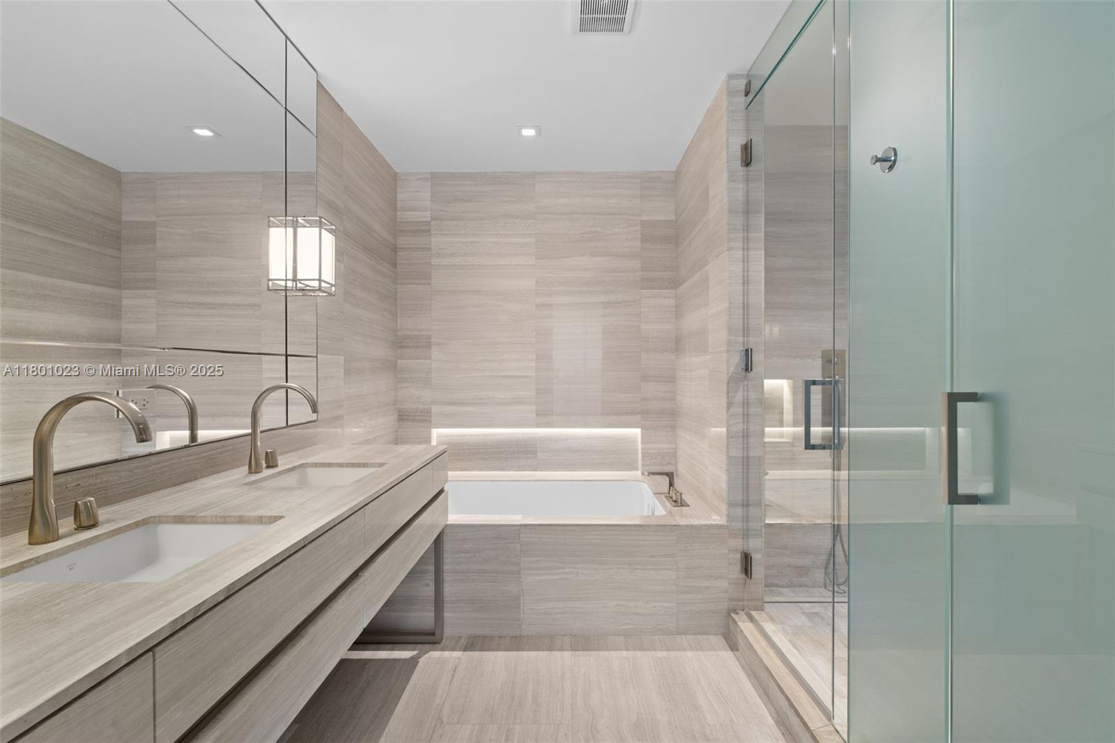 Sleek oceanfront corner residence offering 2 bedrooms + den, 2.5 bathrooms, and over 1,500 square feet of refined living space. Wrapped in floor-to-ceiling glass, this sun-drenched unit features two oversized balconies with breathtaking views of the Atlantic Ocean, Intracoastal, and Miami skyline. The open-concept layout flows seamlessly from the spacious living area to a designer kitchen outfitted with Sub-Zero and Wolf appliances. Marble bathrooms evoking a spa-like experience, while soaring ceilings and modern finishes elevate every detail. Residents enjoy world-class amenities including a private restaurant, beachfront pool, full-service spa, state-of-the-art fitness center, screening room, valet, concierge, and more—just moments from the best of Sunny Isles Beach.