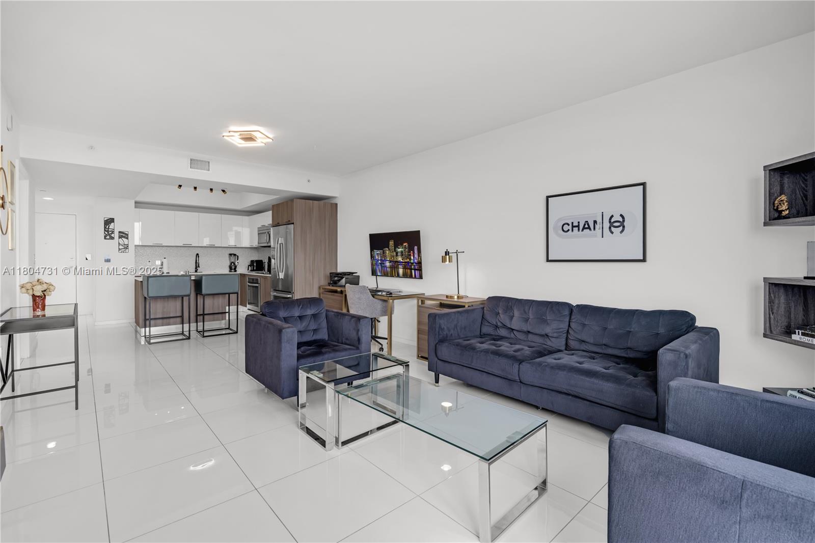 Welcome to your new home! This contemporary unit offers a bright and airy living space, complete with sleek white tile flooring and modern style. Enjoy stunning views from your private balcony, perfect for a morning coffee or evening relaxation. Water and internet included; electricity billed separately. Building amenities include a gym, pool, and 24-hour security.