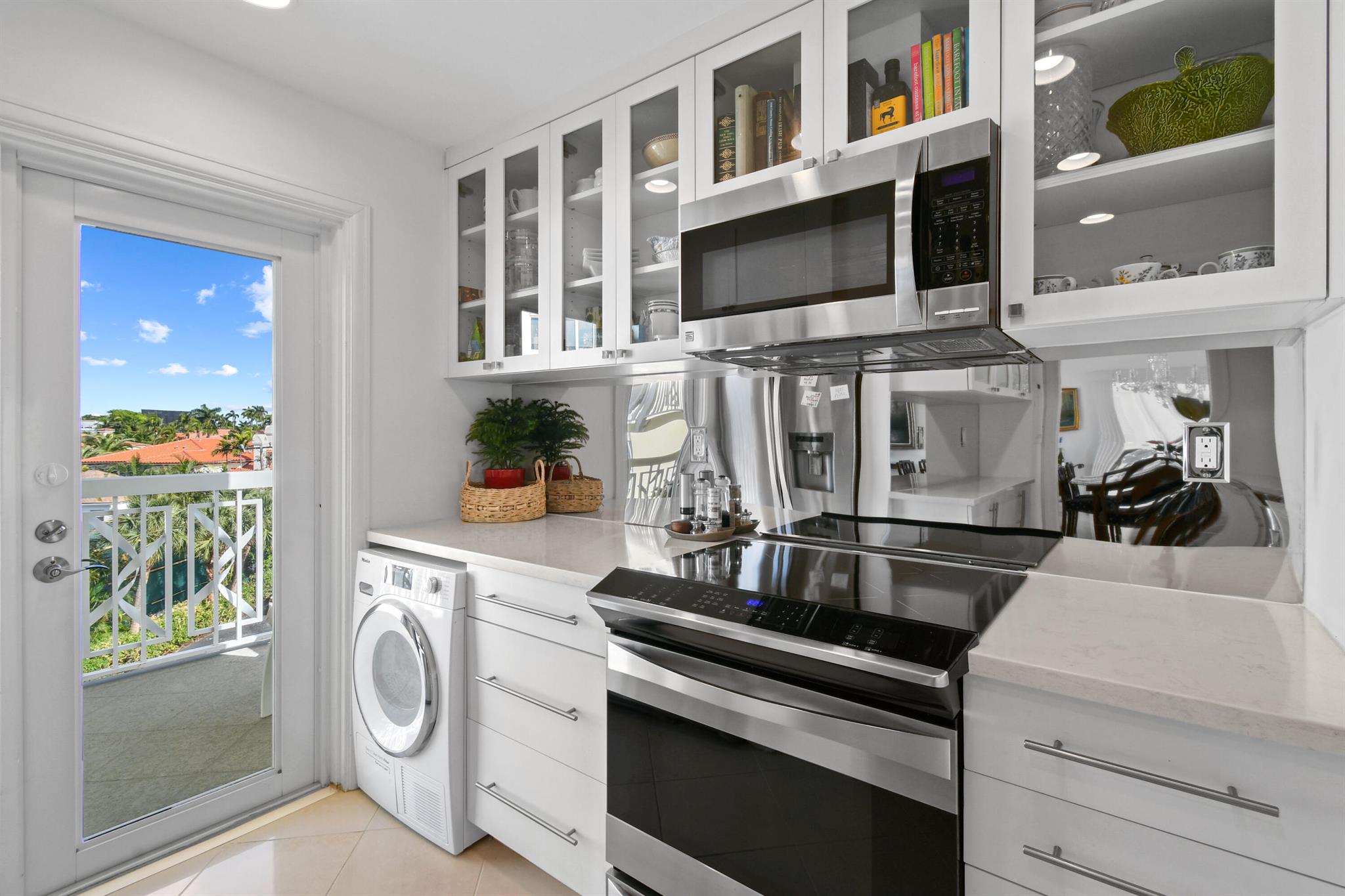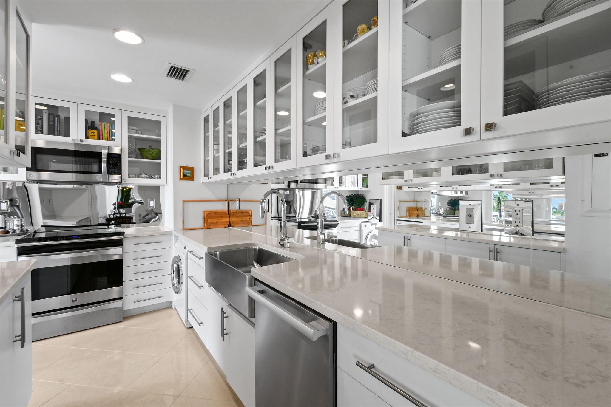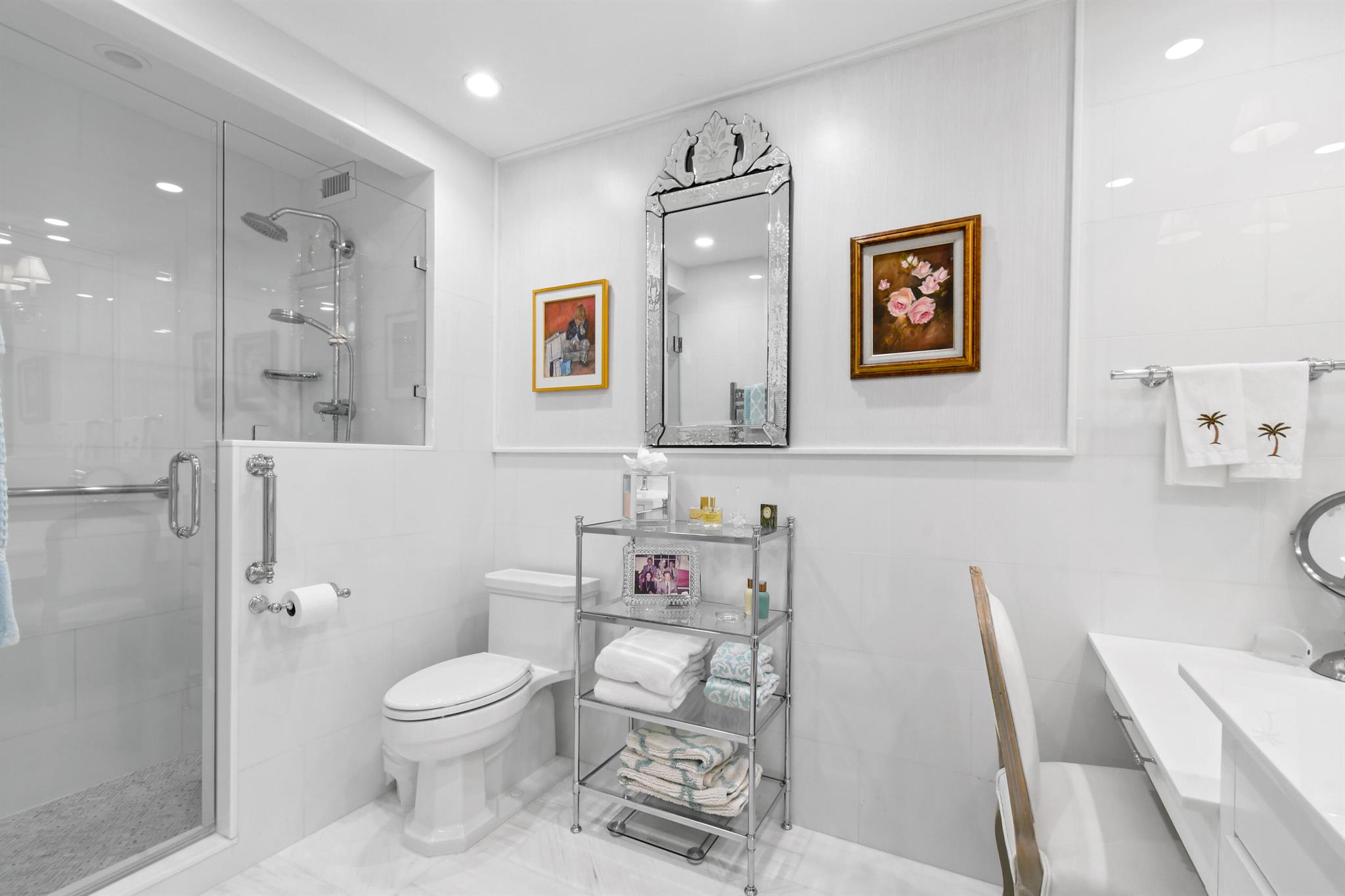 Corner fourth floor residence at 389 S Lake with water views! Pristine and renovated with high ceilings, gracious living spaces. Beautiful light filled condo with essentially 2 primary bedrooms. A full service, pet friendly building with full time manager, pool, 24 hour door person. This residence comes with the best covered parking space in the building.Chandelier in living area does not convey