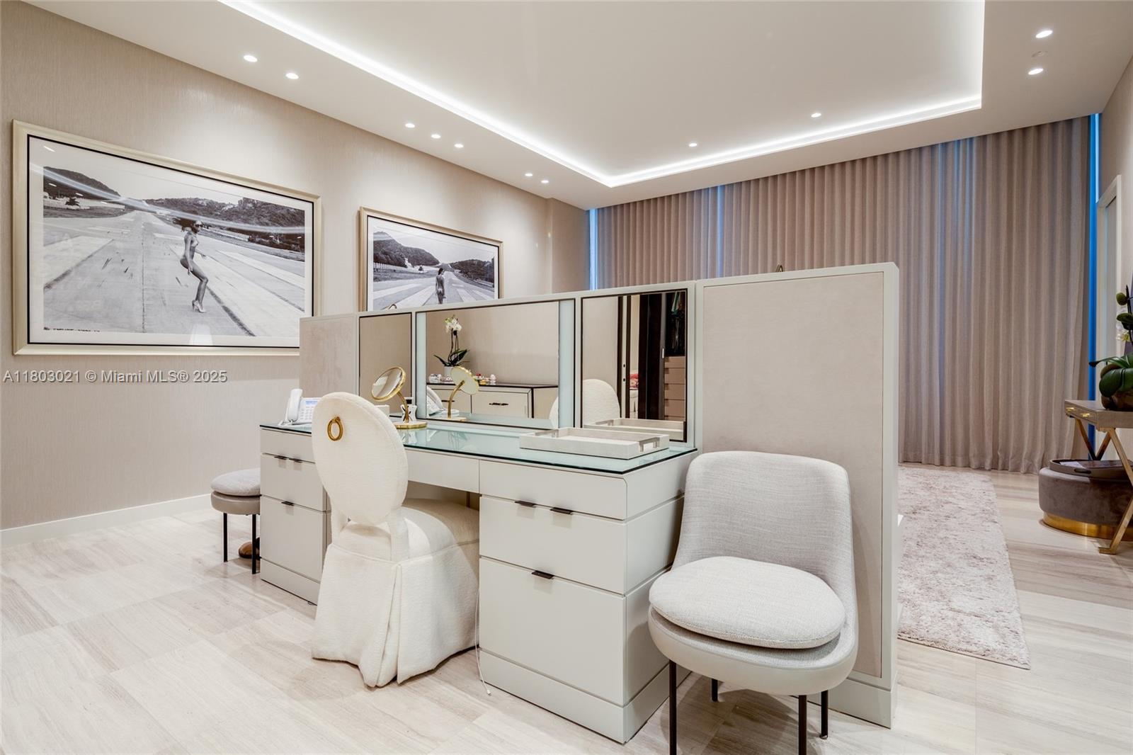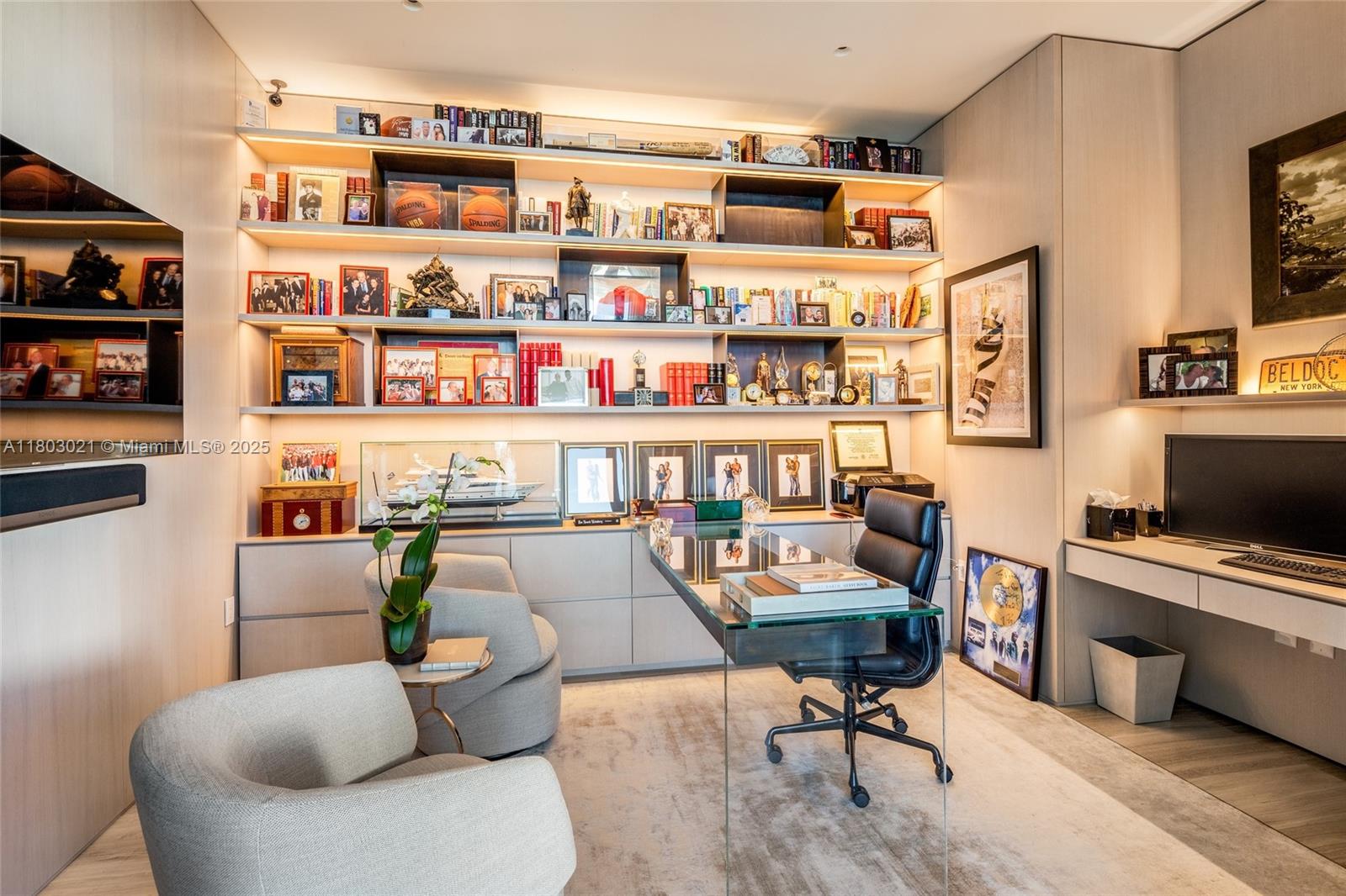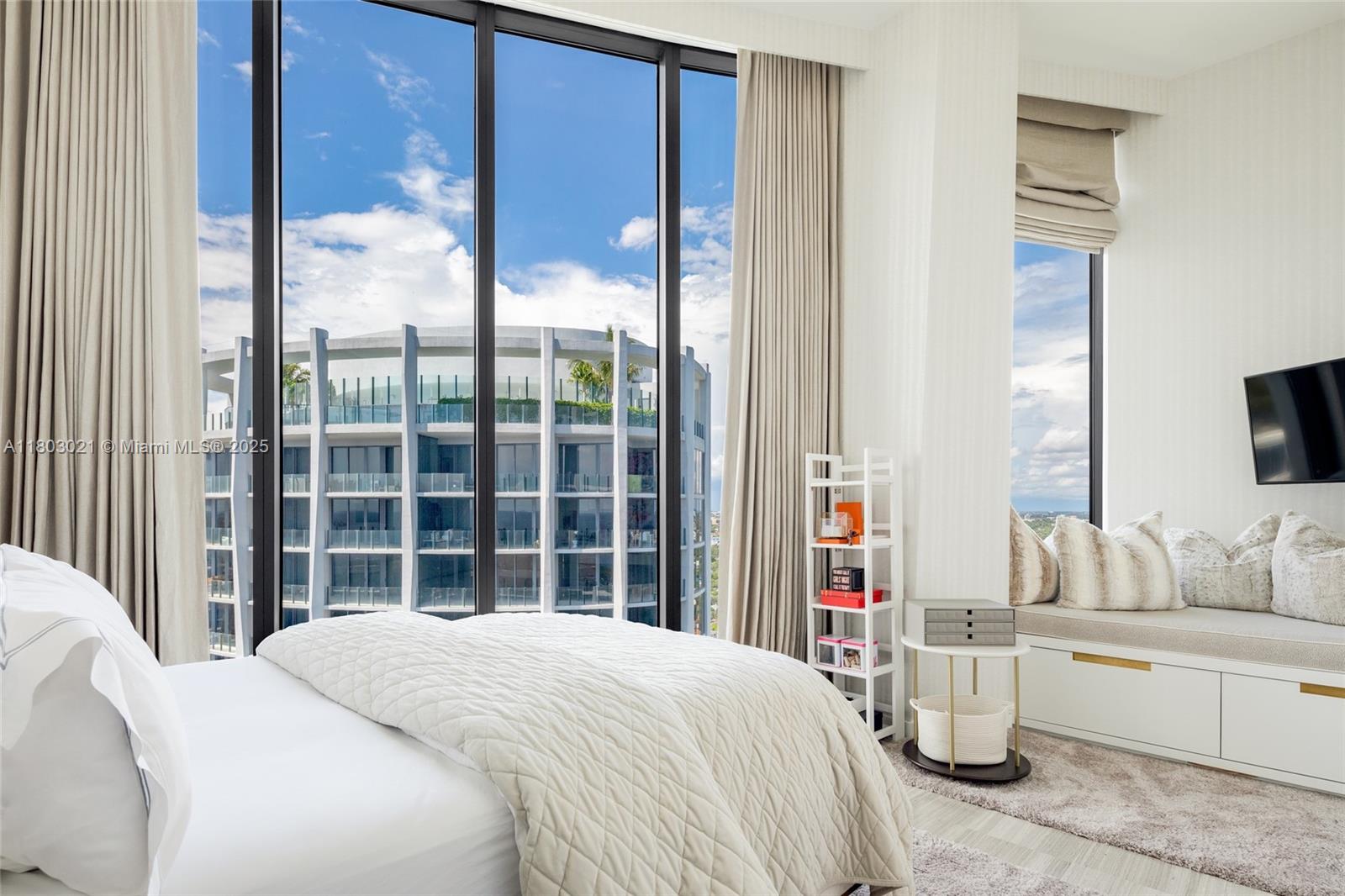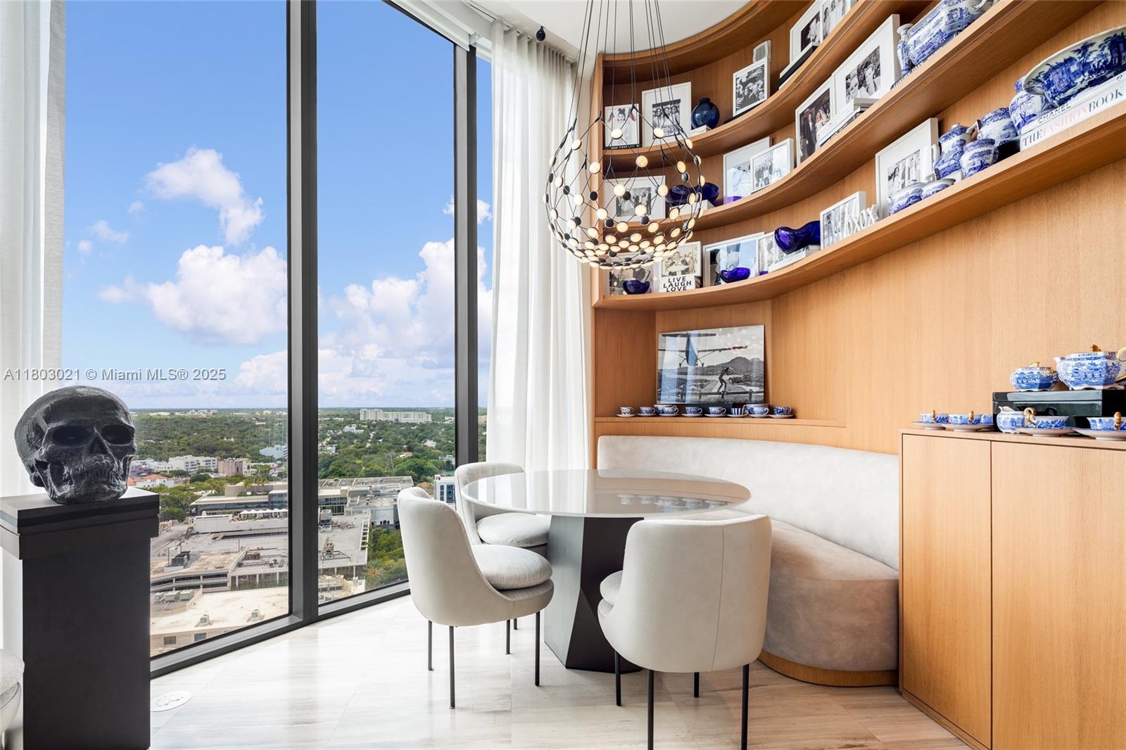 Welcome to luxury living at Park Grove! This nearly 6,500 sqft high-rise rivals penthouses, offering breathtaking 270° ocean and skyline views. Crafted with $3M+ in custom millwork, programmable lighting, and exquisite finishes by Deborah Wecselman. Features include five bedrooms, five bathrooms, two half baths, his and her offices, and extensive built-ins. Enjoy an oversized storage unit and three parking spaces, all right next to the elevator. Expansive 12 foot floor-to-ceiling windows and 835 sq. ft. of outdoor space create an inviting atmosphere. The 750+ bottle wine cellar with temperature and humidity control is a connoisseur’s dream. Amenities include a gym, screening room, billiards room, valet, and more. This unit blends elegance, tech, and design for the ultimate Miami lifestyle.