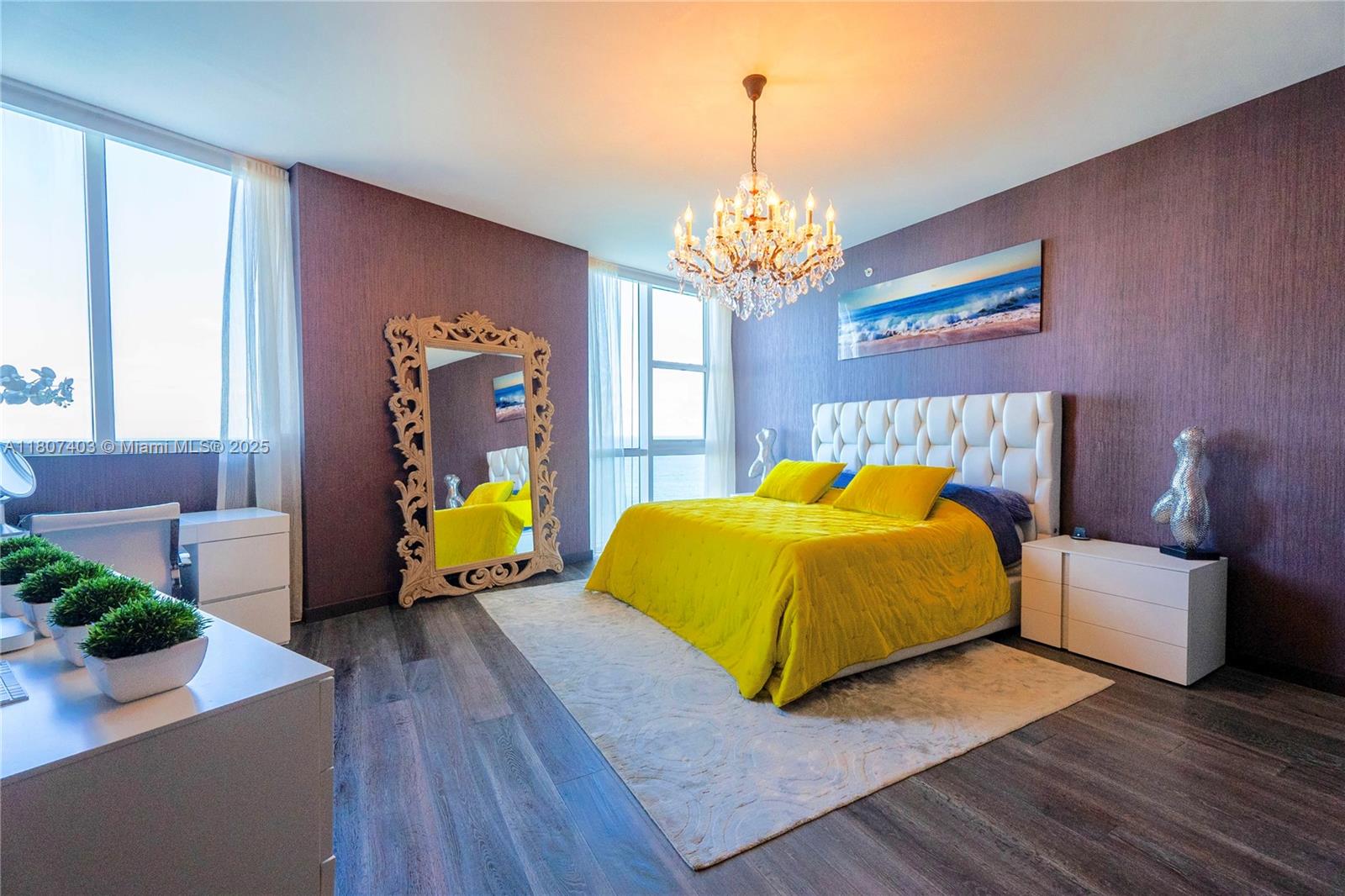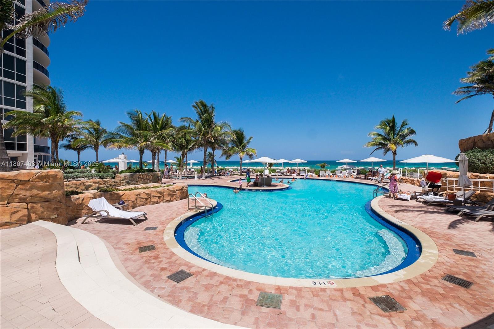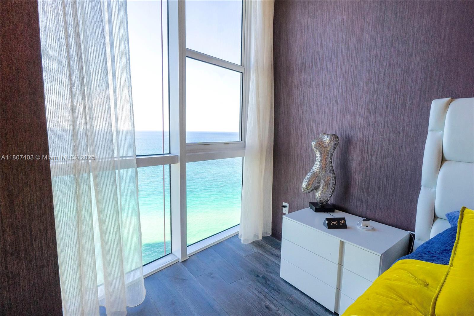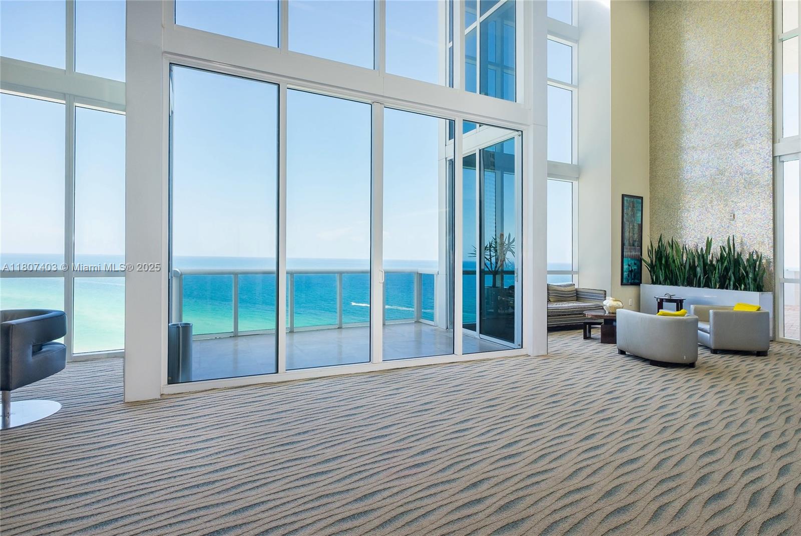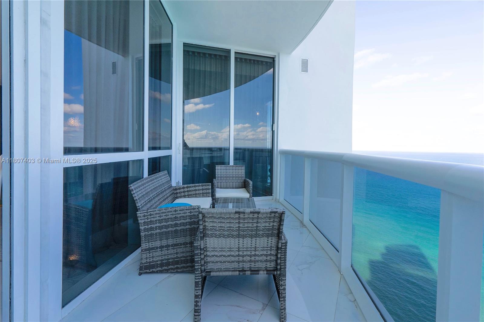 This spectacular 2BR, 2BTH + 1 half-bath/powder room. Direct ocean views from every room. Thoughtfully designed with impeccable attention to detail, the residence features high-end finishes, Roche Bobois furniture, custom closets, decorative lighting, and Italian kitchen with Quartz countertop and Miele appliances. Beautiful wood flooring in bedrooms and marble flooring, extensive wood paneling in the foyer, automated blinds, and brand-new Bosch washer/dryer unit. Private elevator entry. 24-hr concierge, beach access with 1,000 feet of oceanfront, 4 pools, tennis courts, a luxury spa, fitness center, and multiple on-site restaurants. Tropical landscaping,lagoon and lap pools,waterfalls, and a smart building infrastructure. Newer A/C system, new toilets, and updated exhaust fans. Furnished