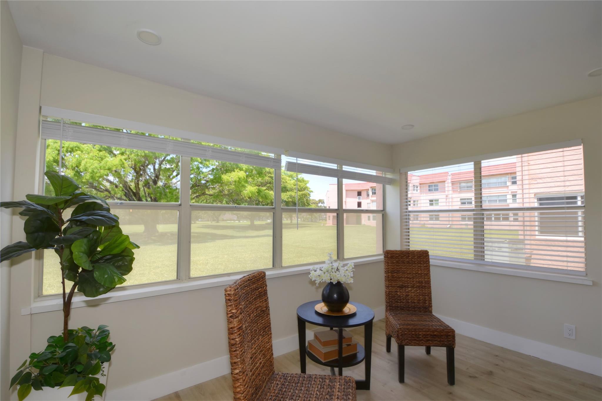 Light, Bright & Airy NEWLY RENOVATED FIRST FLOOR 1 Bedroom 1.5 bath 55+ Community in Sunrise Lakes Phase 3. White modern cabinets, quartz countertops, SS appliances. Laminate flooring (sand color) throughout with white tile in bathrooms. Large bedroom with spacious walk-in closet. Laundry facility on each floor. Extra locker storage. COMPLIMENTARY GOLF COURSE, many pools to choose from, indoor & outdoor. Various activities to choose from, you will not be bored! This community is very well maintained, and the roof was just recently replaced.