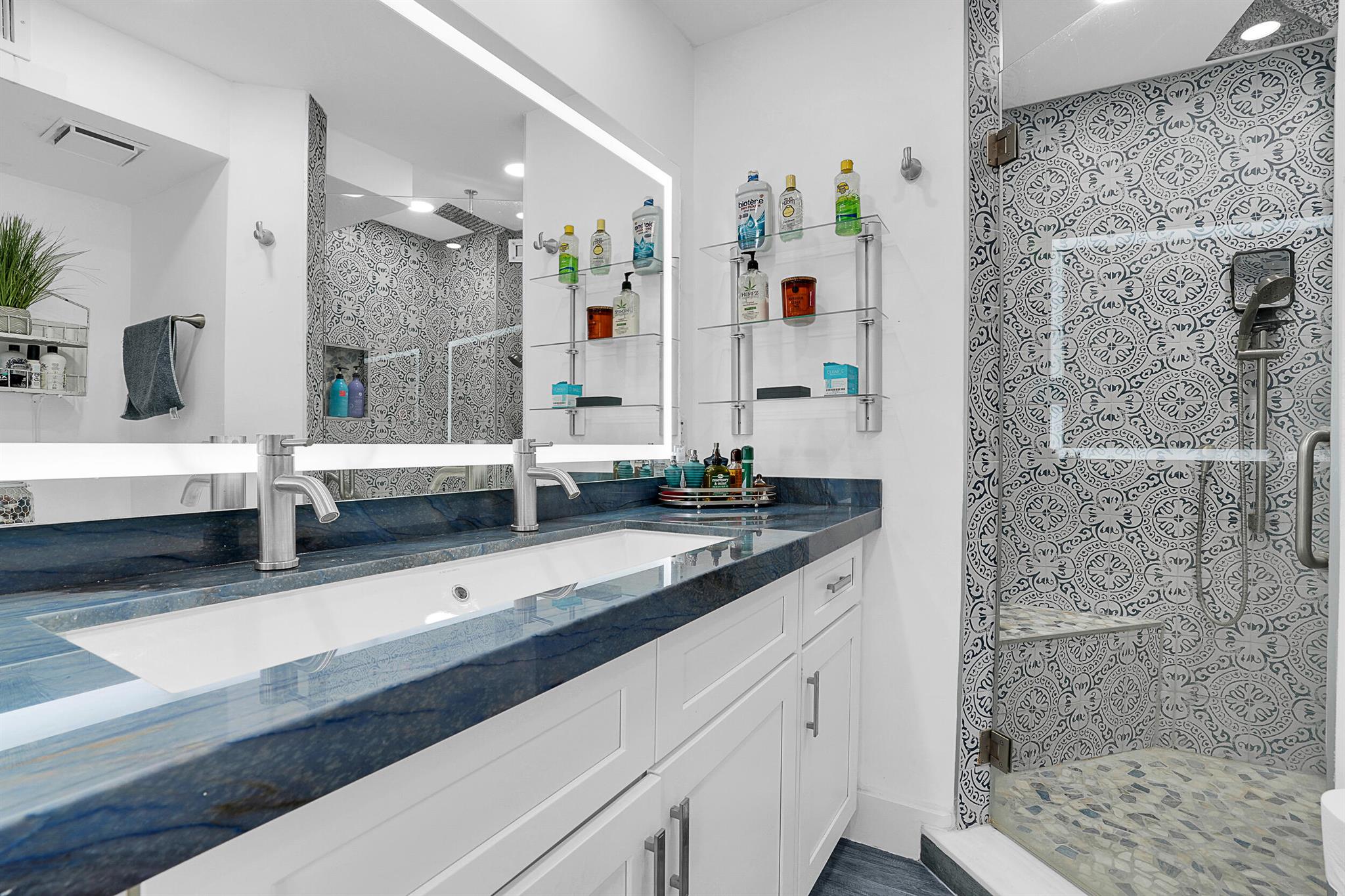 The finest three-bedroom waterfront residence in Hillsboro Cove, offering unparalleled views of the river & Capone Island. Meticulously remodeled, this condo features quartzite counters in the chef's kitchen, top-of-the-line KitchenAid appliances, & LED high hat lighting. custom translucent barn doors lead into each bedroom. The master bath features a bidet with multi heads in the oversized shower. The guest bath boasts a luxurious soaking tub overlooking the river with a view of the mega yachts as they go by. A Dimplex custom-built light & steam fireplace wrapped in quartzite adds a warm elegance. Just a few minutes' walk to local dining & Deerfield Beach. Boca Mizner 5-minute drive. This residence epitomizes luxury living. Boat slips, when available. CONCRETE PAID IN FUL
