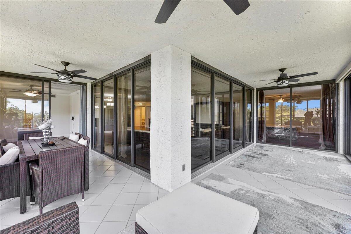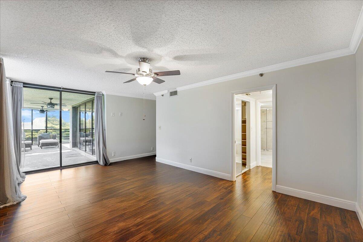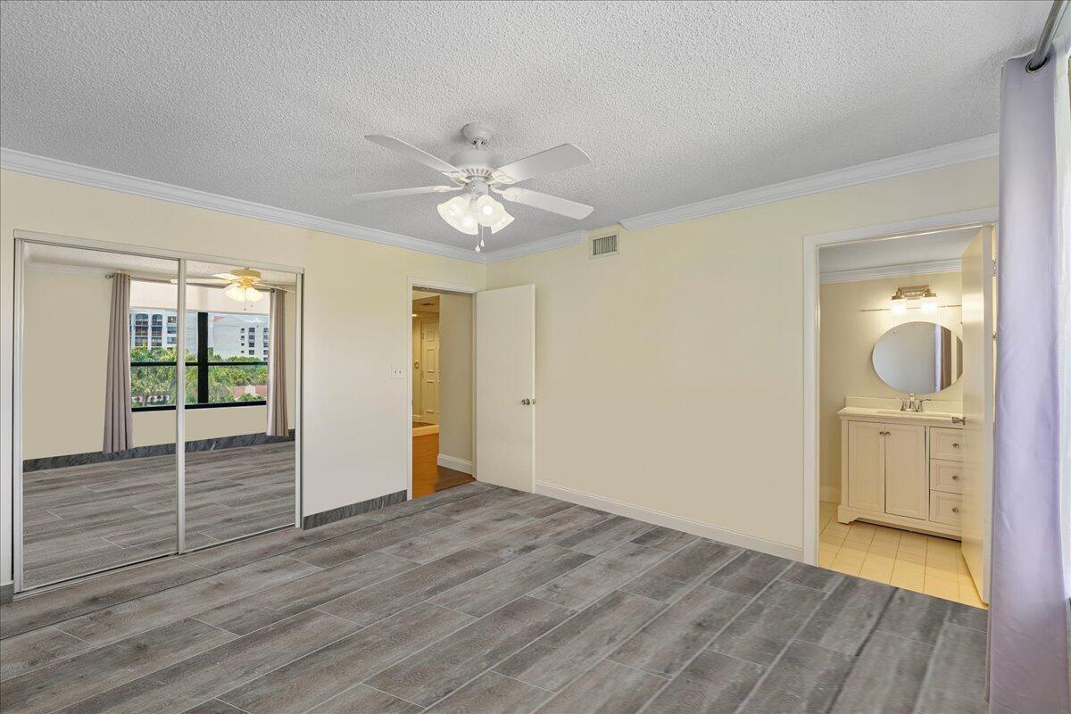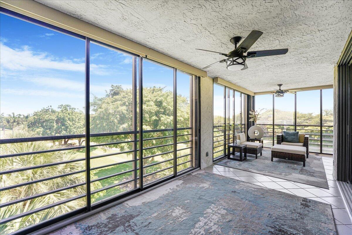 Freshly Painted, Laminate Floors Built-in Bar. Kitchen with white cabinets, granite counters, stainless steel appliances, and glass tile backsplash. Large, enclosed patio with Southeast exposure with electric sunshades. Bedrooms has crown molding. Newly updated 2nd & half bath. Large built-in closet.