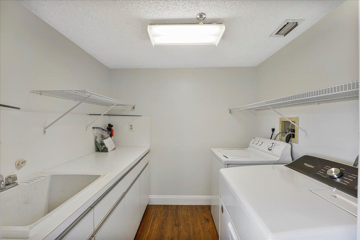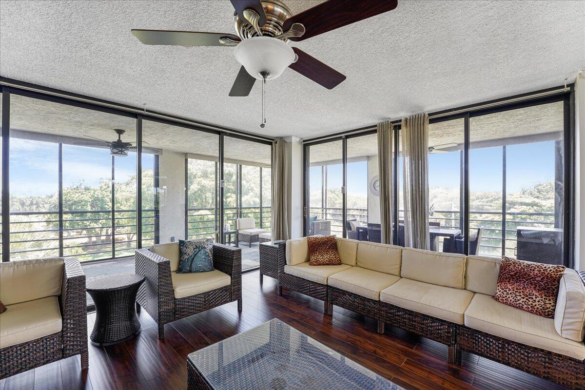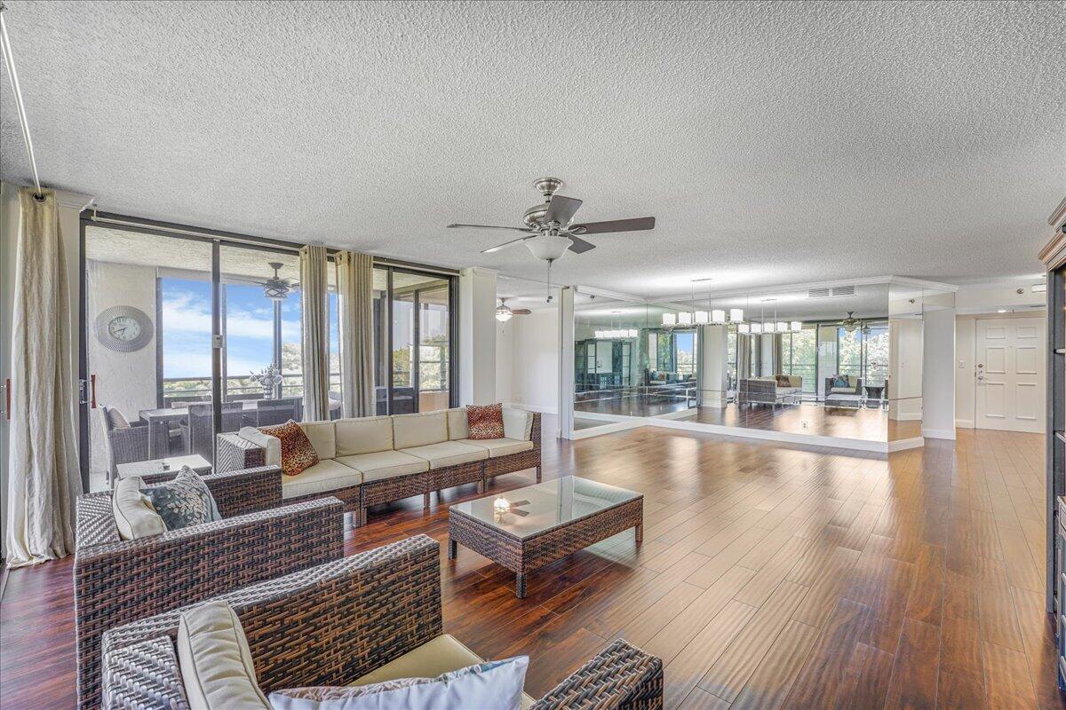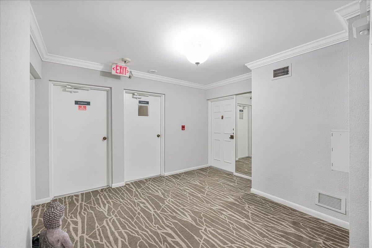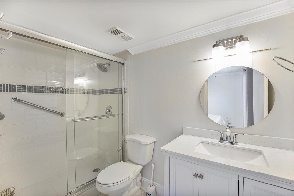 Freshly Painted, Laminate Floors Built-in Bar. Kitchen with white cabinets, granite counters, stainless steel appliances, and glass tile backsplash. Large, enclosed patio with Southeast exposure with electric sunshades. Bedrooms has crown molding. Newly updated 2nd & half bath. Large built-in closet.
