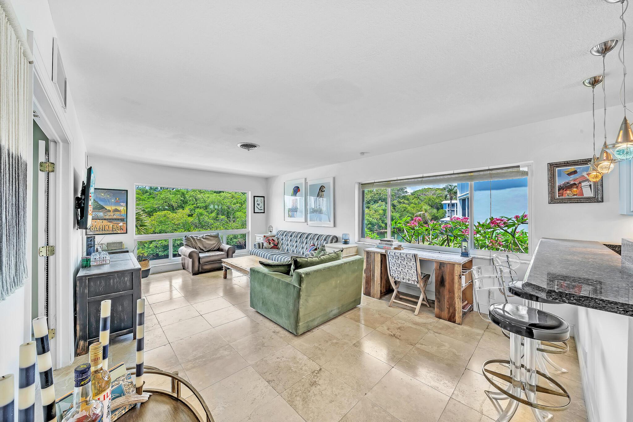 FANTASTIC WATERFRONT VIEWS!! South facing upgraded spacious corner unit with expansive Intracoastal and preserve views. This one of a kind corner unit offers serenity and privacy within the community. Windows on three sides. Units rarely become available and sell quickly in the highly sought after Intracoastal Terrace Community. Full size vented washer/dryer in unit and tankless hot water. This quaint, well-managed condominium complex spans the entire end of the peninsula fronting the Intracoastal and John B Rutherford Preserve. It has a community dock, 6 privately owned docks, waterfront heated pool. Low HOA fee. Convenient location by land and sea. Walk or bike to Fifth Ave Shops, the beach and more. Delight in all the natural surroundings! Come see it today!