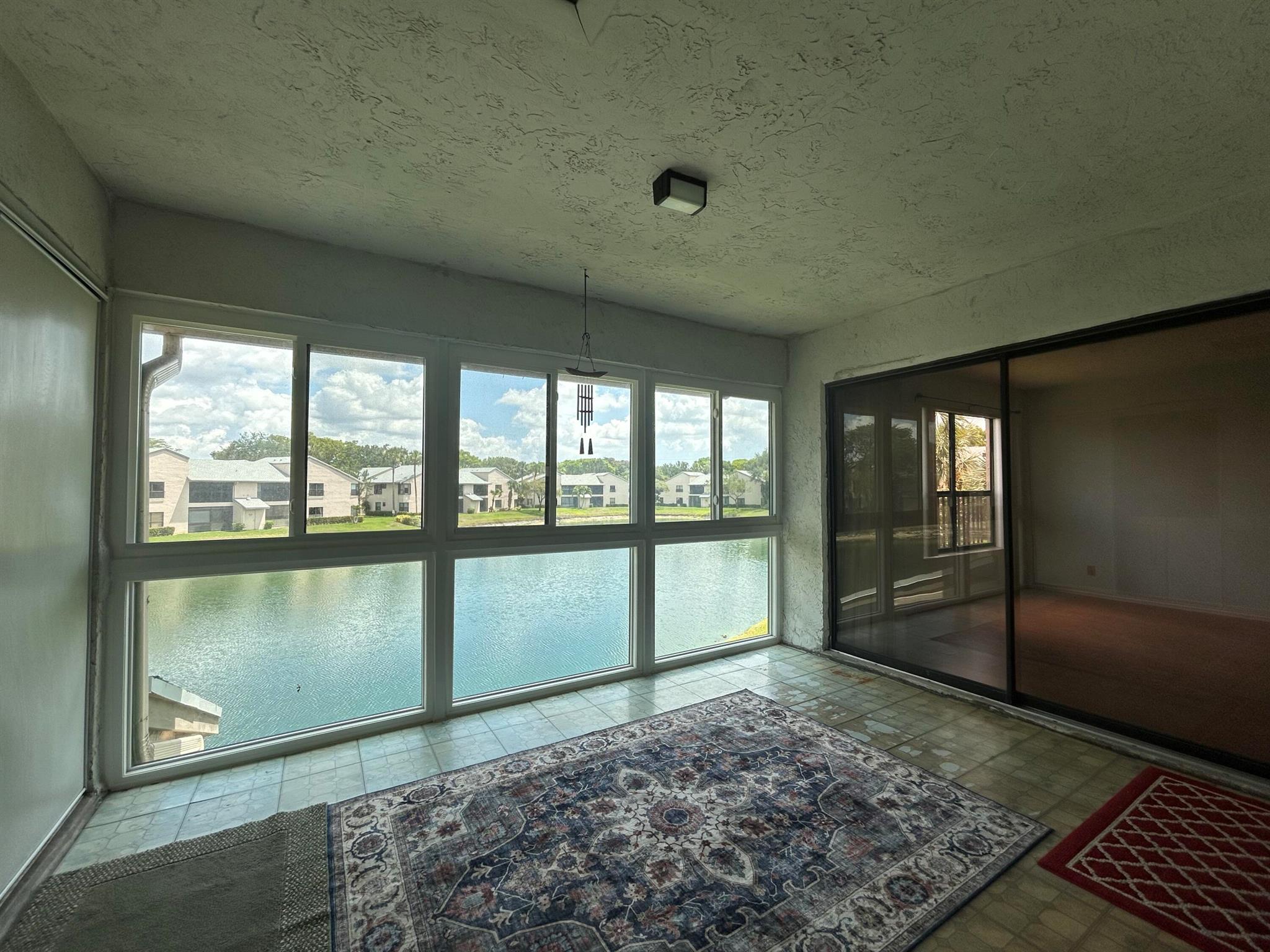 GREAT COMMUNITY OF ''KARANDA VILLAGE V'' IN THE DESIRED ''TOWNSHIP'' DEVELOPMENT OF COCONUT CREEK. A 3/2 SON THE 2ND FLOOR W/ STUNNING WATER VIEWS OF THE LAKE. CONDO HAS HAD MANY UPGRADES INCLUDING: ROOF (2023), WATER HEATER (2024), WALK-IN SHOWER TILED TO CEILING, W/ COMMERCIAL GRADE GLASS & SWINGING DOOR & BARS FOR SAFETY (2023). BOTH BATHS REMODELED W/ CHERRY CABINETS & GRANITE COUNTERS. AC WAS MOVED FROM CEILING TO ENTRY CLOSET MAKING IT MUCH QUIETER & EASIER TO REPLACE FILTERS. ENCLOSED LANAI/FLORIDA ROOM HAS COMPLETE HURRICANE IMPACT WINDOWS EXPANDING THE LIVING AREA & LAKE VIEWS. THE LAUNDRY CLOSET HERE HAD WASHER & DRYER REPLACED. KITCHEN REMODEL INCLUDES RECESSED CEILING LIGHTS, POPCORN REMOVED & MATCHING WHITE APPLIANCES ADDED. SPLIT BEDROOM/BATH PLAN IS GREAT FOR GUESTS. (to pg