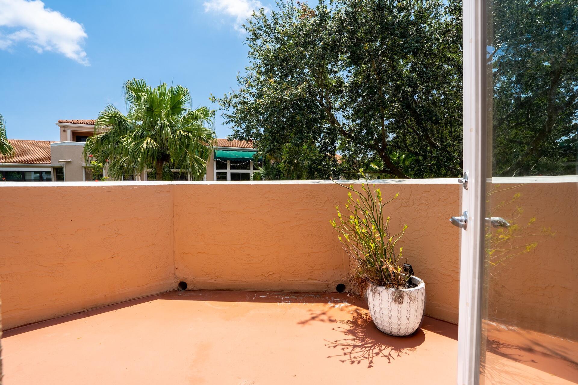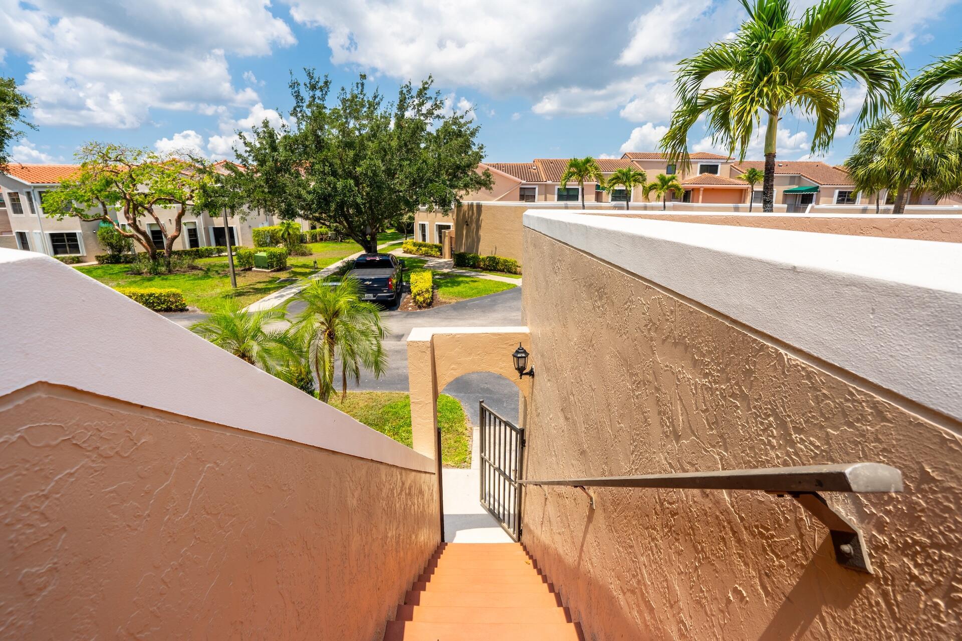 Pristine 2 bedroom / 2 bathroom + plus office/flex space in sought-after Villa Sonrisa at Boca Pointe. End unit with detached 1-car garage and private driveway parking. Enjoy outdoor living on a spacious 24' x 24' 2nd-floor patio. Sleek eat-in kitchen with stainless appliances. Spacious sunlit living room with large neutral tile throughout. Primary suite featuring a walk-in closet and private balcony. New impact windows, newer AC (2021), recessed lighting. In-unit full-size washer/dryer. HOA includes exterior insurance, roof, cable, & internet. Heated community pool just steps away, optional Boca Pointe golf & club memberships available. Central Boca location near beaches, shops, Town Center Mall, Excellent schools, Sugar Sand Park and more.