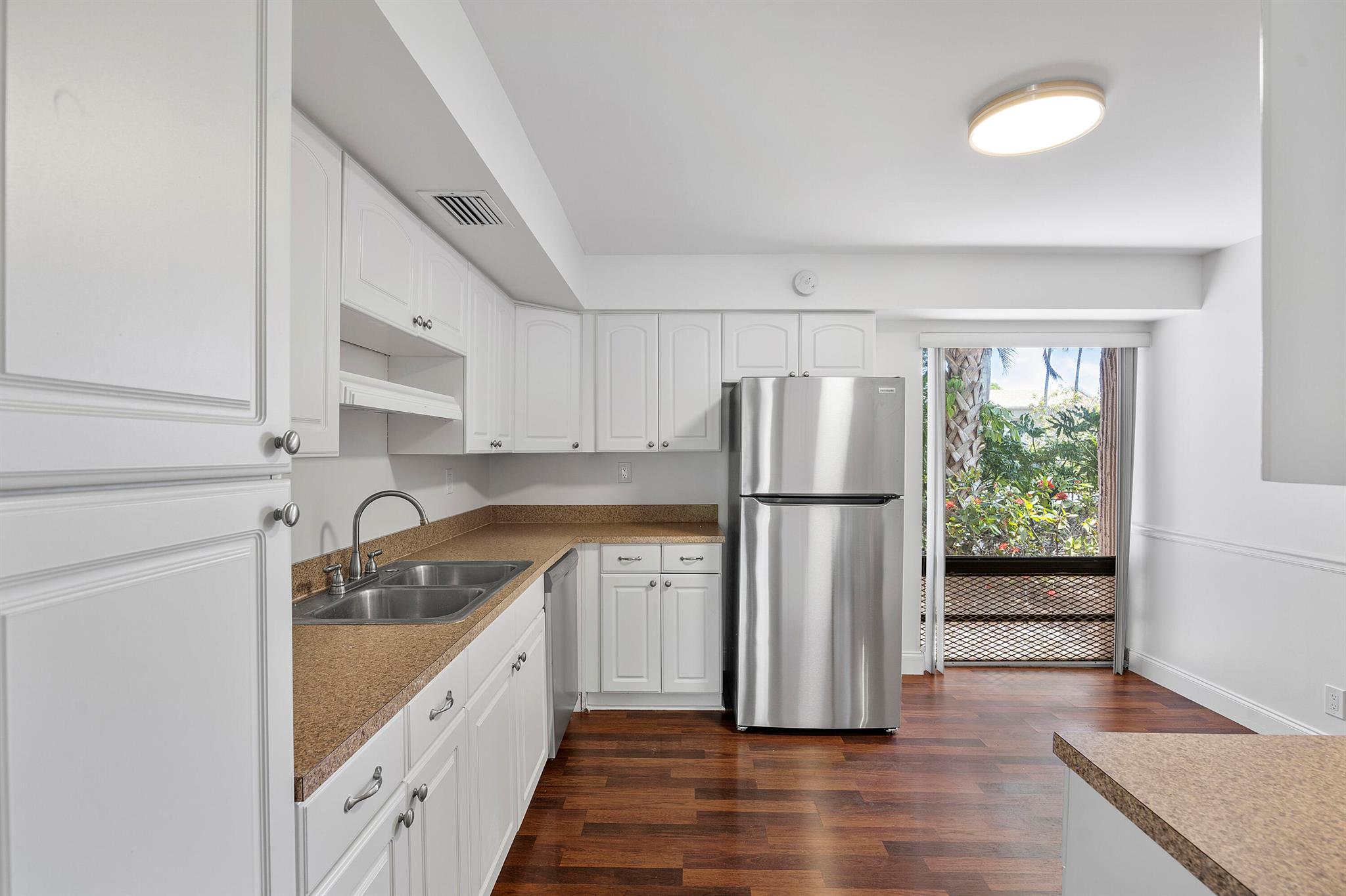 GREAT LOCATION! CORNER GROUND FLOOR UNIT WITH GARDEN VIEW! Lovely spacious corner unit on first floor with laminate flooring, freshly painted with new stainless steel kitchen appliances. Bathrooms with granite counters and wood cabinets. Master bedroom with 2 walk-in closets. Assigned parking right in front of unit entrance. Pools just steps from your door. Woodhaven is in the heart of Boca close to parks, malls, restaurants, beaches and highways. A 55+ community (allows 16 yrs old+ residents). Pools, clubhouse, grill, great for entertaining and with a storage room. Plenty of guest parking. A must see unit in Beautiful Boca Del Mar!!