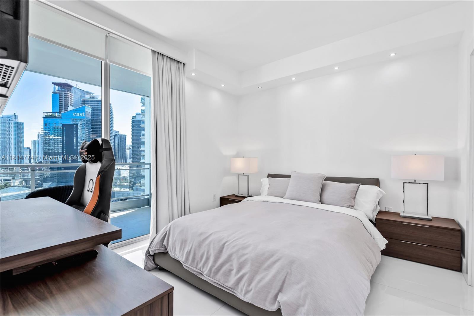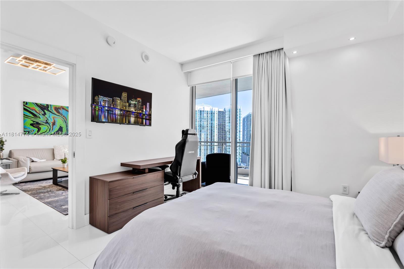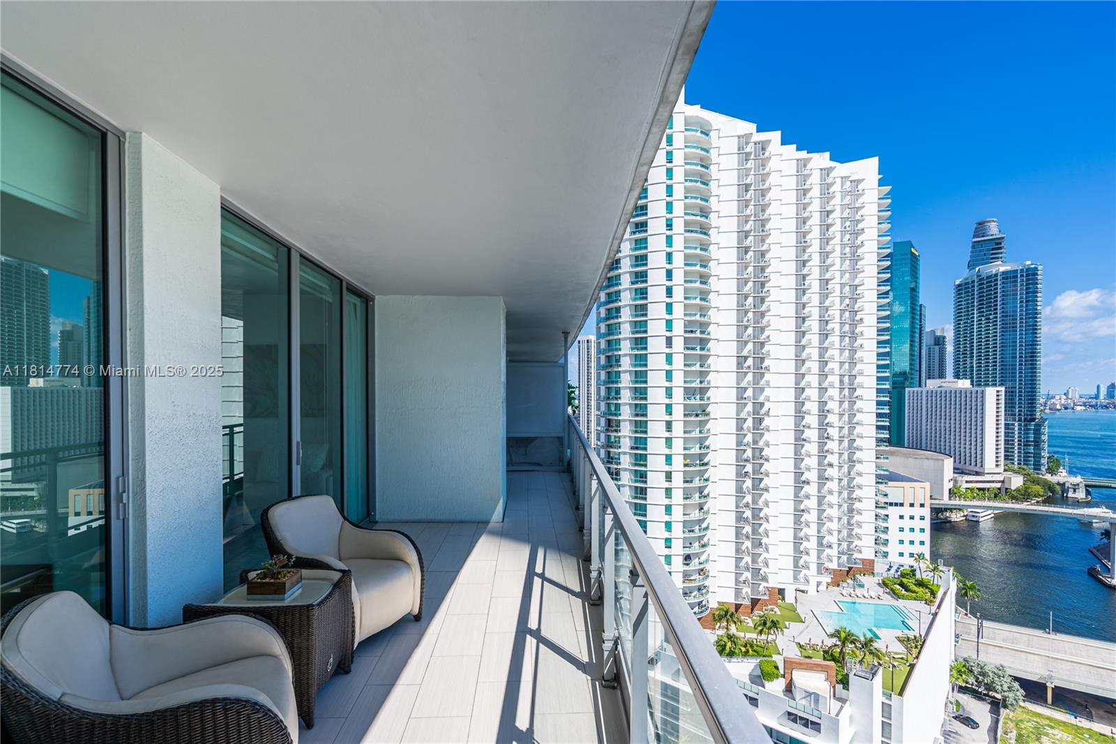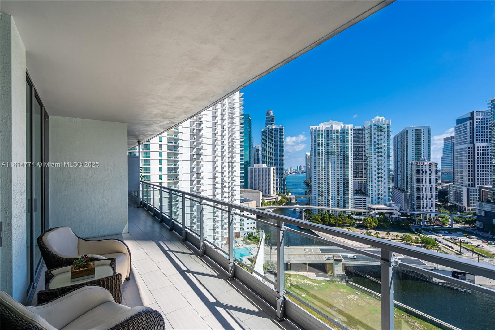 Unparalleled: high-floor unit at The Ivy, a gated Riverfront community with stunning Miami River, Brickell City Centre & skyline views. Spacious 2-bed, 2-bath with split floor plan, 32x32 porcelain tile, large terrace, custom doors, molding, recessed/LED lighting, floor-to-ceiling impact windows. The kitchen features glass tile backsplash & stainless-steel appliances. Renovated baths, California closets, blackout curtains, modern lights, Italian floating wall unit. Sold unfurnished. Includes tandem parking for 2 cars & 2 storage units. Resort amenities: infinity-edge & lap pools, spa, gym, BBQ, business center, playground, cable/internet, 24-hr security. Steps from BCC & expressways.
