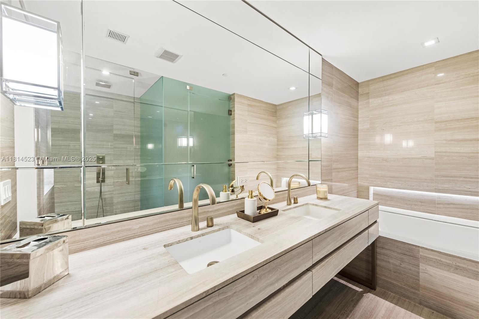 Gorgeous 3 bedrooms + studio oceanfront apartment at Residences by Armani Casa, Sunny Isles Fl. Highest quality finishes in kitchen & bathrooms by Armani Casa, two large/deep terraces; facing the turquoise ocean with white sand. And bayview/city view with amazing sunsets in the second. Principal bedroom with builtin minibar, walk-in closet and elegant marble bathroom with doble vanity, bathtub, shower & water-closet. Studio can be turned into a 4th bedroom with a shared bathroom. Live with style in one of the most elegant and luxurious residences in Miami. Armani Spa, Armani café, top of the line gym, restaurant, oceanfront outdoor jacuzzi & much more. UNIT COMES FURNISHED.