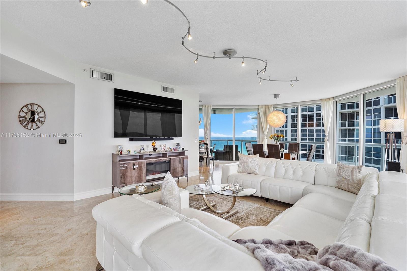 DIRECTLY ON THE SAND! BEAUTIFULLY APPOINTED OCEANFRONT RESIDENCE OFFERS EXPANSIVE VIEWS OF THE OCEAN & INTRACOASTAL. PRIVATE ELEVATOR W/ FOYER ENTRY & DOUBLE GLASS DOORS WELCOMES YOU INTO THIS BRIGHT OPEN RESIDENCE FEATURING MARBLE FLOORS, CROWN MOLDINGS, RECESSED LIGHTING, FLOOR TO CEILING GLASS, OPEN LIVING & DINING SPACE WITH A LARGE WRAPAROUND BALCONY, GOURMET KITCHEN W/ DOUBLE OVENS, GRANITE COUNTERTOPS AND BACKSPLASH, STAINLESS APPLIANCES, AND SO MUCH MORE! PRIMARY SUITE OFFERS LARGE MASTER BATH W/ 2 SEPARATE VANITIES, JACUZZI TUB, LARGE WALK-IN CLOSET & FLOOR TO CEILING GLASS WINDOWS. SPLIT BEDROOM FLOOR PLAN. PERFECTLY LAID OUT WITH AMPLE STORAGE. LAUNDRY ROOM W/ SINK. FULL SERVICE LUXURY BEACHFRONT BUILDING WITH ALL THE AMENITIES ANYONE COULD WISH FOR AND CONCIERGE SERVICES.