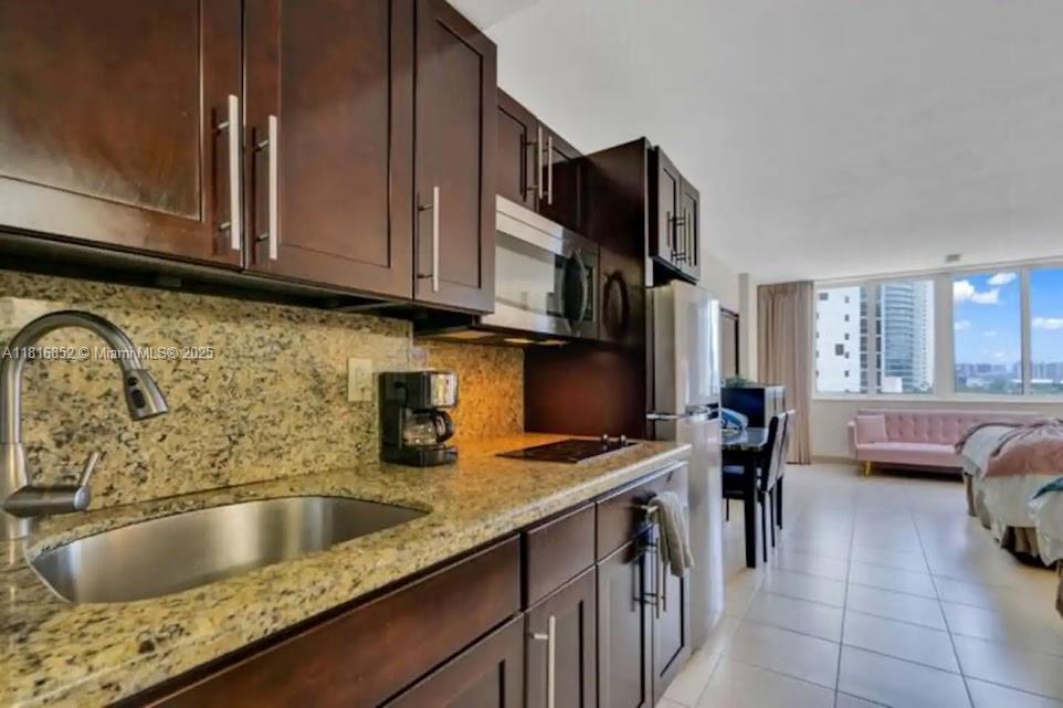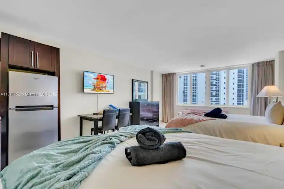 COMFORTABLE STUDIO WITH OCEAN AND CITY VIEWS/ RENOVATED / ALL AMMENITIES GYM VALET POOL/ MINUTES FROM AVENTURA MALL AND CLOSE TO RESTAURANTS, PHARMACY AND SUPERMARKET/COME AND ENJOY THE BEACHES IN SUNNY ISLES. Monthly HOA for $1314 + monthly assesment $250 for 10 years or one pay for 25K.
